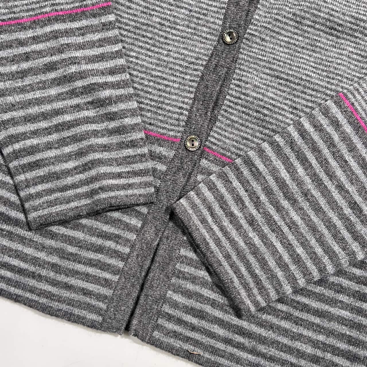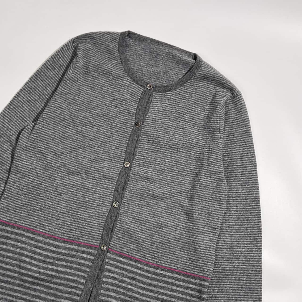 カシミヤ100% G et G キャラバン ボーダー ニット カーディガン 38/グレー系 レディース