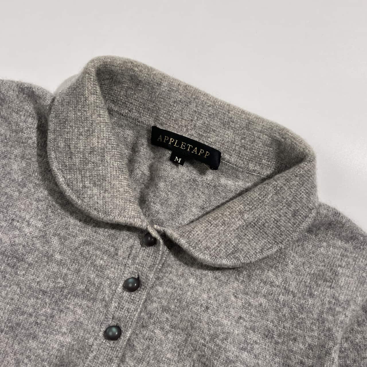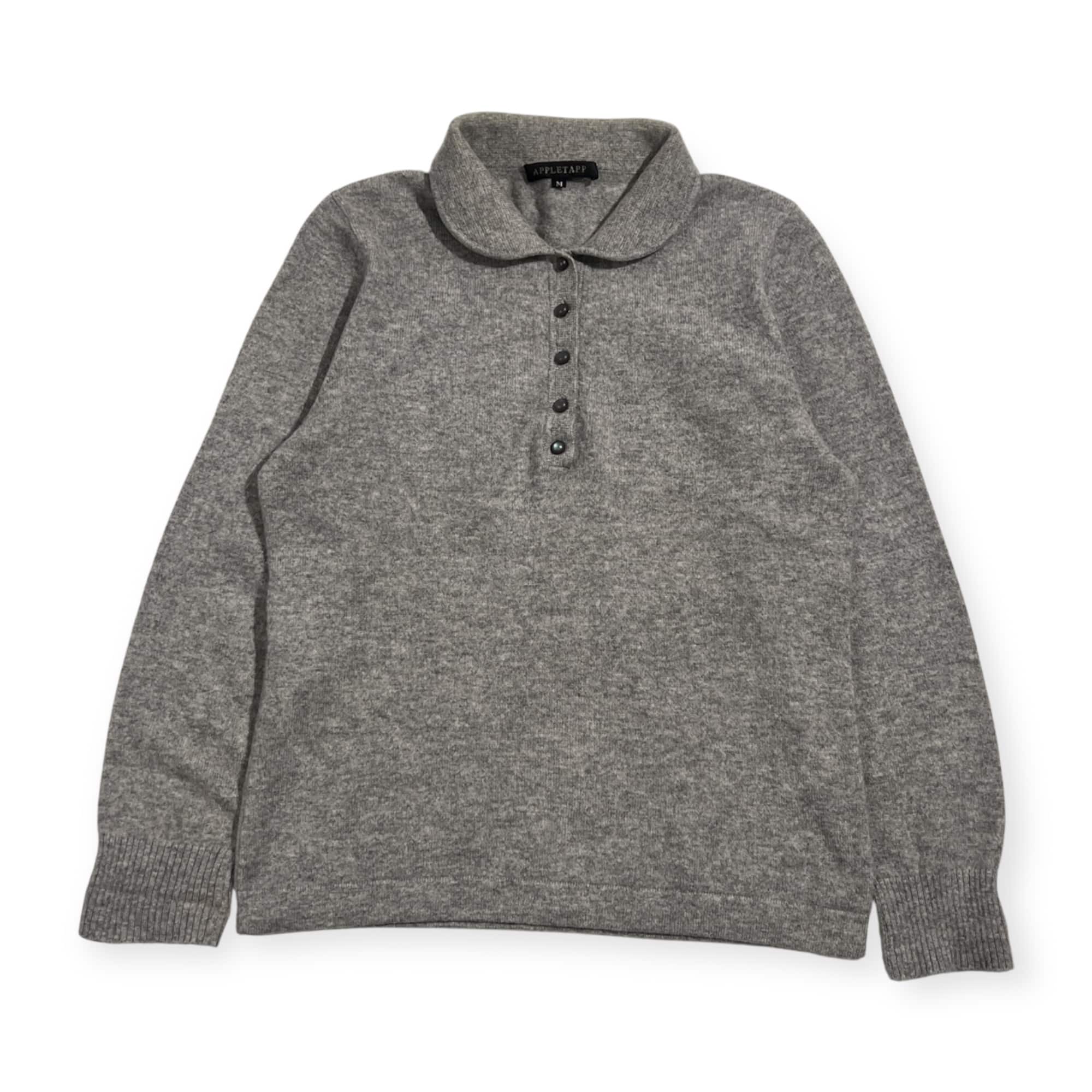 カシミヤ100% APPLETAPP アップレットアップ ポロ風 ニット セーター M/グレー レディース