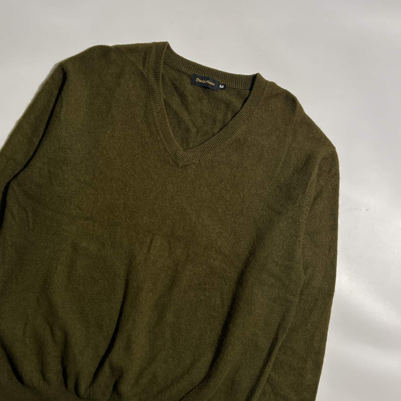 カシミヤ100% David Hicks デービッドヒックス Vネック ニット セーター M /オリーブ系 メンズ