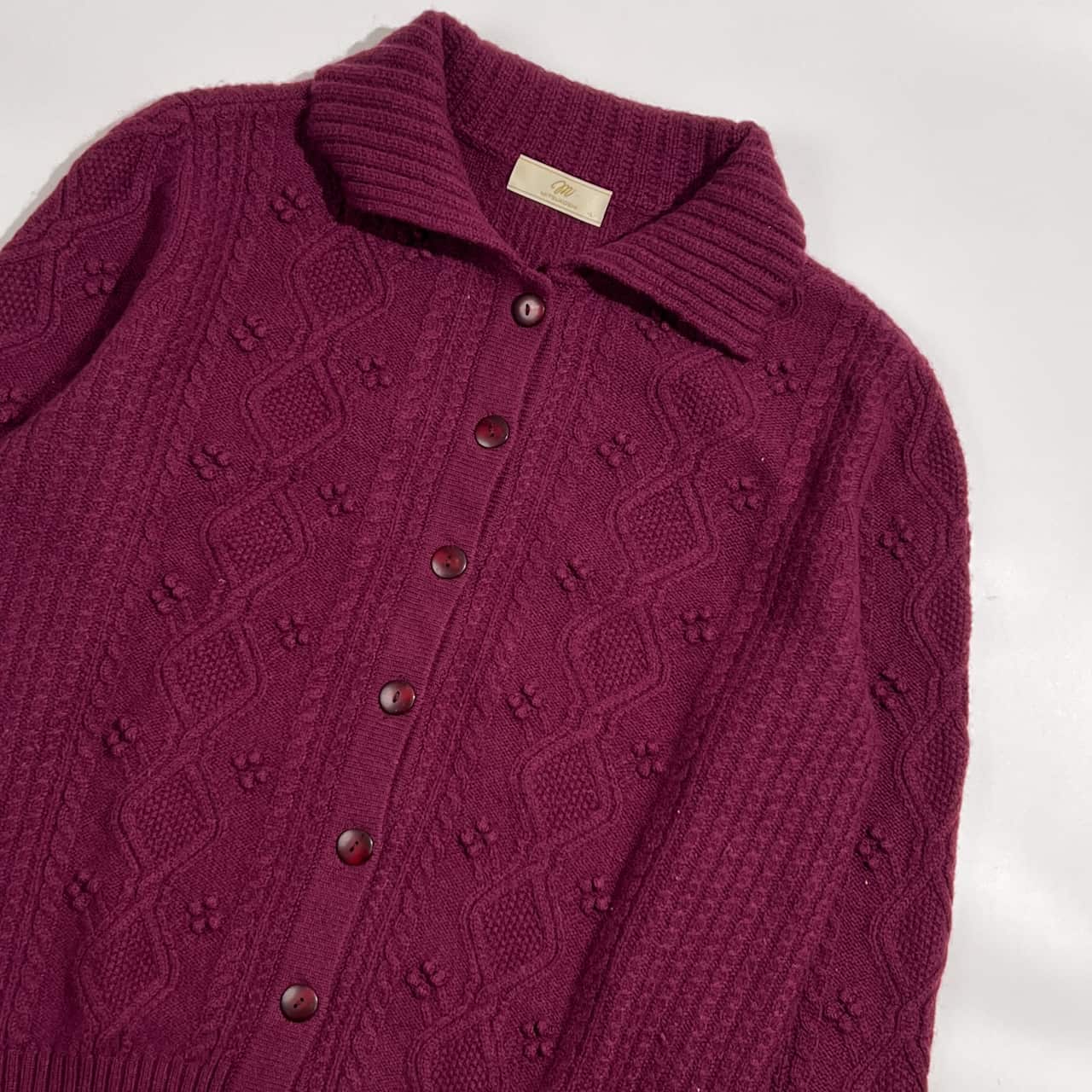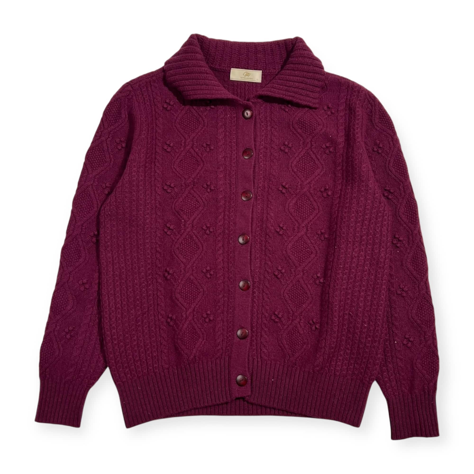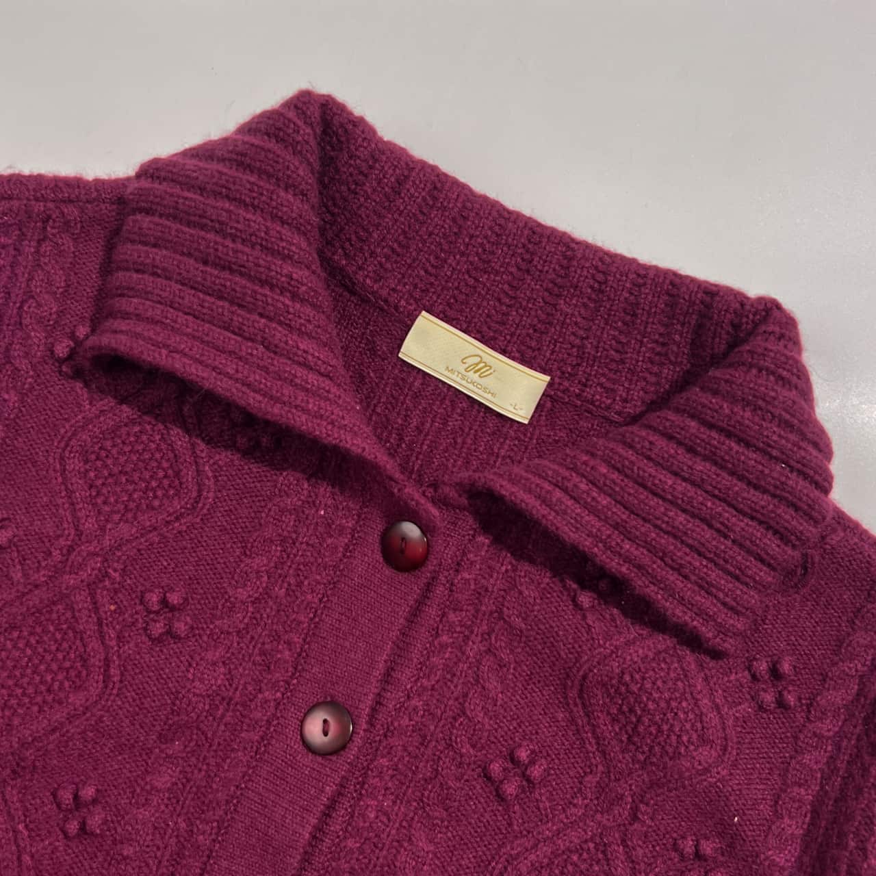 カシミヤ100% MITSUKOSHI ミツコシ ケーブル編み 襟付き ニット カーディガン L /赤紫系 レディース 三越