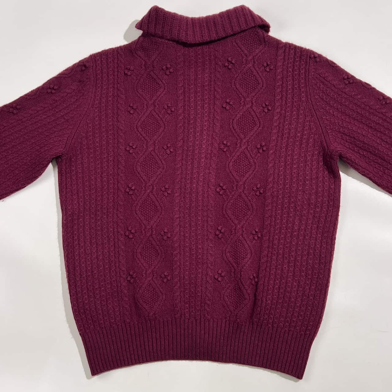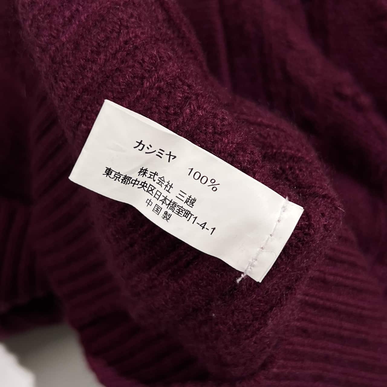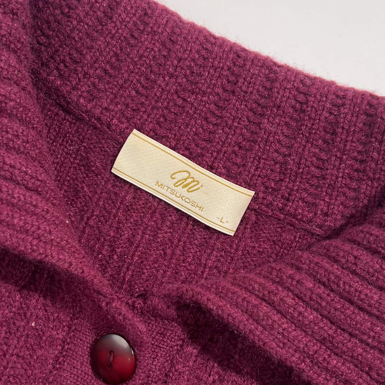 カシミヤ100% MITSUKOSHI ミツコシ ケーブル編み 襟付き ニット カーディガン L /赤紫系 レディース 三越