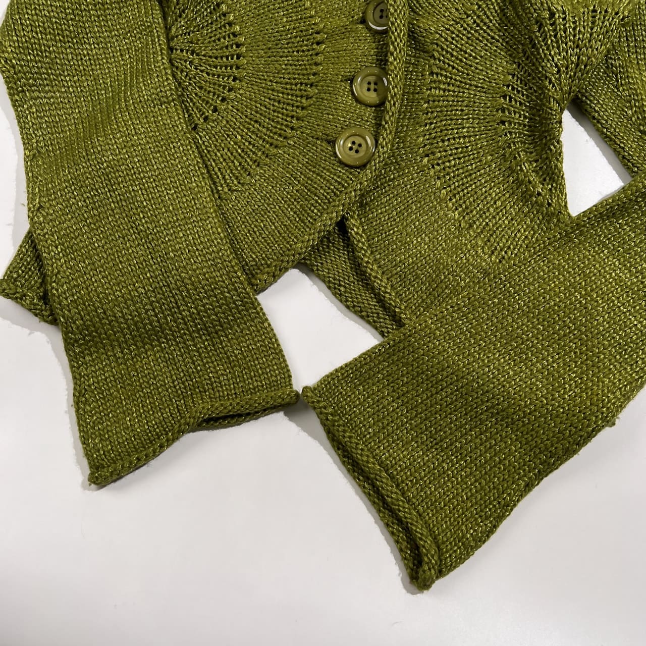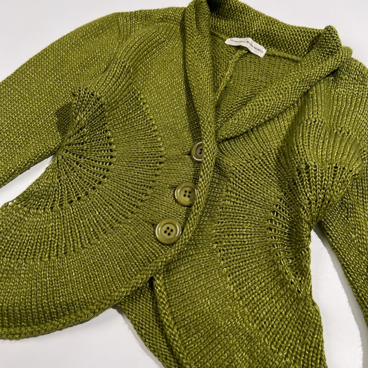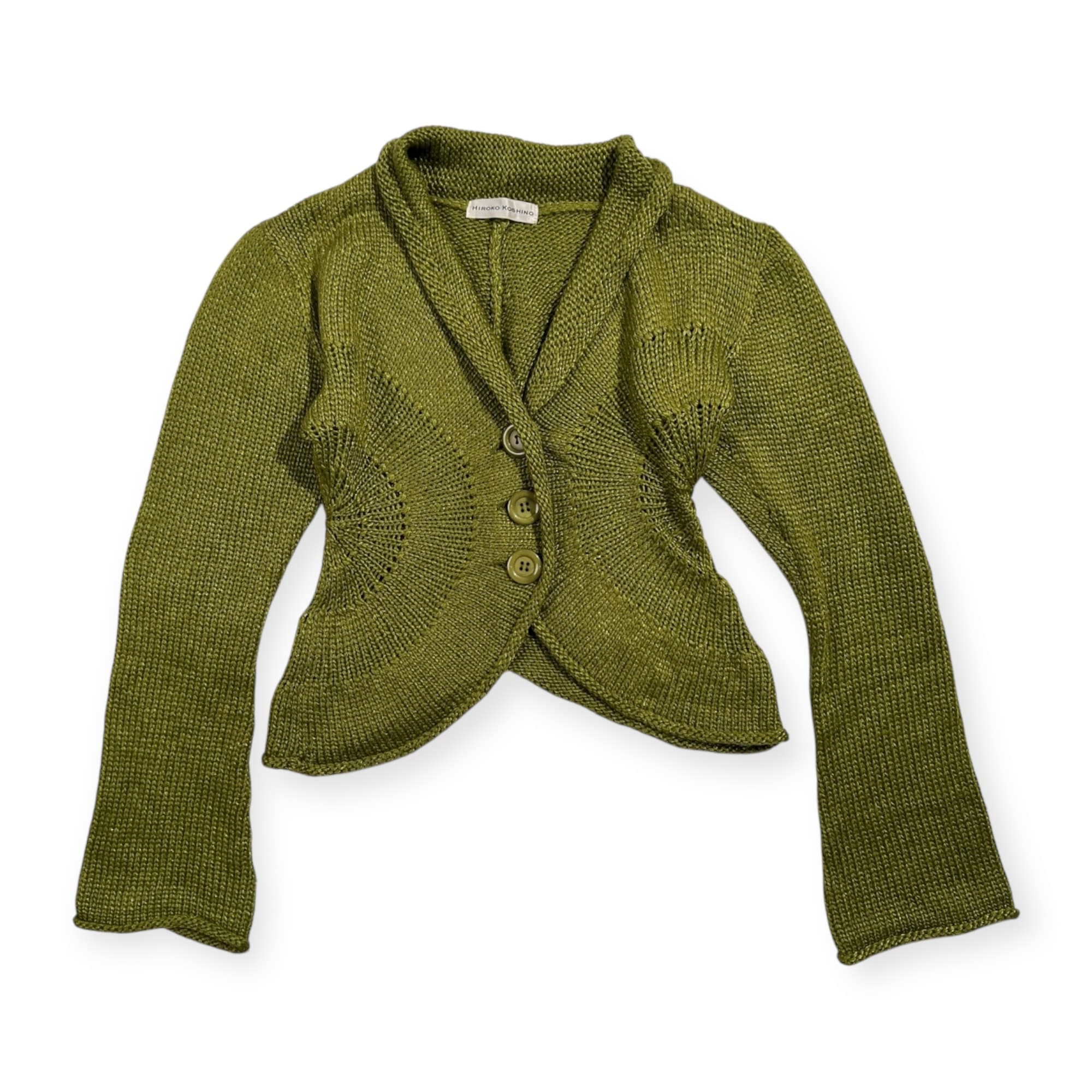 HIROKO KOSHINO ヒロココシノ 変形 デザイン ニット カーディガン サイズ 38 /グリーン系 日本製 ウール ナイロン 婦人服 モード