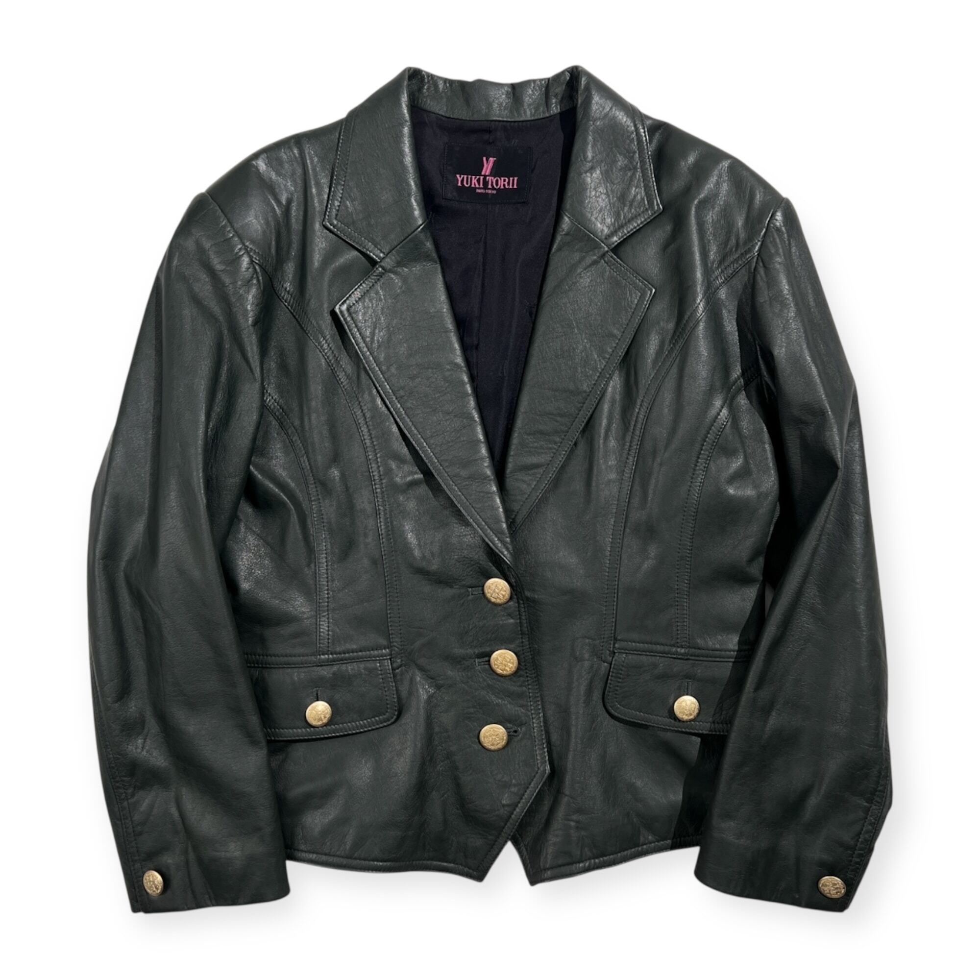YUKI TORII ユキトリイ 金ボタン レザー ジャケット サイズ F /ブラック系 日本製 牛革 本革 婦人服 エレガント 高級