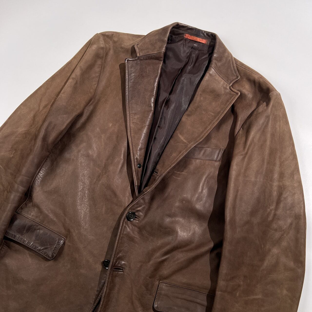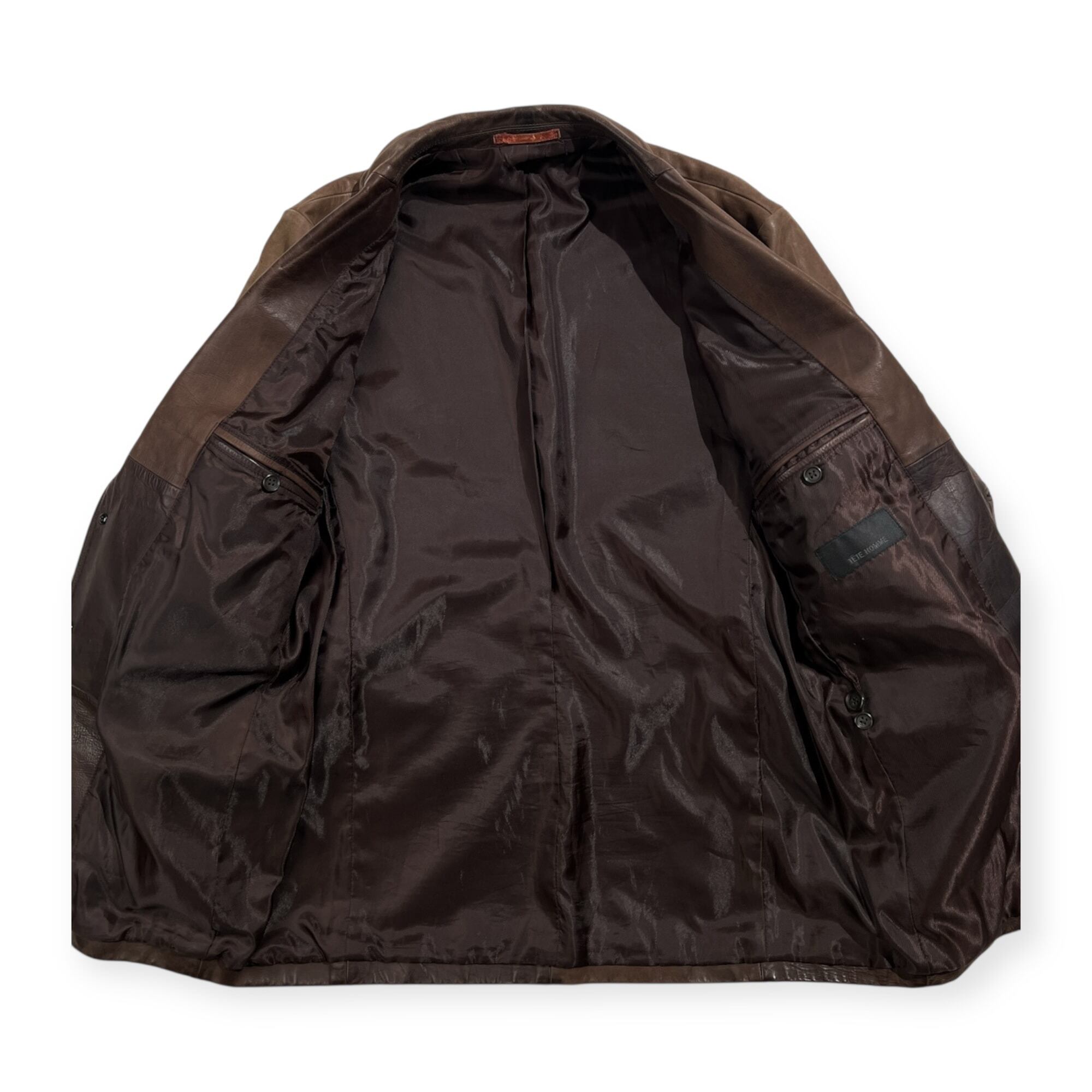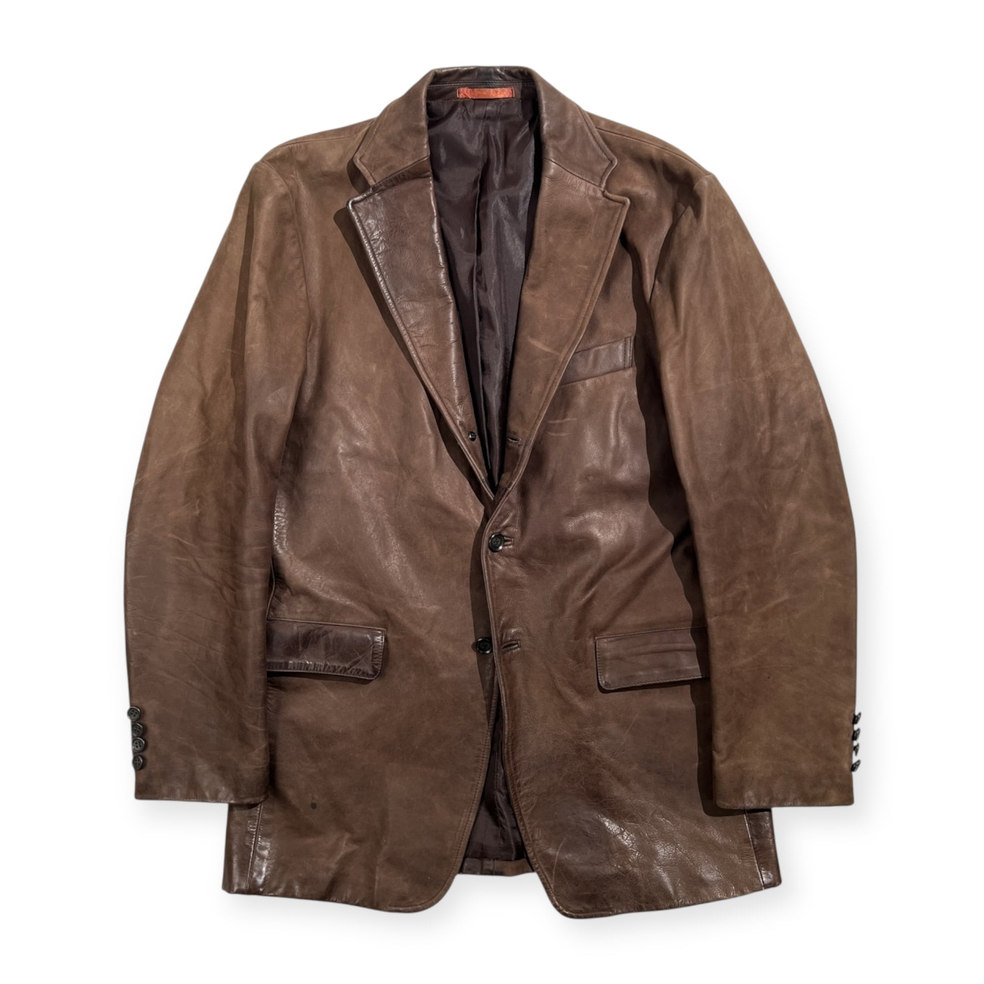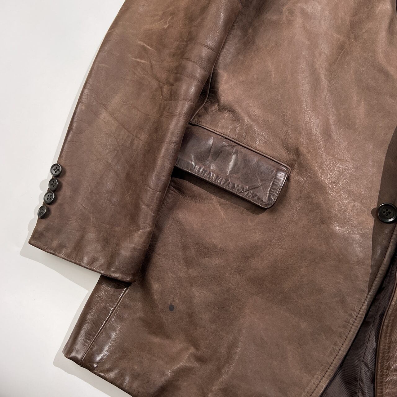 激渋 TETE HOMME テットオム レザー 2B テーラード ジャケット サイズ L /ブラウン系 牛革 本革