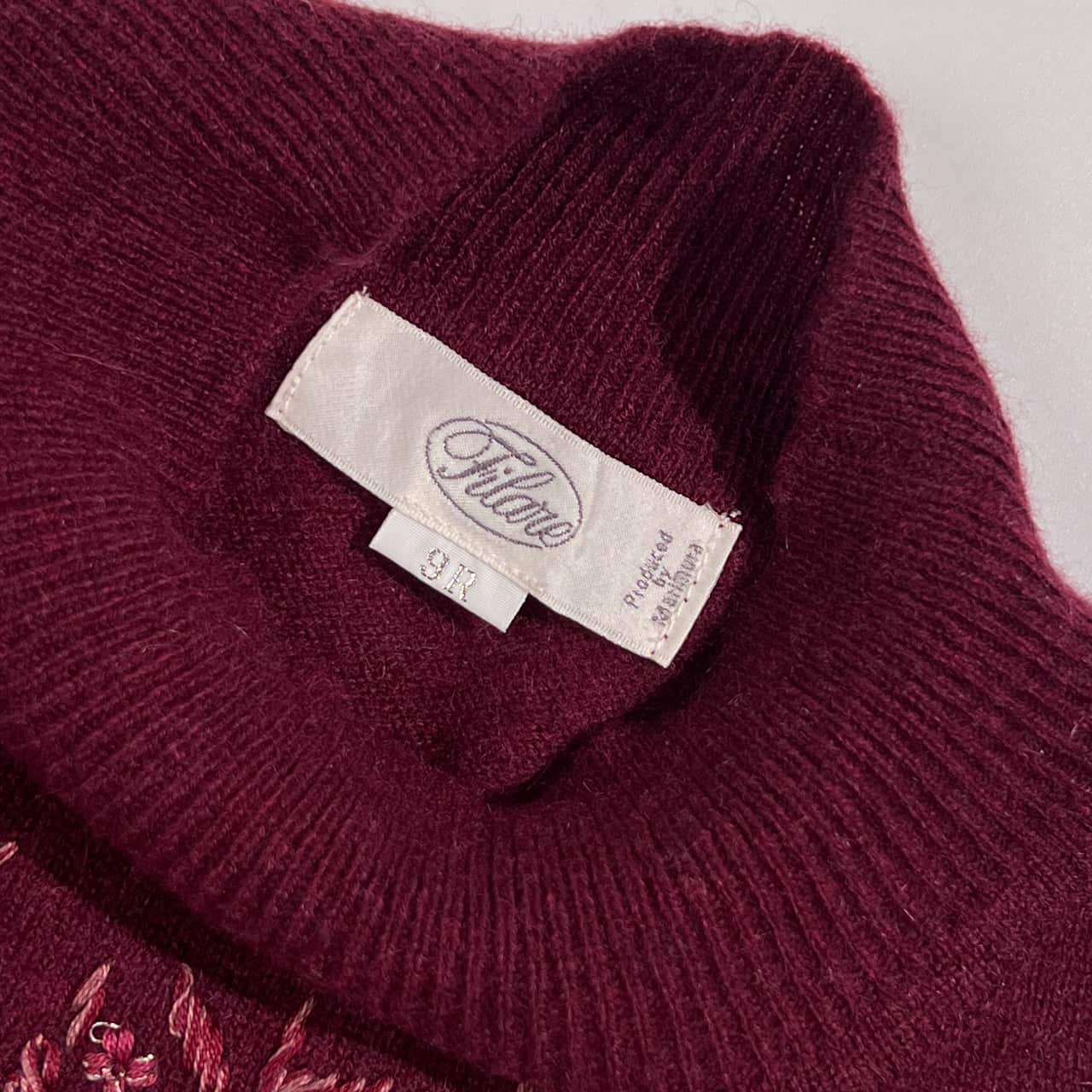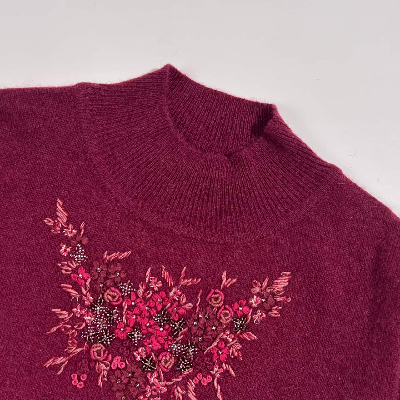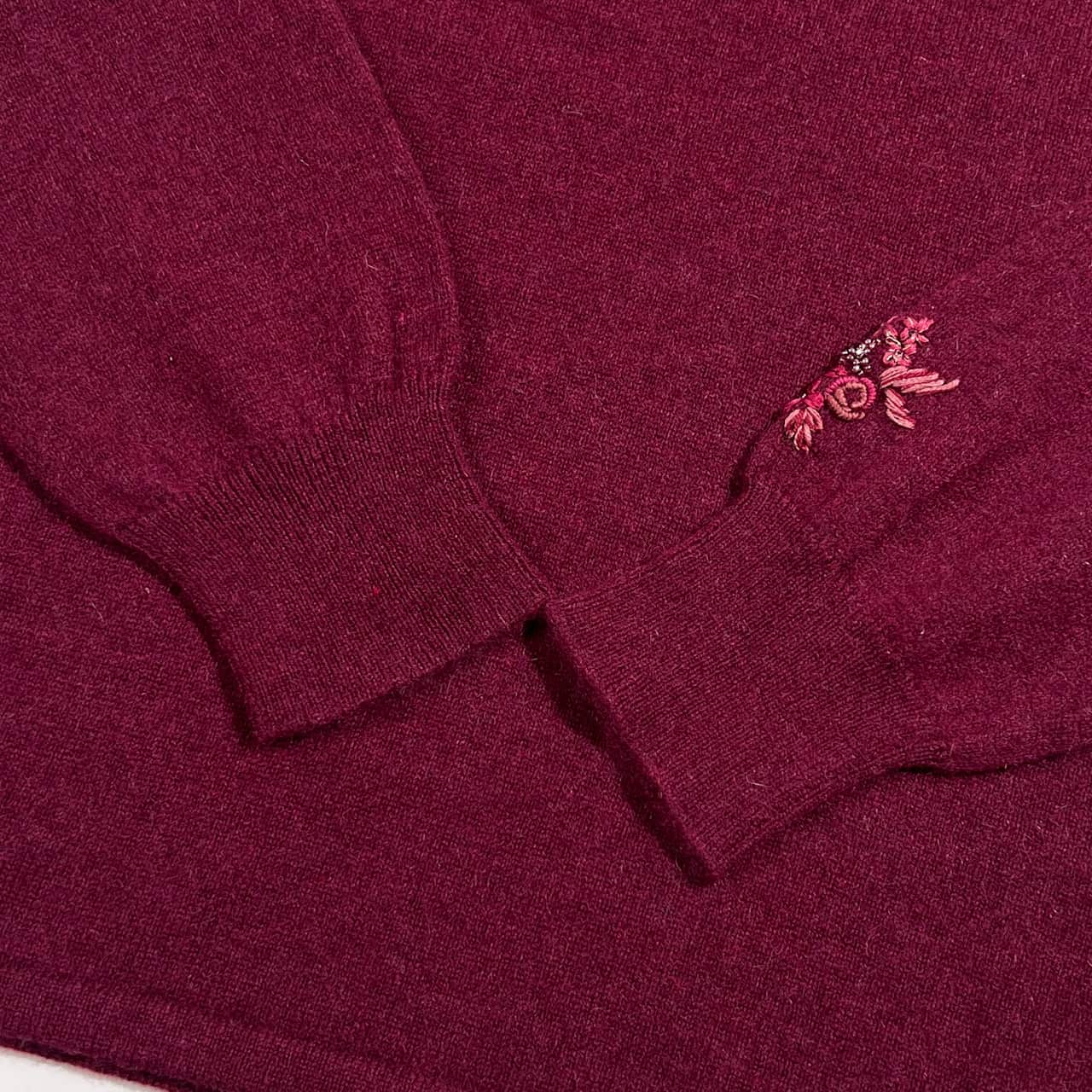 カシミヤ100% Filare フィラーレ ビーズ 花柄 デザイン ニット セーター 9R/赤紫系 レディース