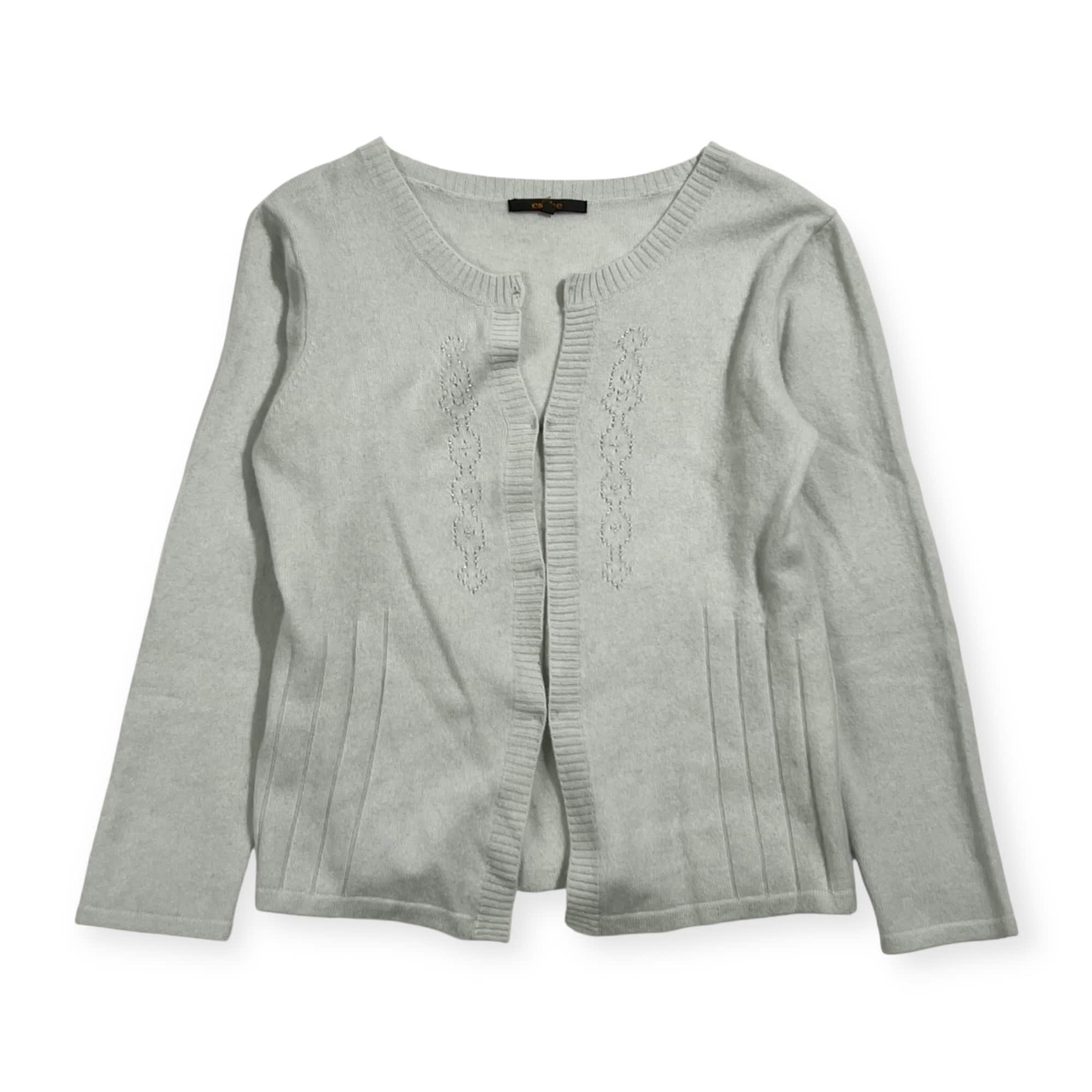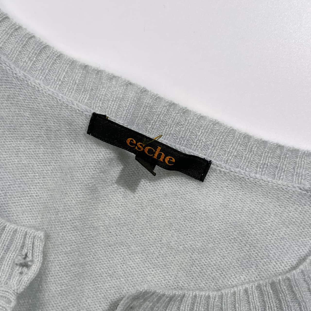 カシミヤ100% esche エッシュ ビーズ デザイン ニット カーディガン 42/ライトブルー系 レディース