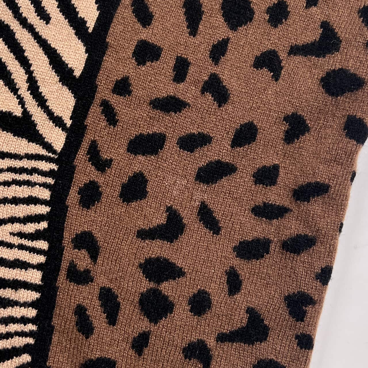 カシミヤ100% Maha Magha マハマハ ゼブラ レオパード アニマル柄 切替 前開き ニット ベスト/マルチ レディース