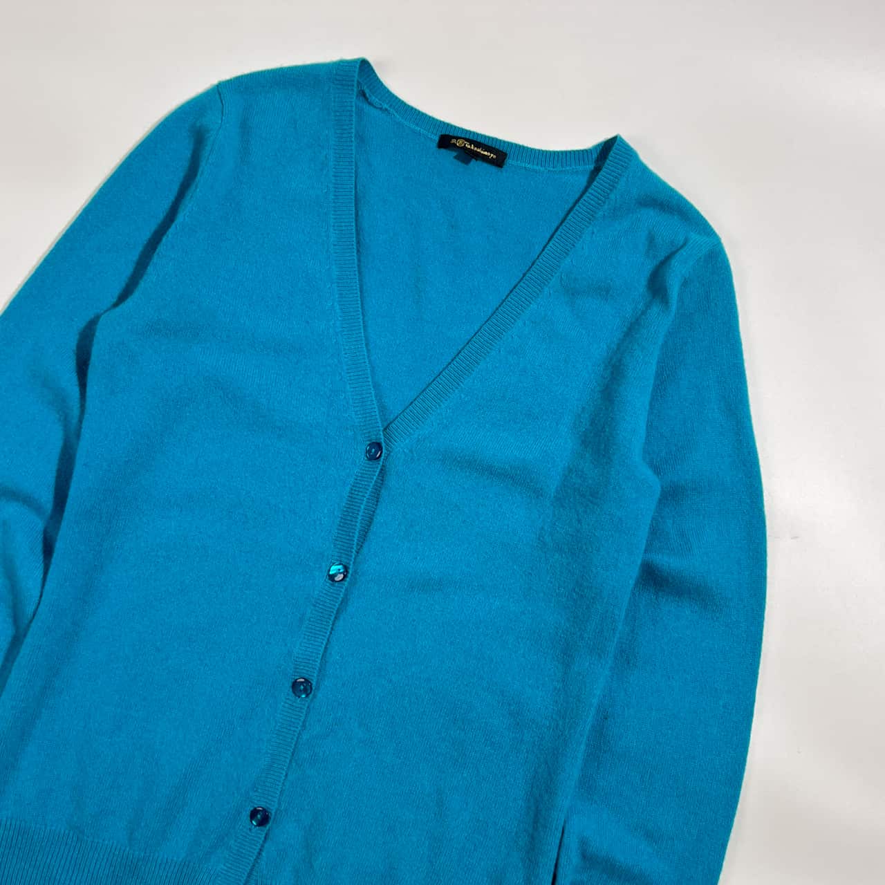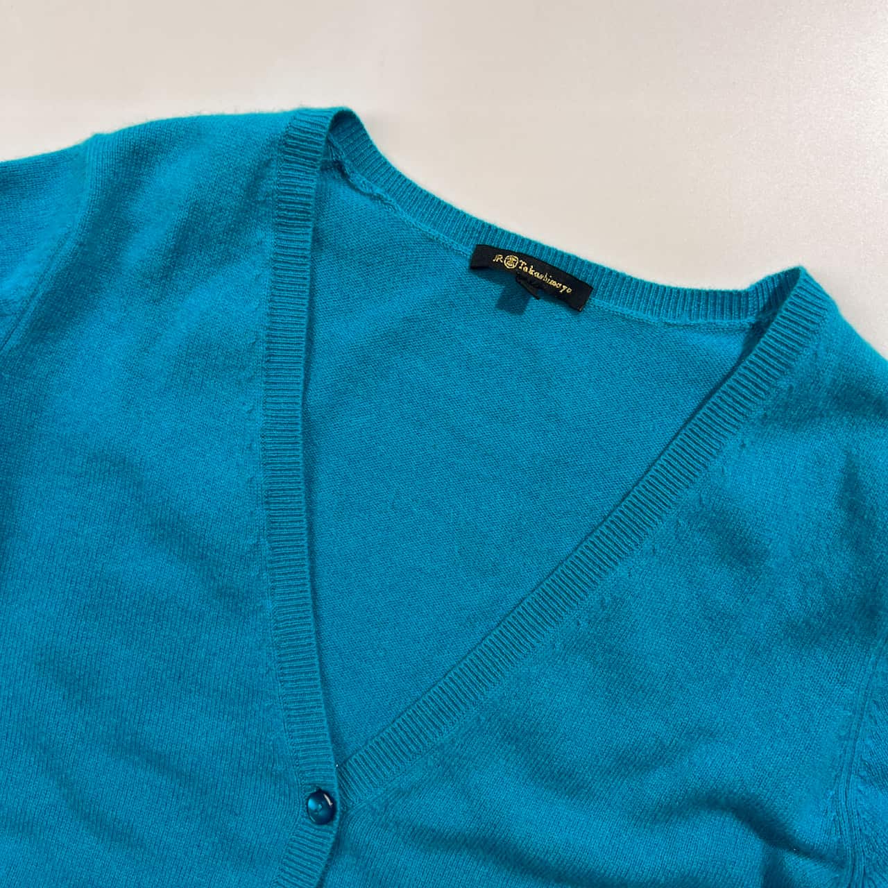 カシミヤ100% JR Takashimaya タカシマヤ Vネック ニット カーディガン M/ブルー系 レディース