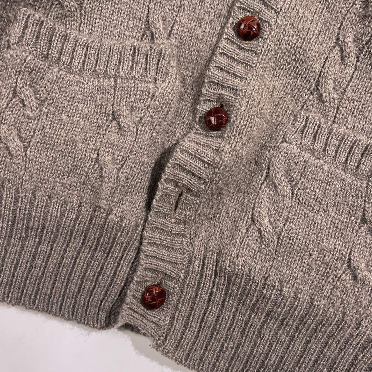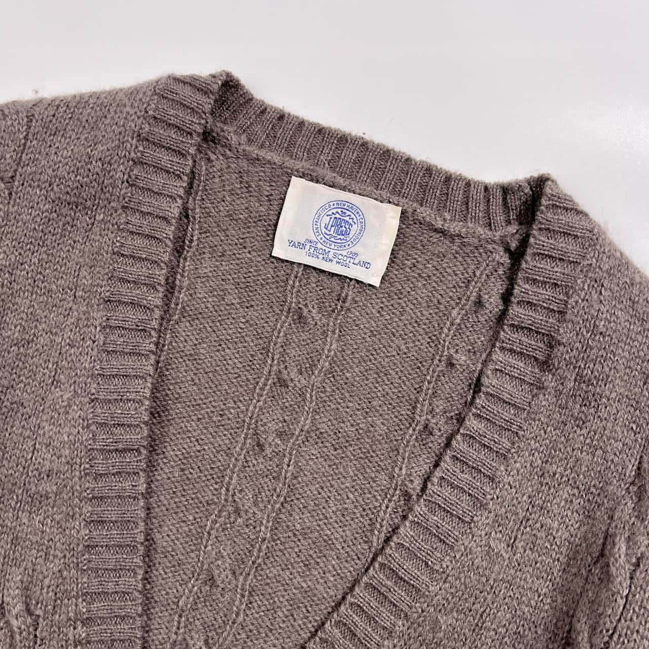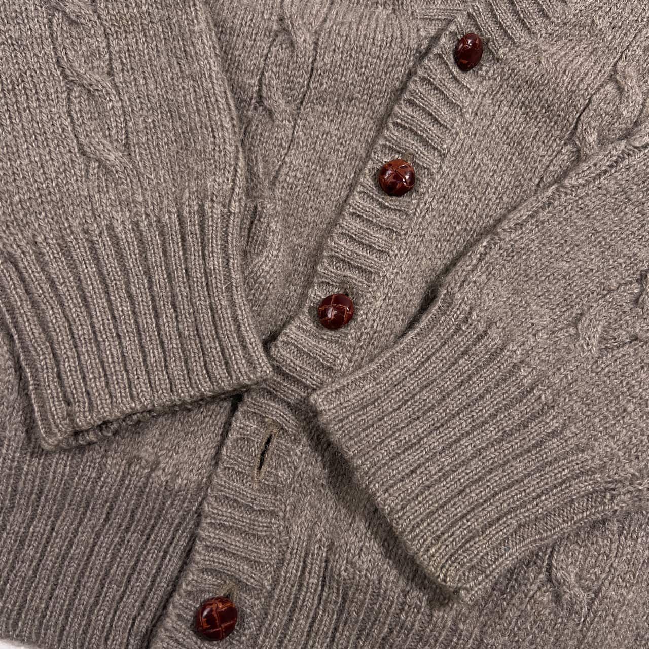80s J.PRESS ジェイプレス ウール ケーブル編み ニット カーディガン M/グレージュ系 レディース くるみボタン ビンテージ