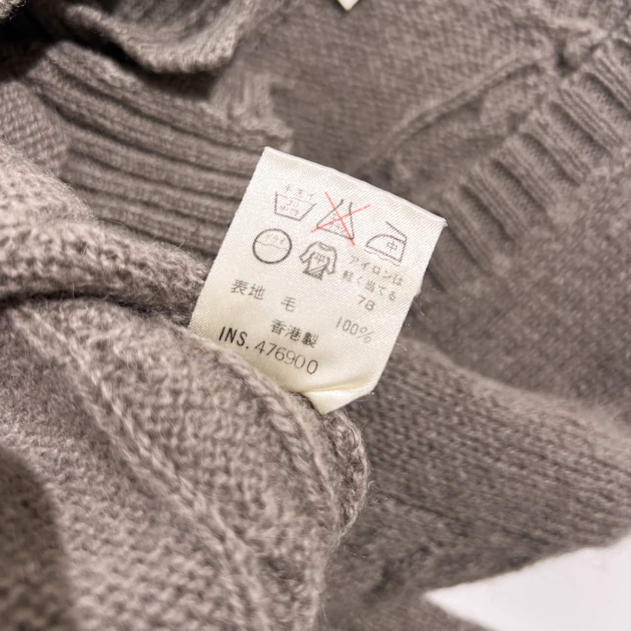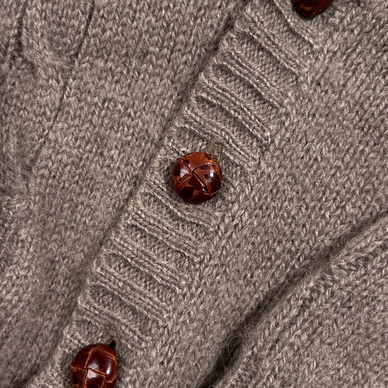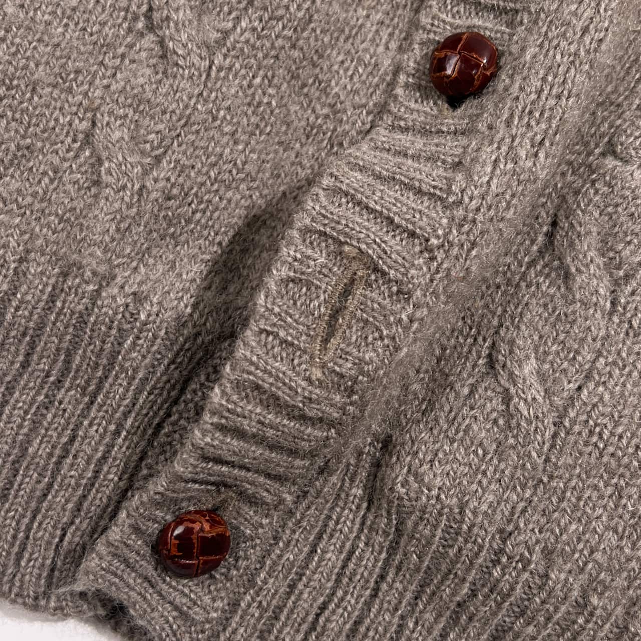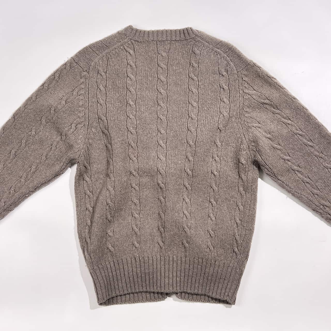 80s J.PRESS ジェイプレス ウール ケーブル編み ニット カーディガン M/グレージュ系 レディース くるみボタン ビンテージ