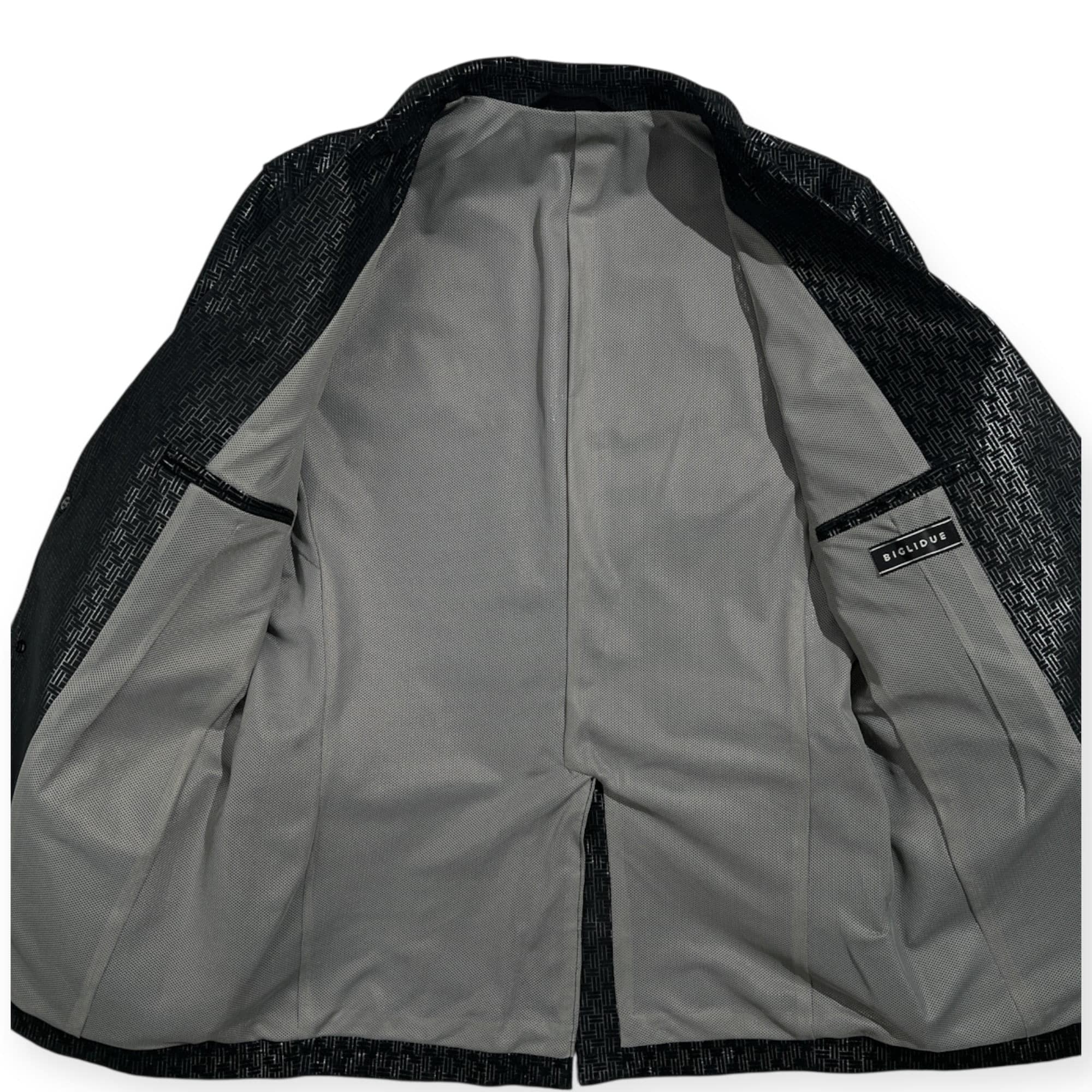 BIGLIDUE ビリドゥーエ 総柄 本革 レザー テーラードジャケット サイズ 50 /ブラック系 ピックレザー 光沢 パーティー モード