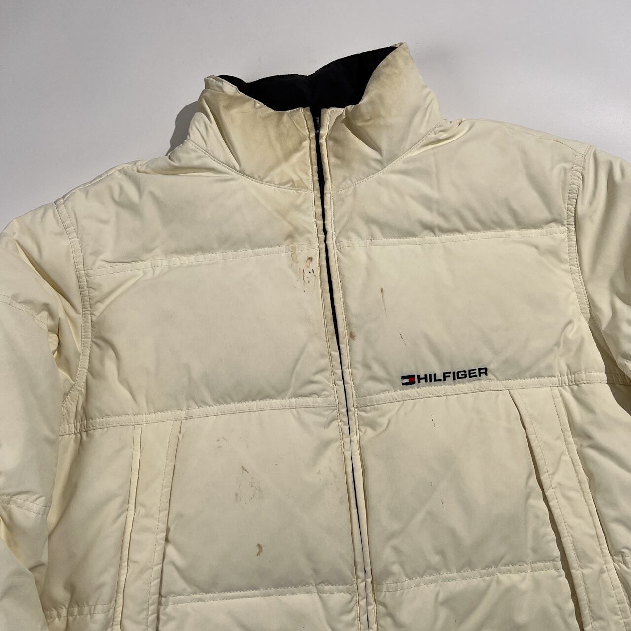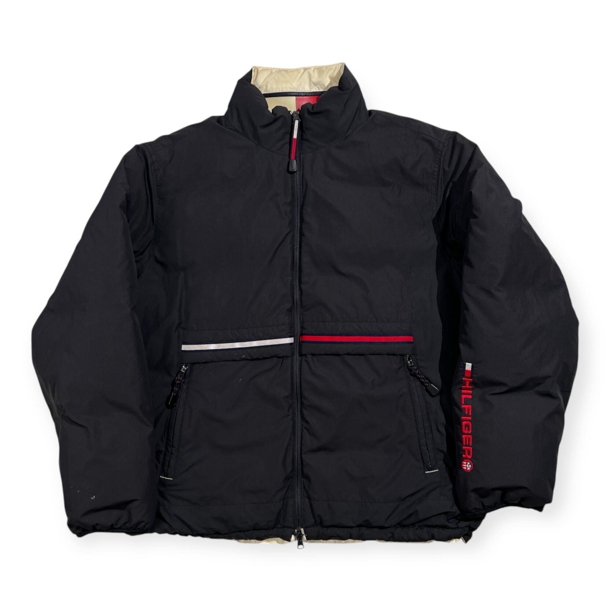TOMMY HILFIGER トミーヒルフィガー リバーシブル ダウンジャケット 刺繍ロゴ サイズ M /ブラック×ホワイト オールド ビンテージ