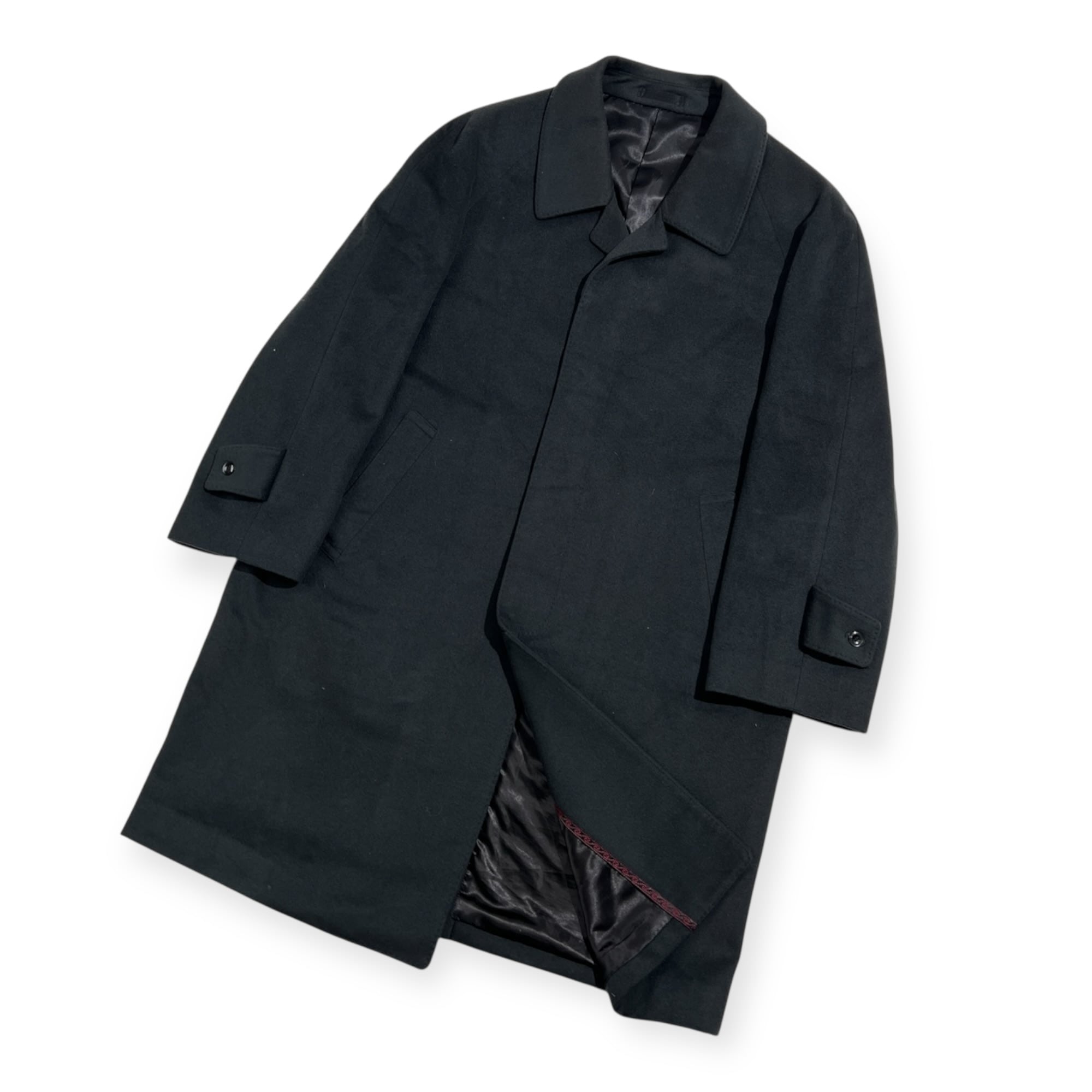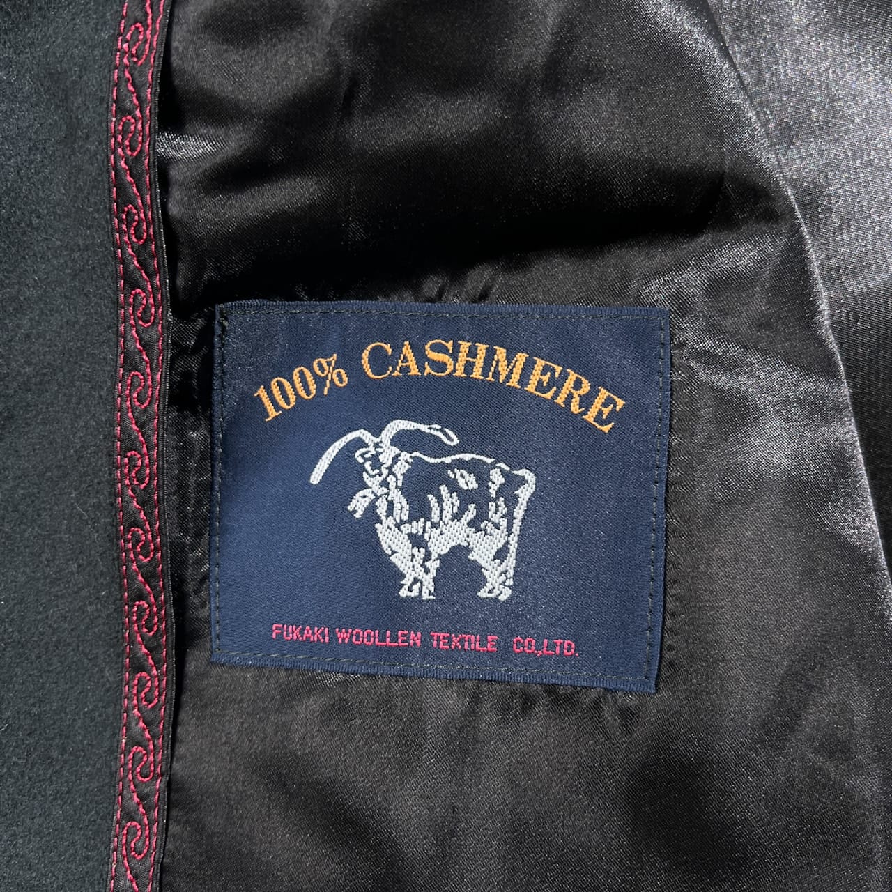 深喜毛織 FUKAKI カシミヤ100% ステンカラーコート 比翼仕立て サイズ A3 /ブラックグレー系 最高級 紳士 ビジネス フォーマル