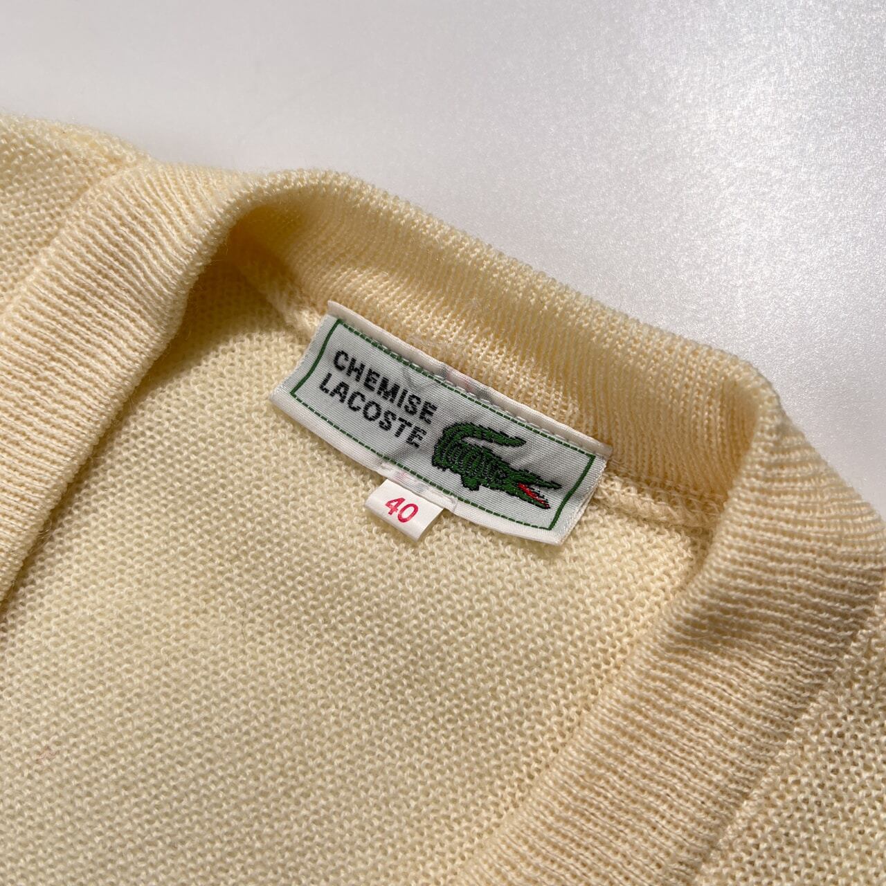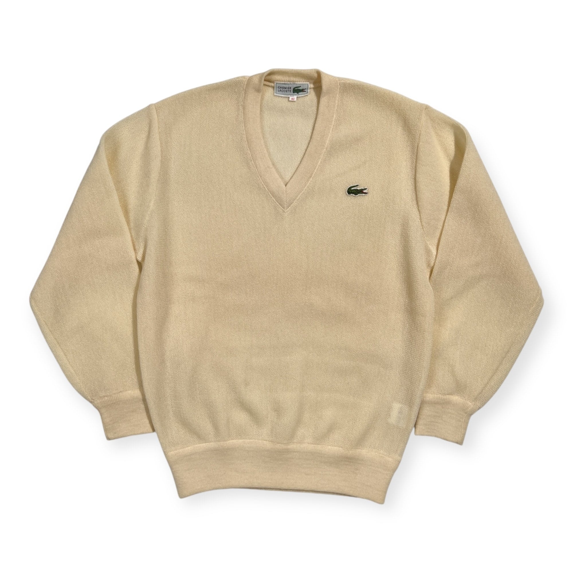 70s 80s LACOSTE ラコステ 文字ワニ ウールニットセーター Vネック 40 /アイボリー系 ビンテージ フレンチトラッド K-YG-7187