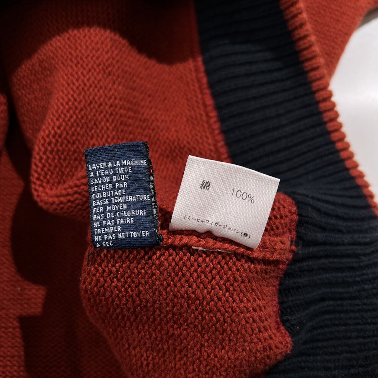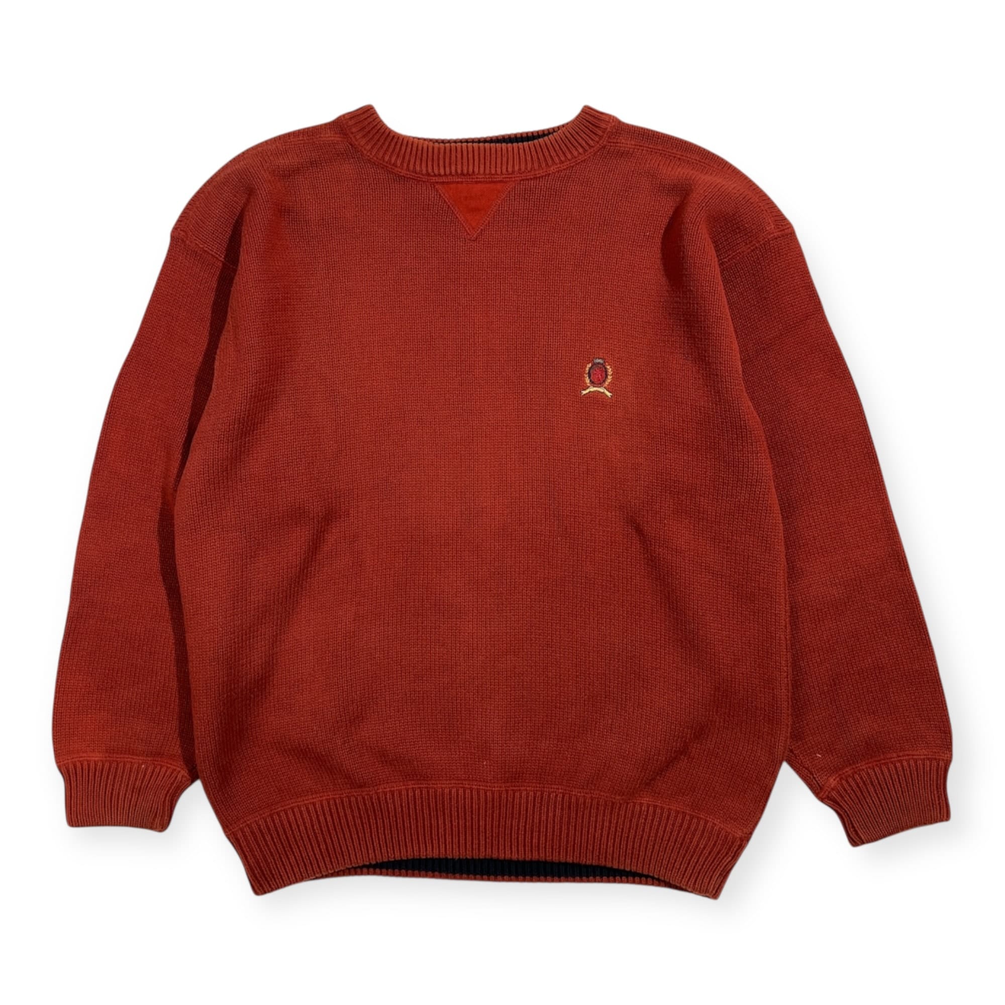 90s TOMMY HILFIGER トミーヒルフィガー クルーネック コットン ニット セーター サイズ L /レンガ色 テラコッタ系/ビンテージ