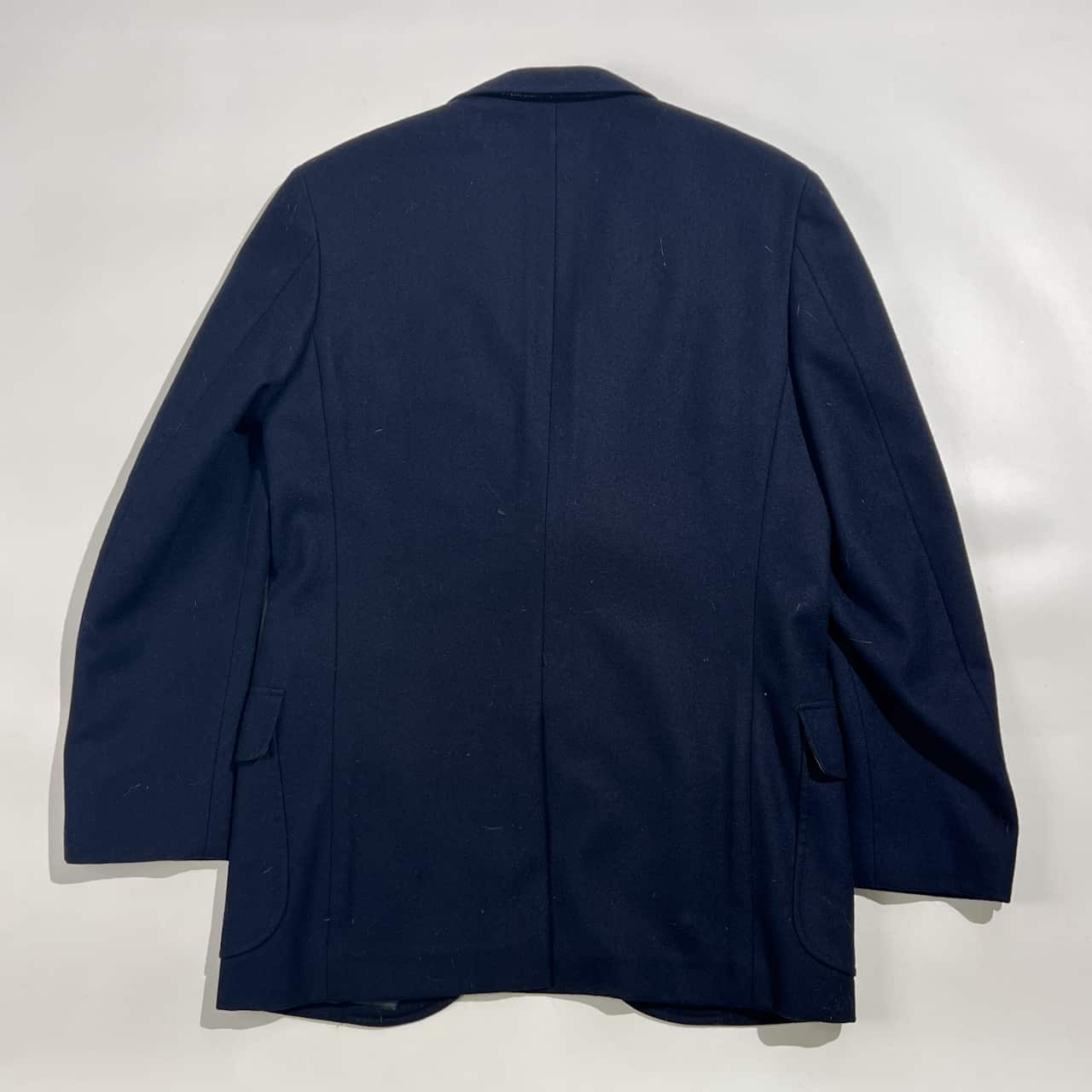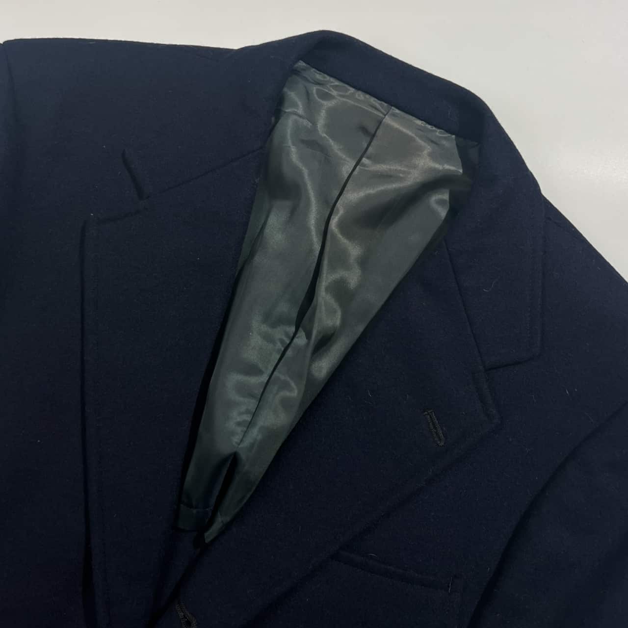 裏地にネーム刺繍入りのお品物です。古い年代のお品物のため、裏地にうすよごれ、繊維付着がありますが、まだまだご着用していただけます。コンデションについての詳細は画像をご参照ください。