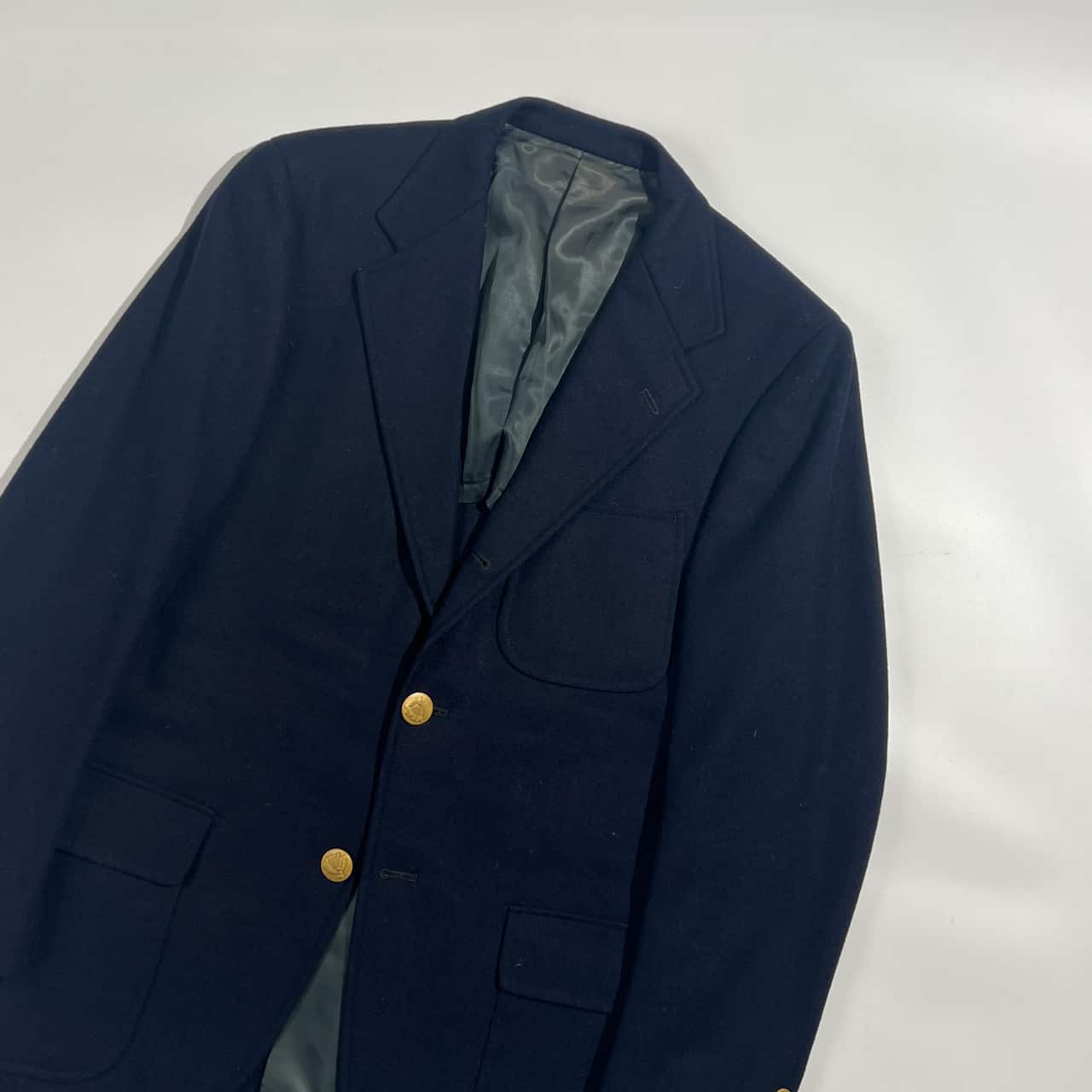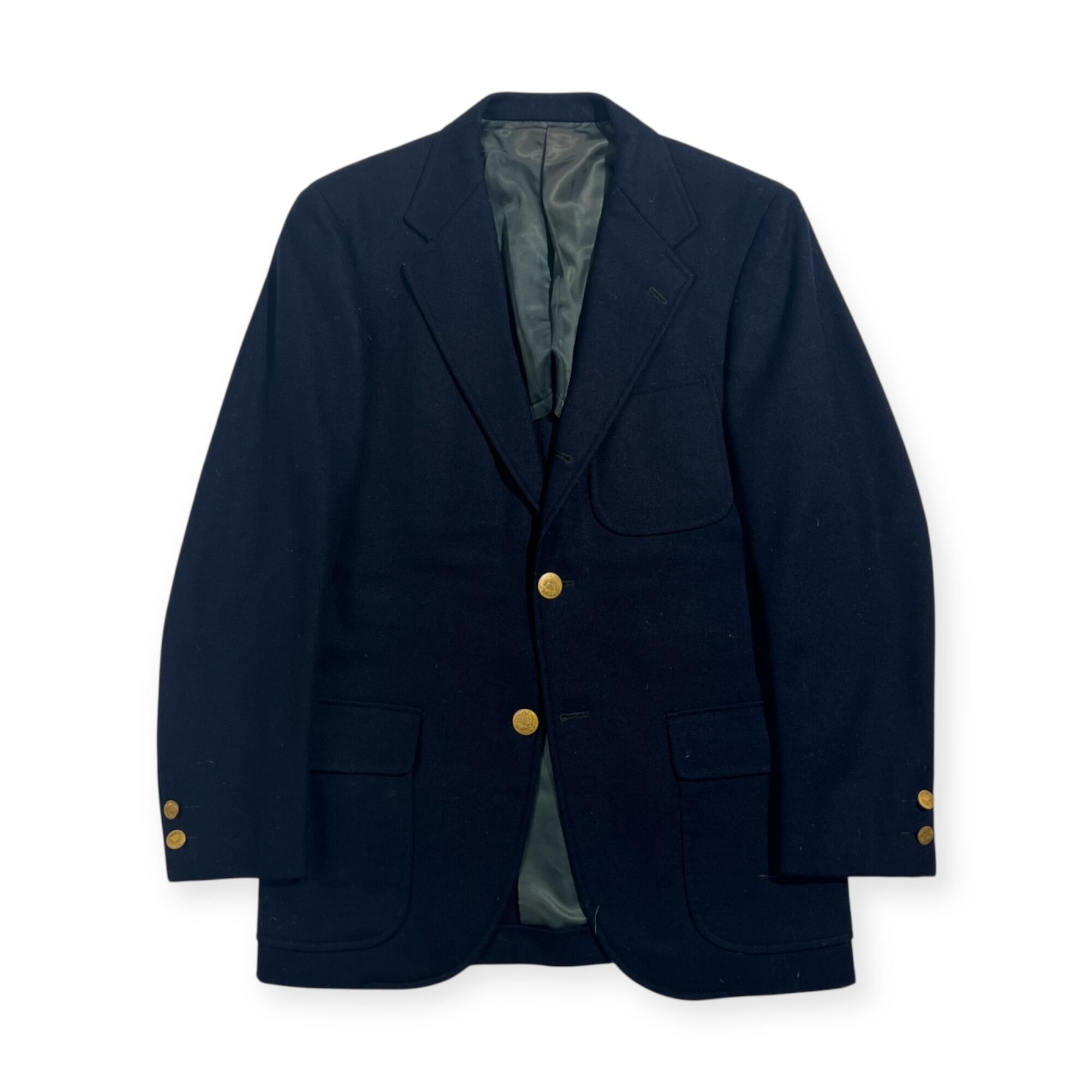 80s Kent ケント 金ボタン 段返3B 背抜き ウール テーラードジャケット 紺ブレ165-84-73/ネイビー系 メンズ ビンテージ VAN JAC