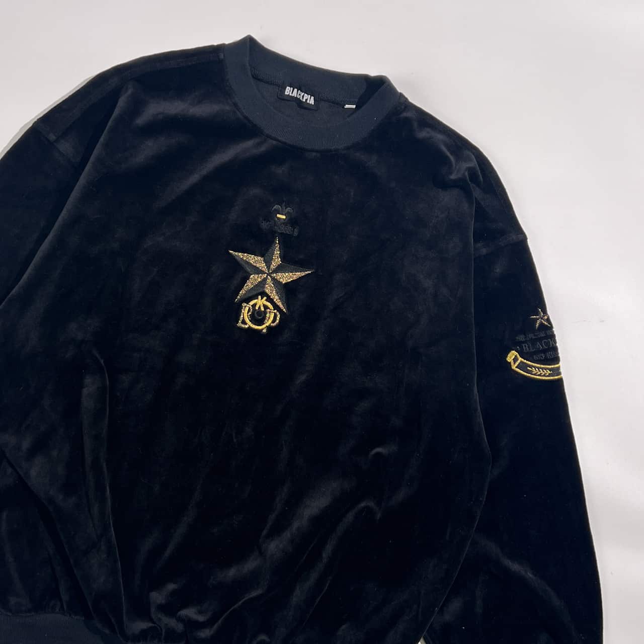 BLACKPIA ブラックピア スター 刺繍 ベロア ベルベット トレーナー L/ブラック系 メンズ