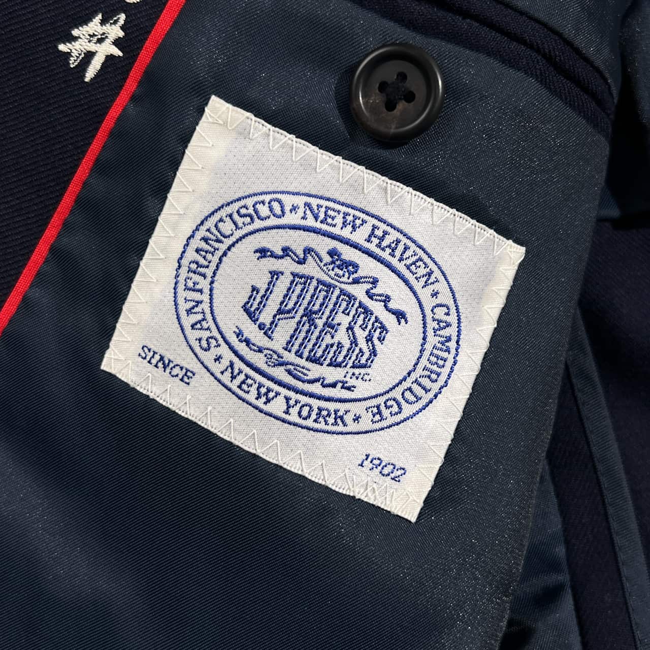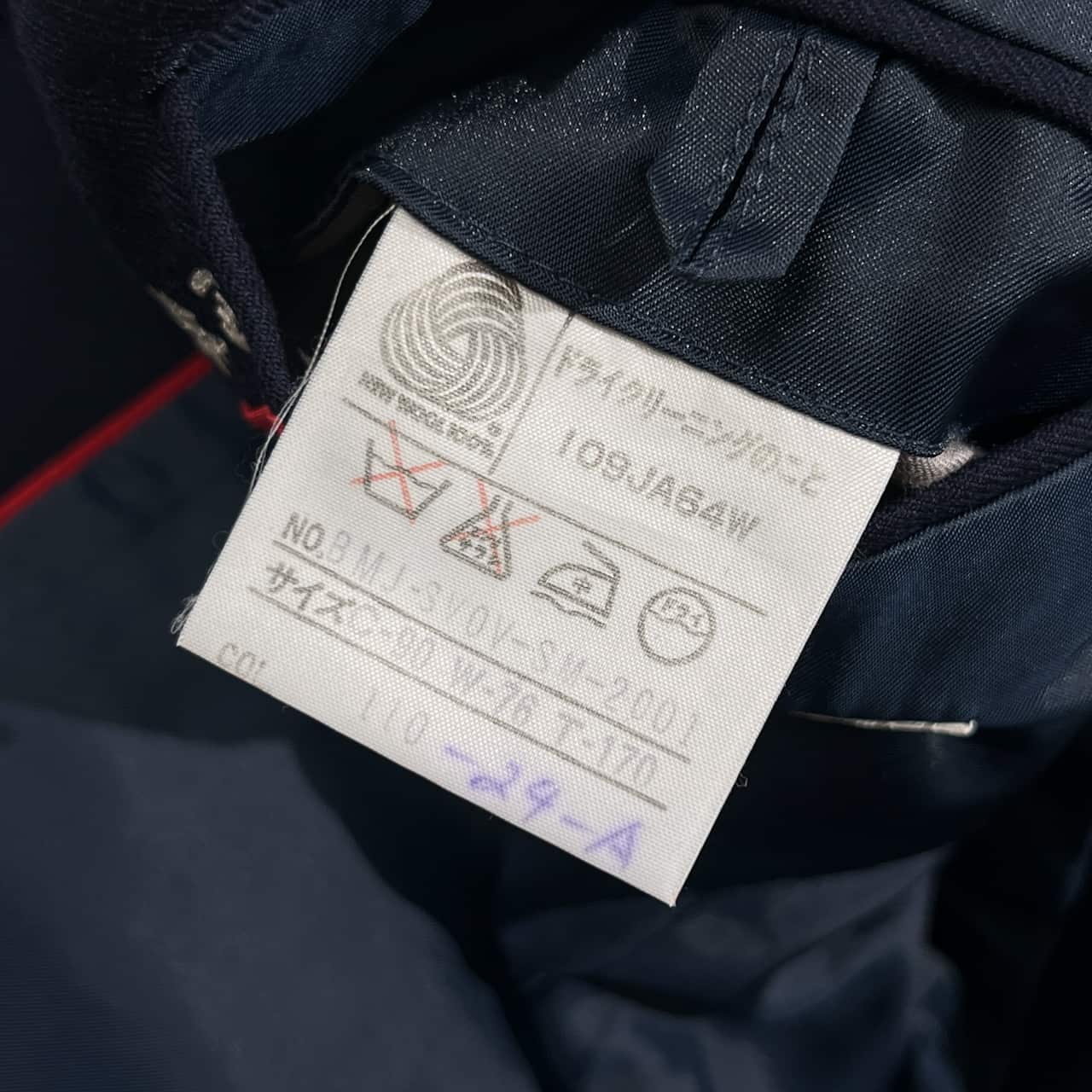 裏地にネーム刺繍があります。袖先にダメージ、袖にうすよごれがありますが、まだまだご着用していただけます。コンデションについての詳細は画像をご参照ください。