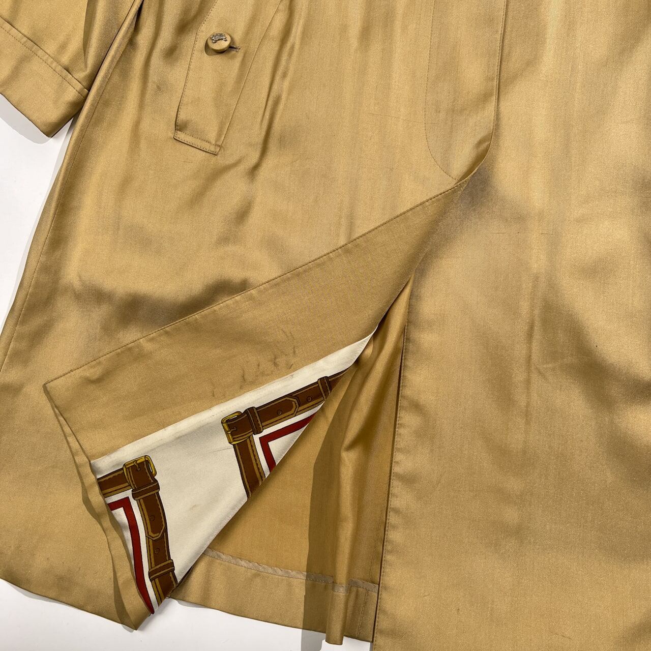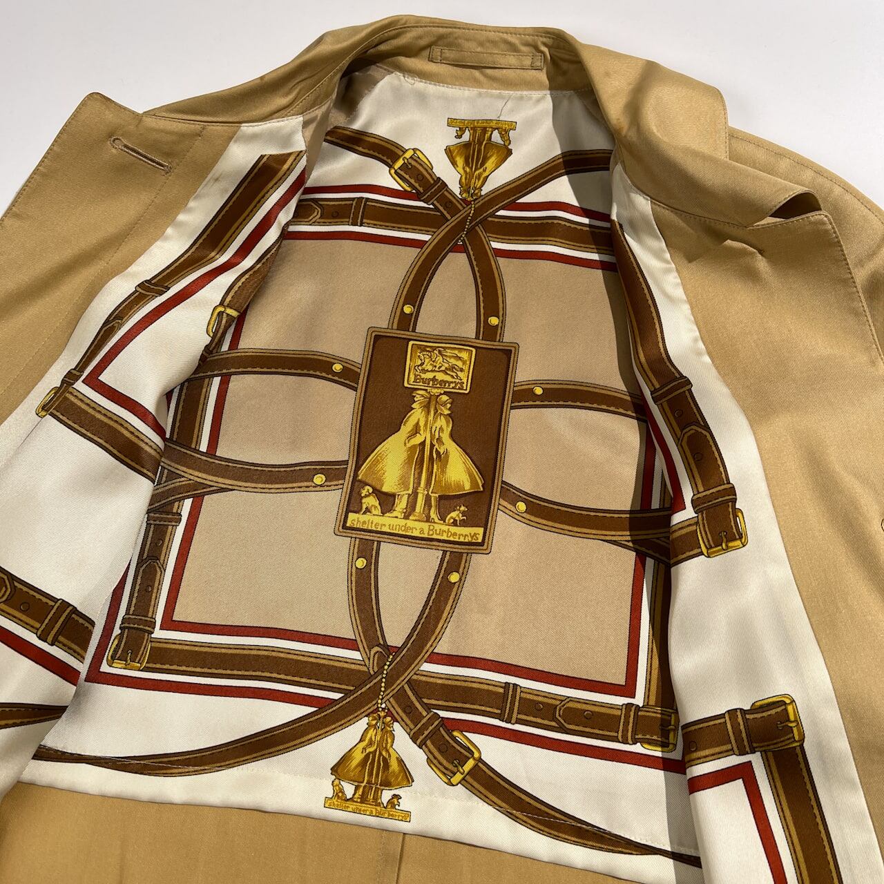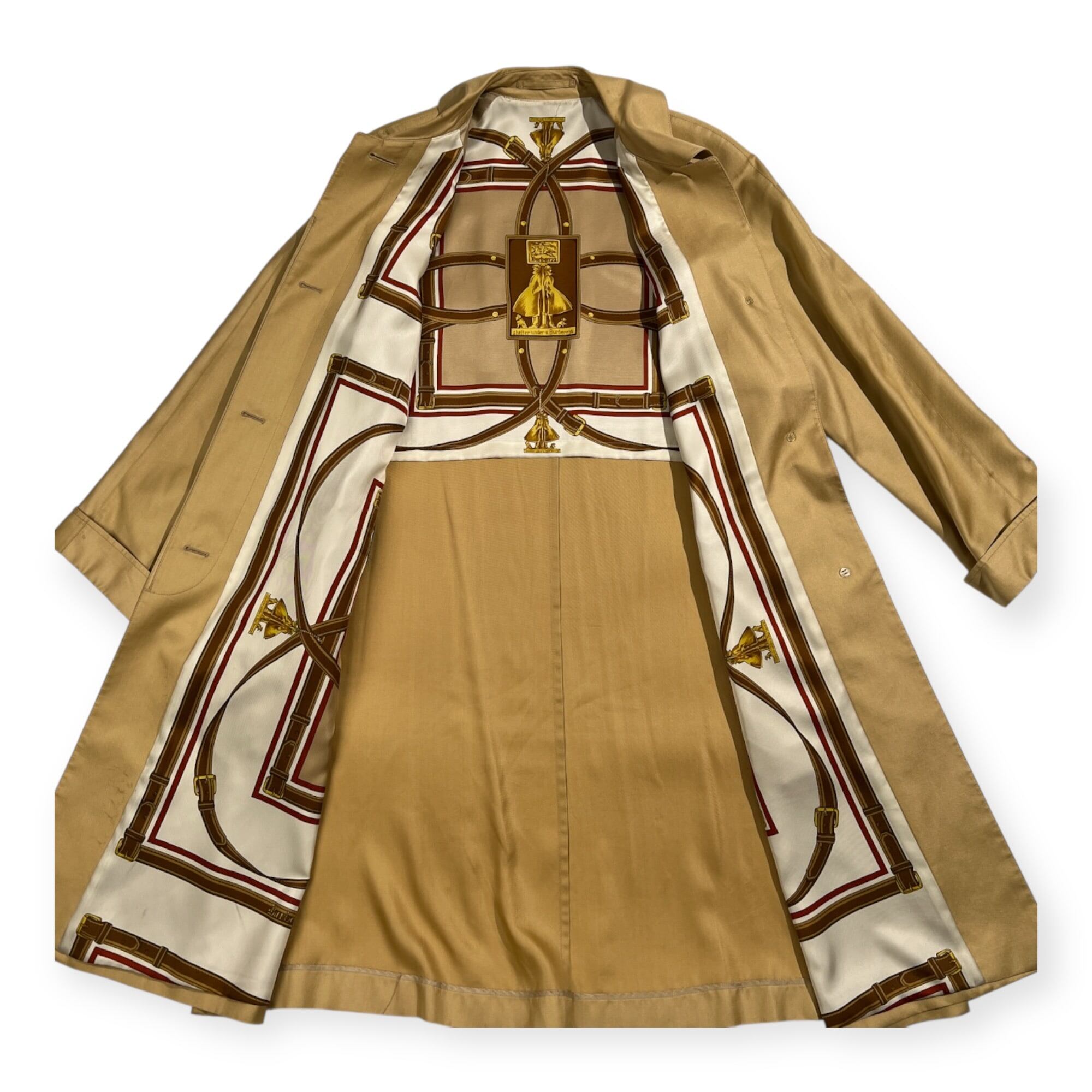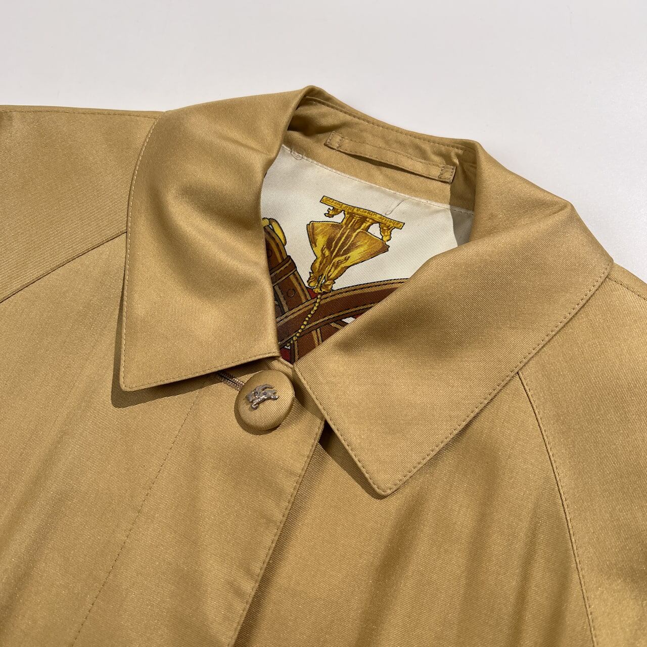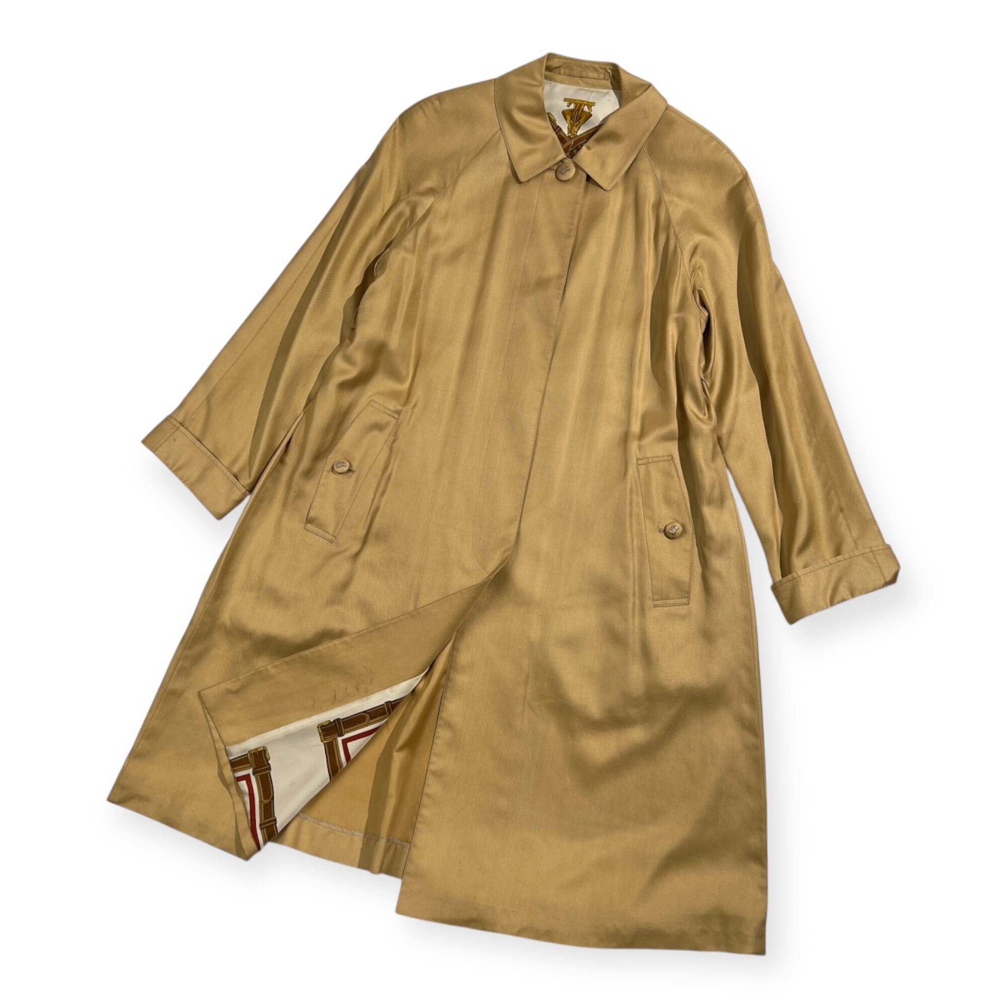 Burberrys バーバリー シルク100% 裏地総柄 ステンカラー コート 7AR /ゴールド系 三陽商会 ヴィンテージ