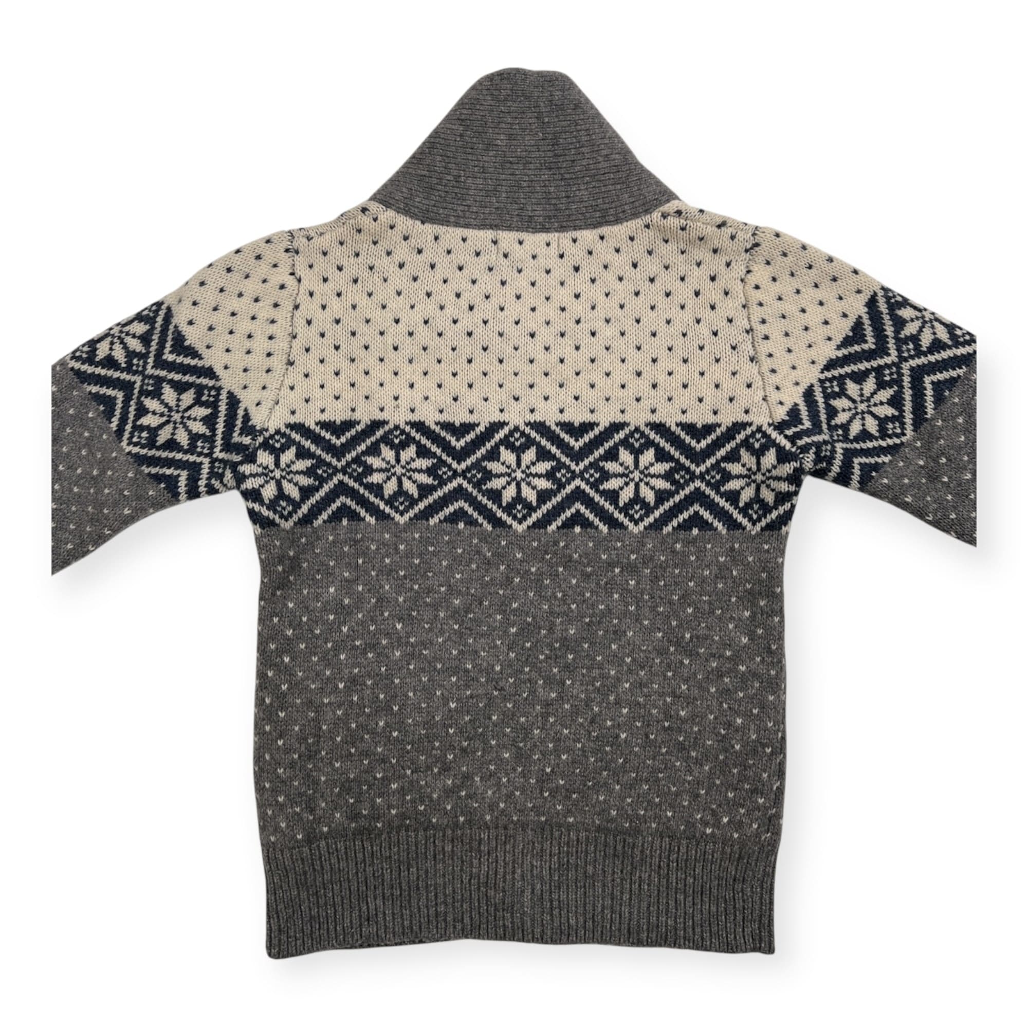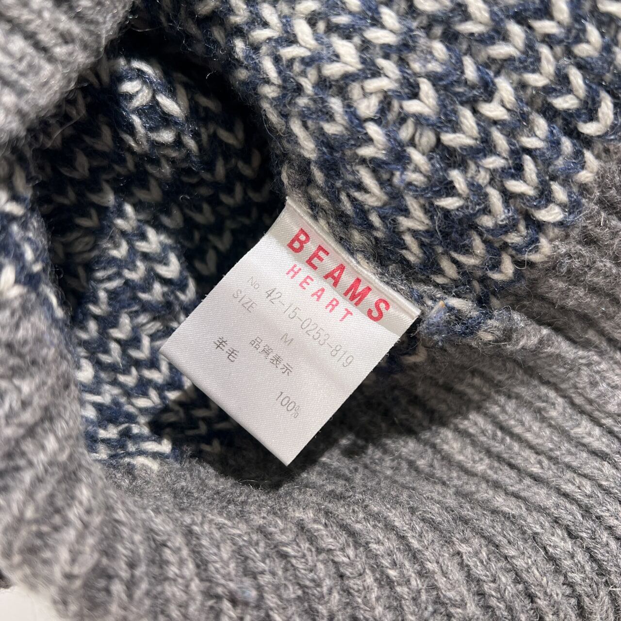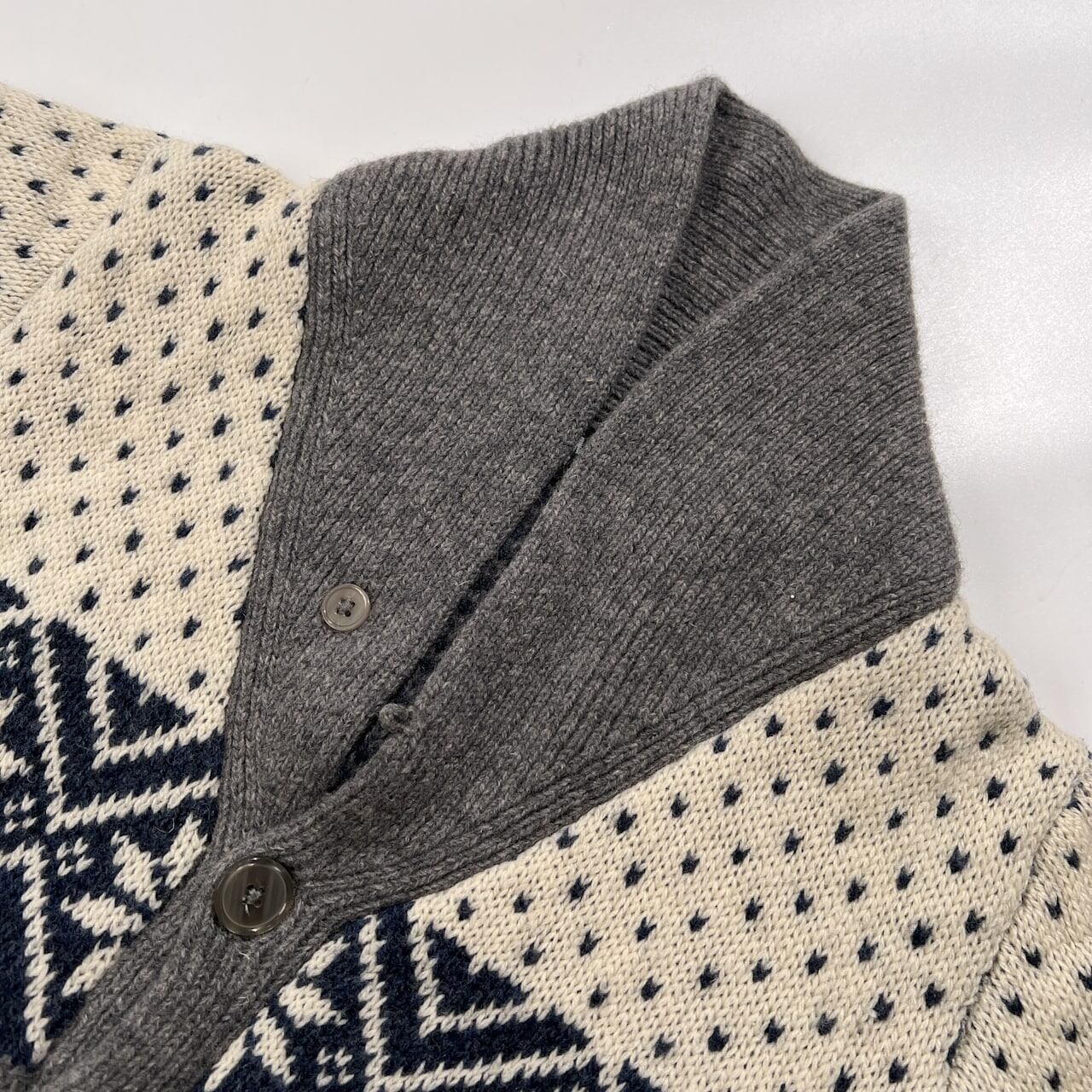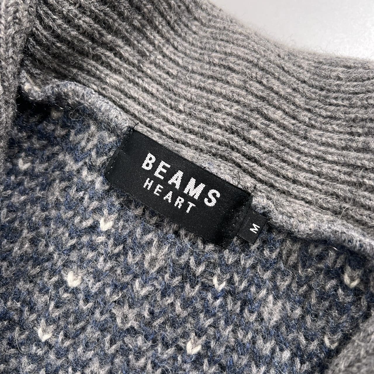 BEAMS HEART ビームス 羊毛100% ウール ショールカラー ニット カーディガン M /グレー系 雪柄 ノルディック 厚手 セーター