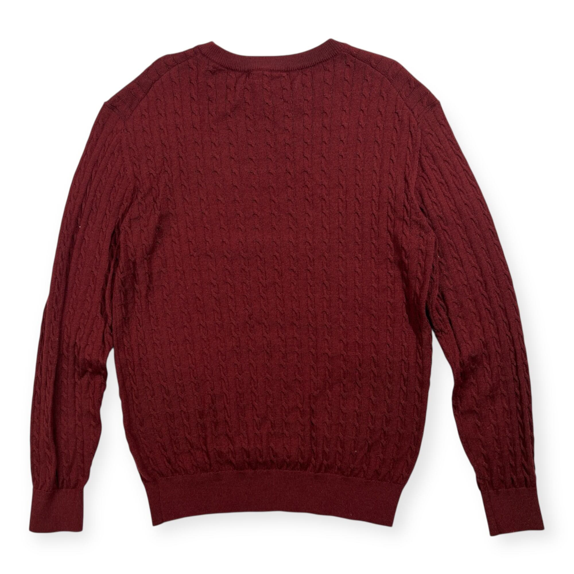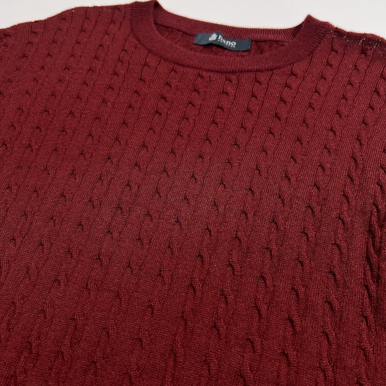 nano universe ナノユニバース ケーブル編み クルーネック ハイゲージ ウール ニット セーター L /ボルドー ワインレッド系/メンズ