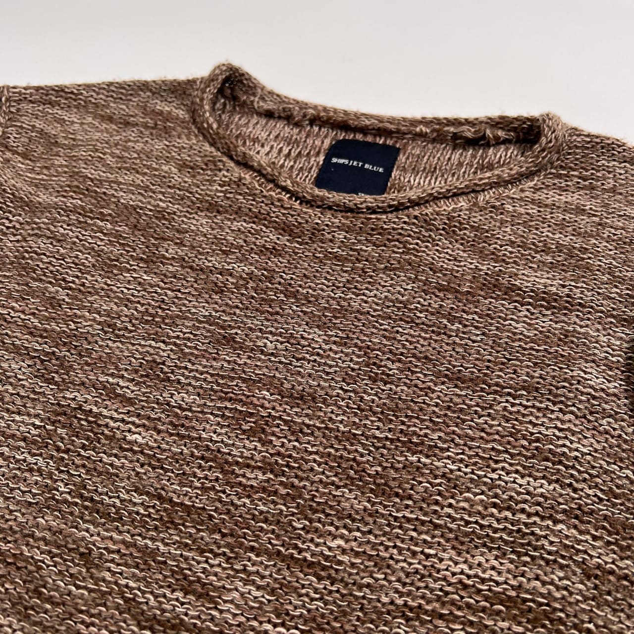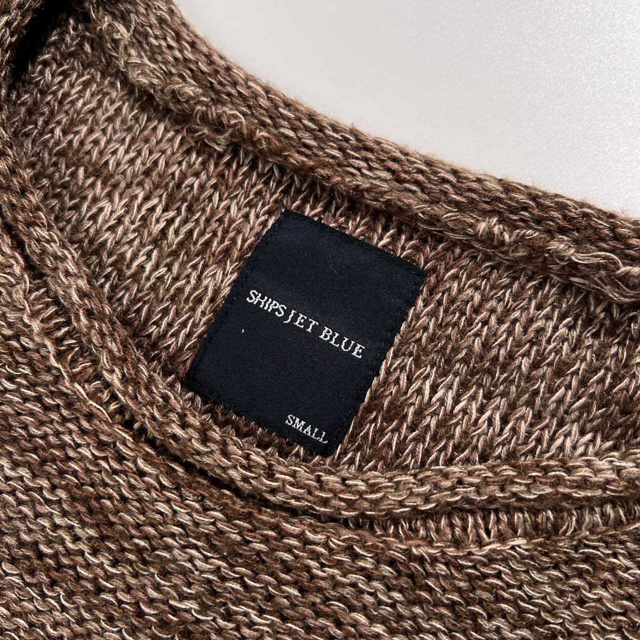 SHIPS JET BLUE シップスジェットブルー メランジ編み クルーネック コットン リネン混 サマーニット セーター サイズ S/ブラウン系