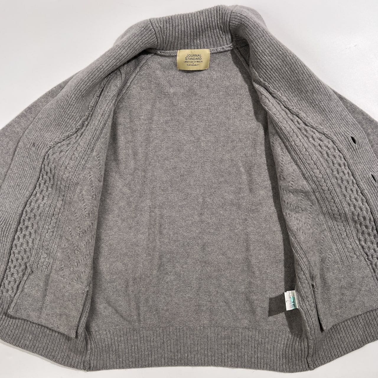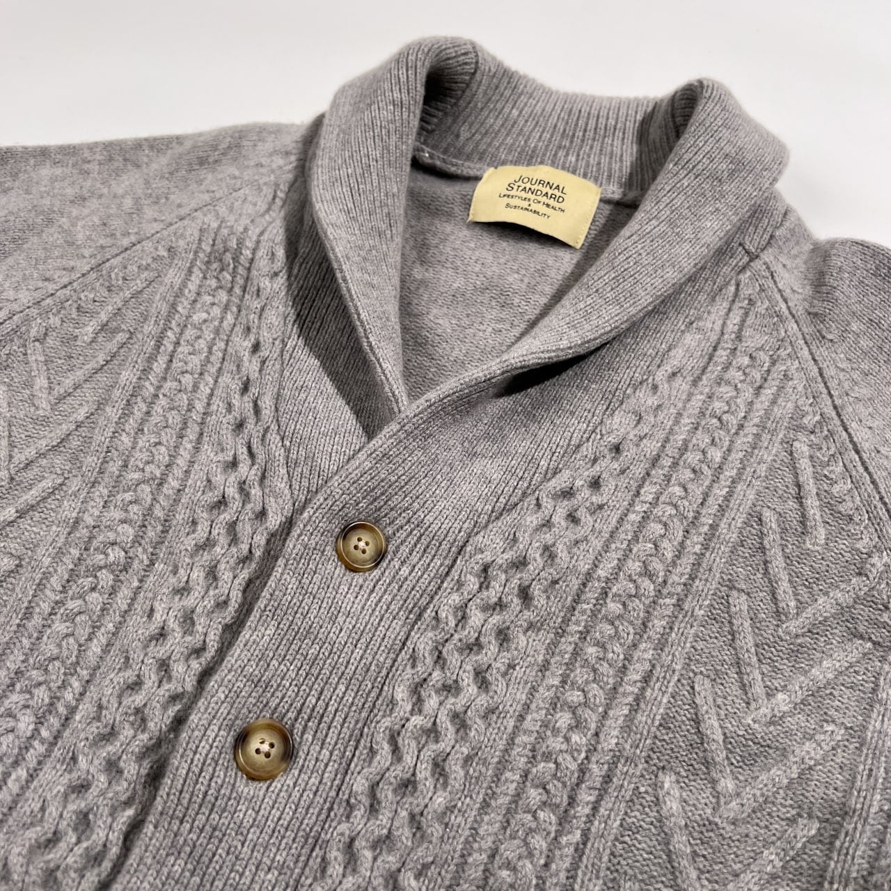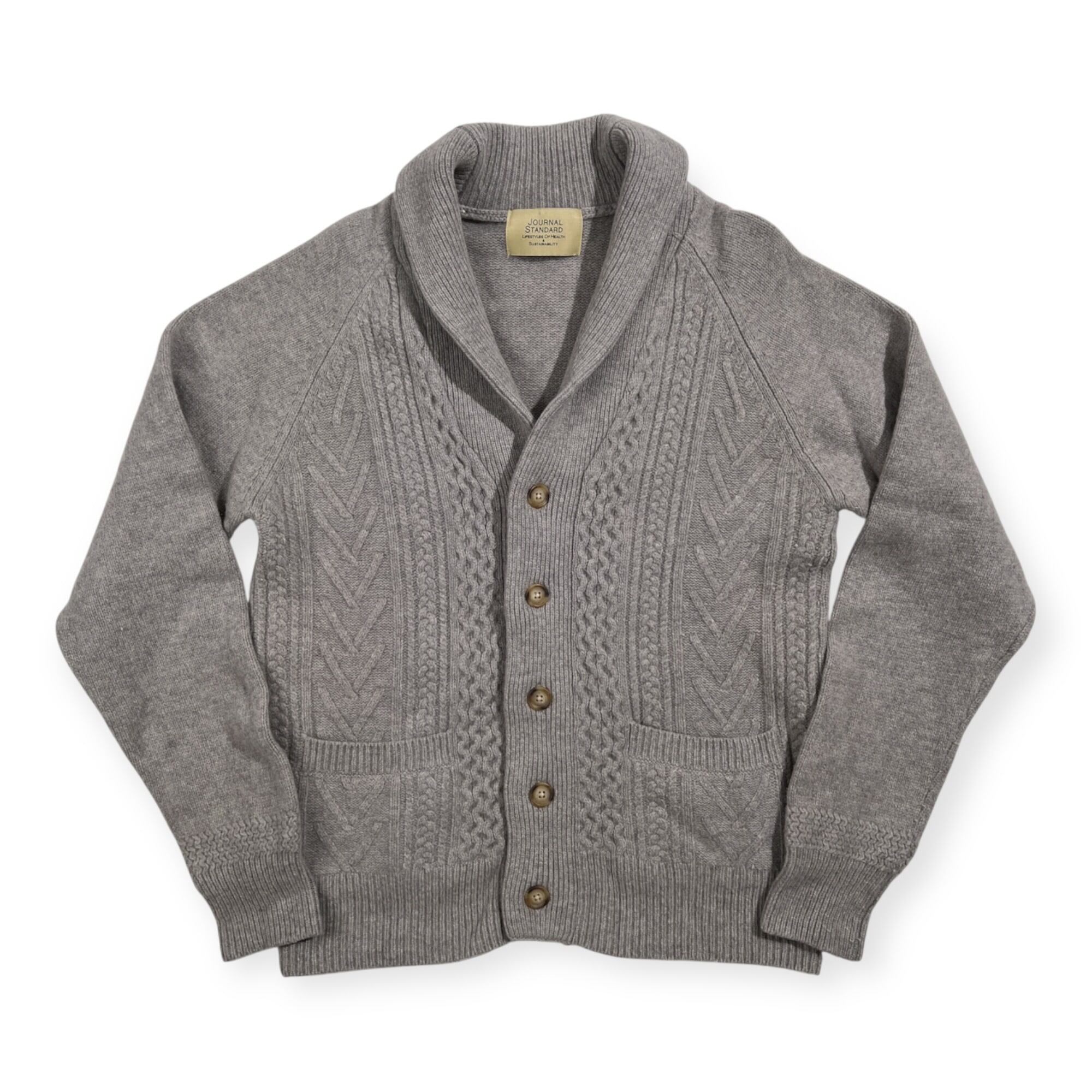 JOURNAL STANDARD ジャーナルスタンダード ウール100% ショールカラー ニット カーディガン L /グレー系 ケーブル編み メンズ