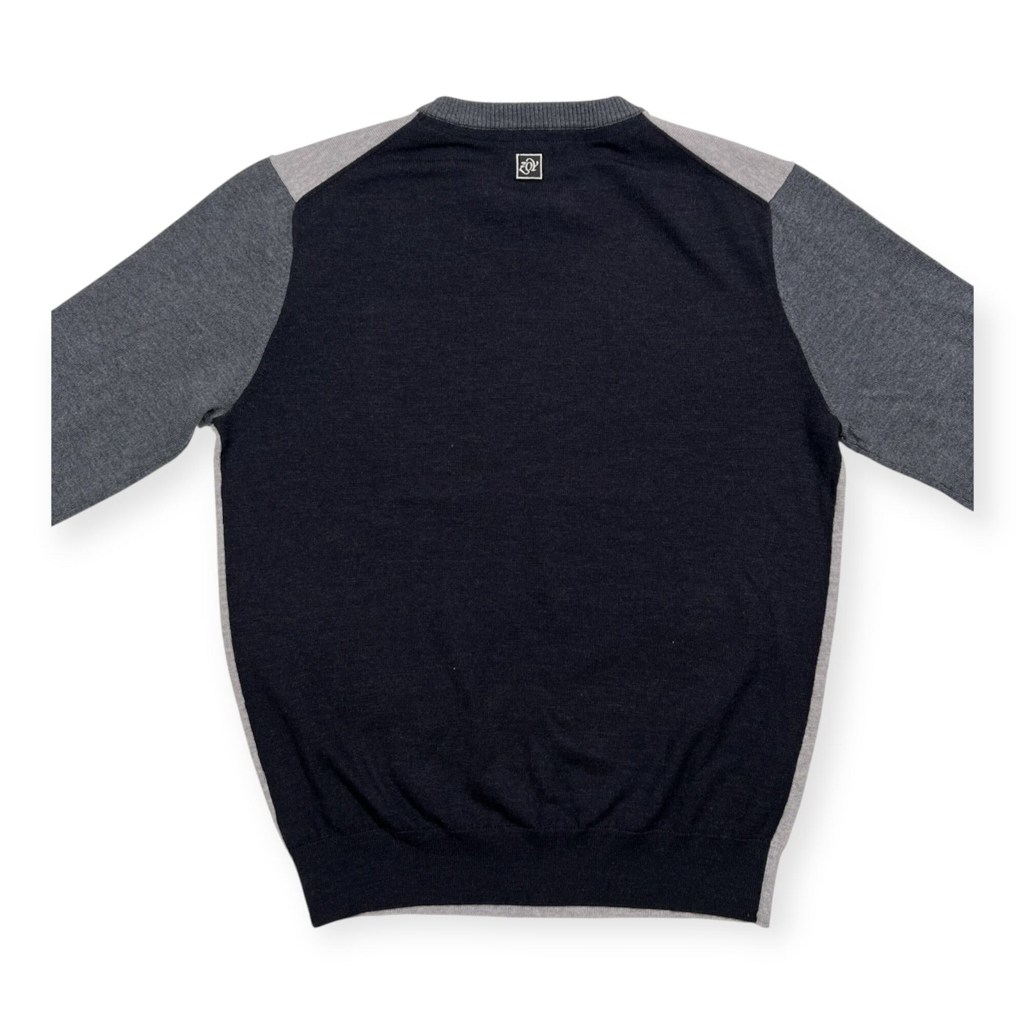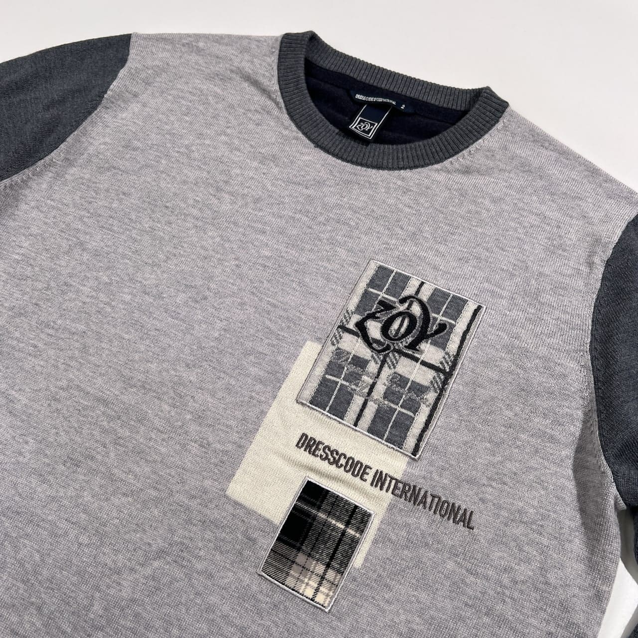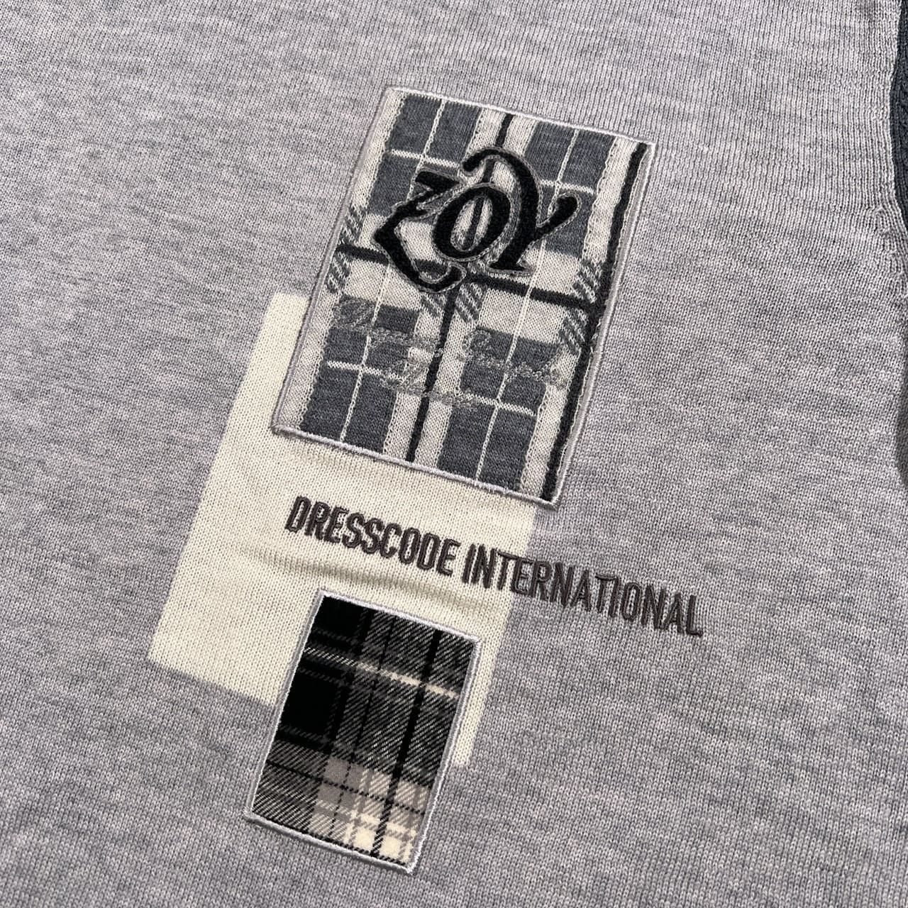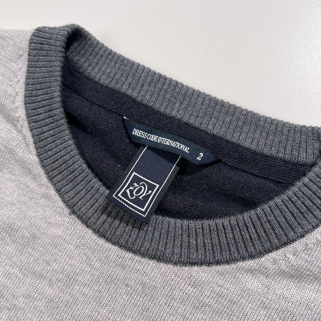 ZOY ゾーイ DRESSCODE INTERNATIONAL 羊毛100% 切替 ウールニットセーター 2 /グレー系 ロゴパッチ 刺繍 ゴルフ ウェア/薄手