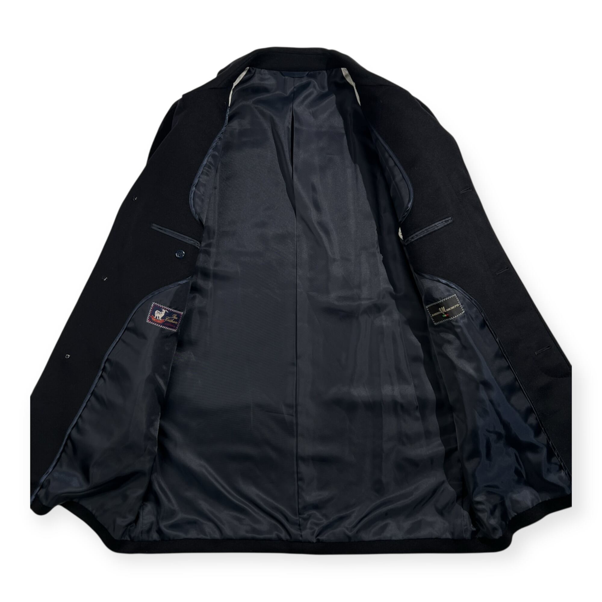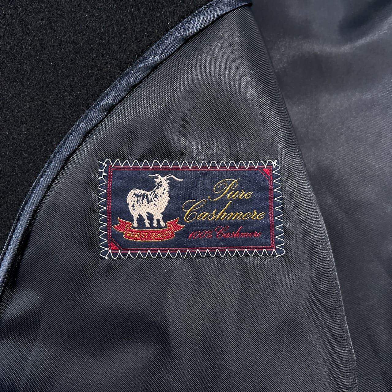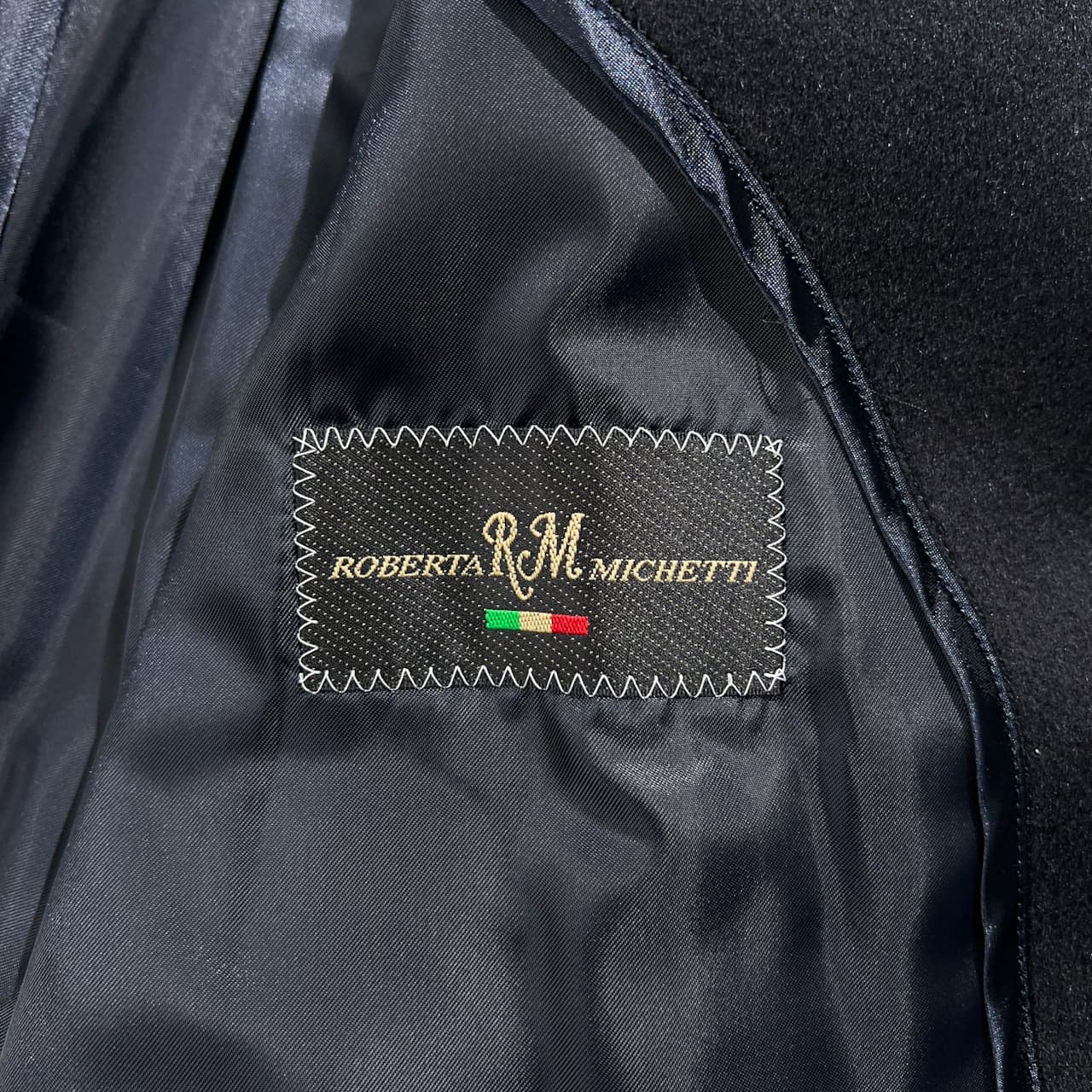 カシミヤ100% ROBERTA MICHETTI ロベルタミケッティ ステンカラーコート LL /ブラック系 比翼仕立て 最高級素材 紳士 ビジネス フォーマル