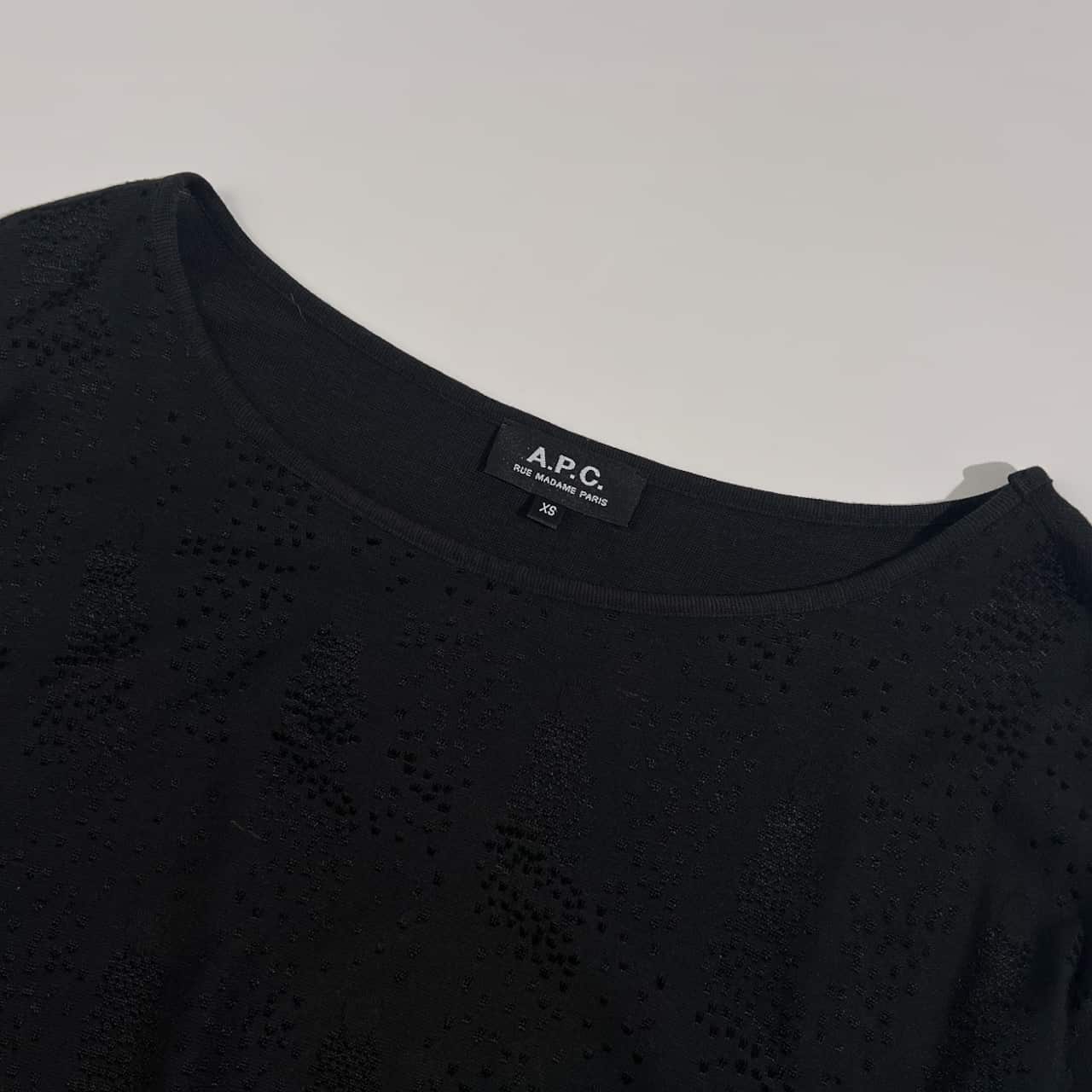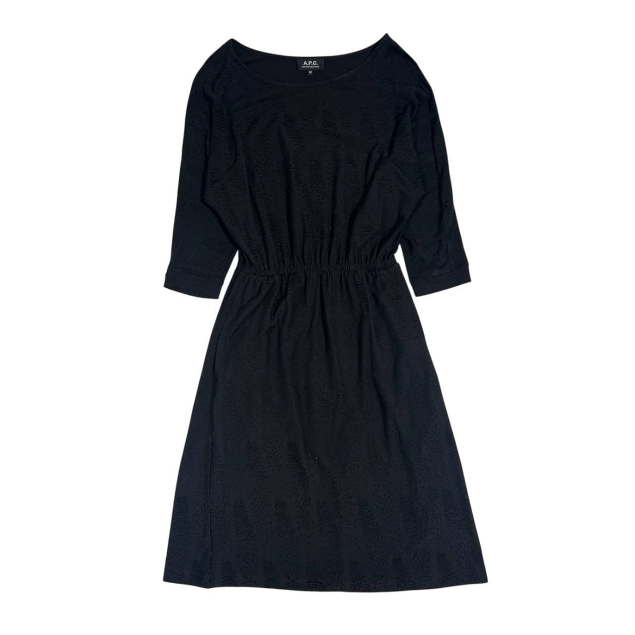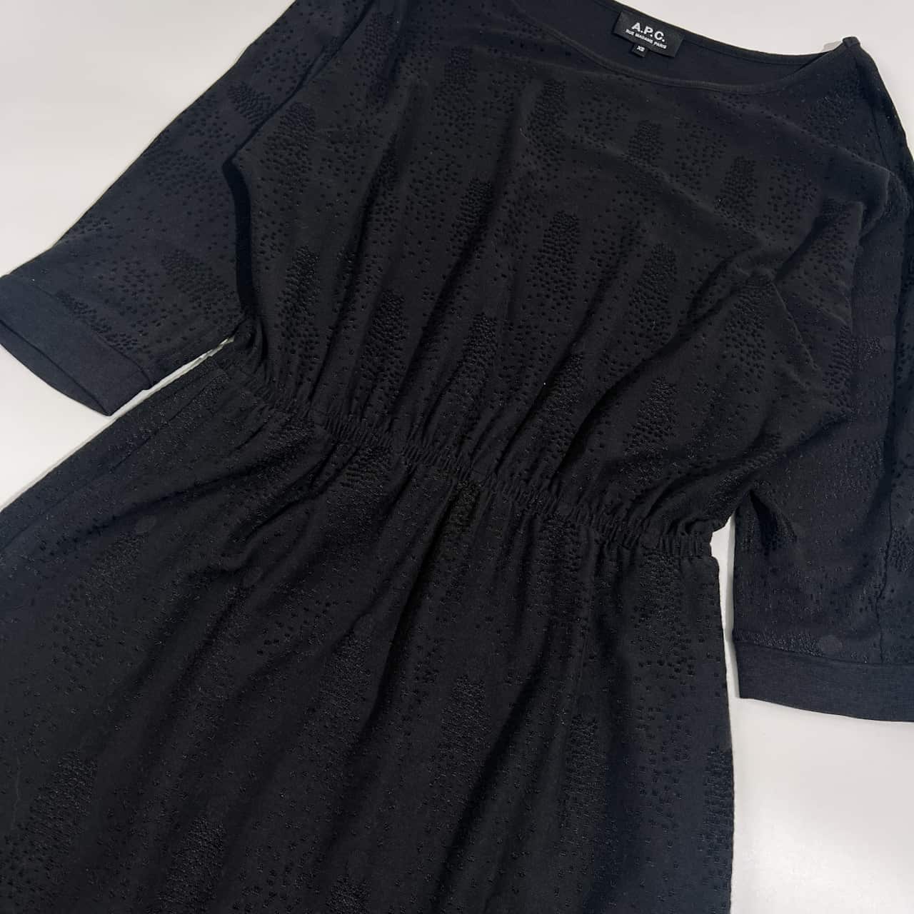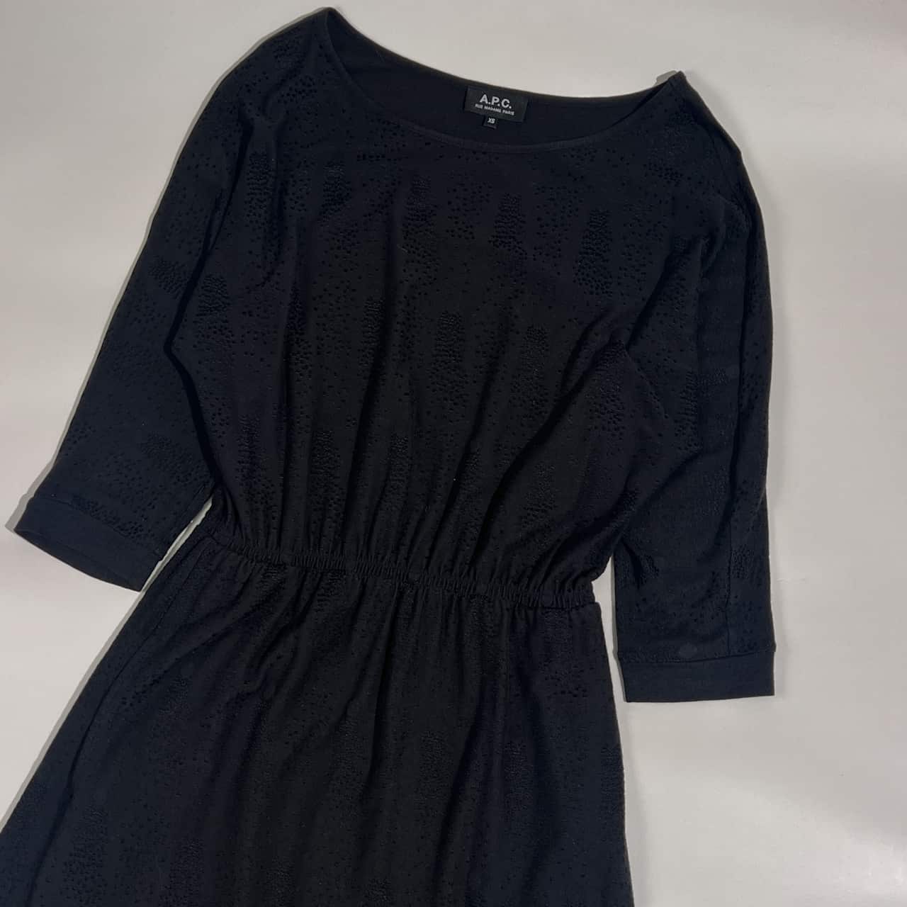 A.P.C. アーペーセー ドット風 7分袖 ウエストゴム ワンピース XS /ブラック レディース