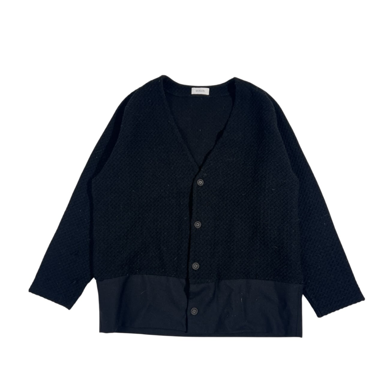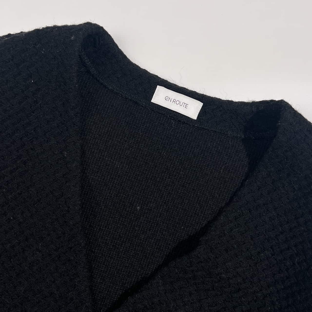 EN ROUTE アンルート 切替デザイン 総柄 Vネック 前開き ニット カーディガン 3/ブラック系 レディース ユナイテッドアローズ