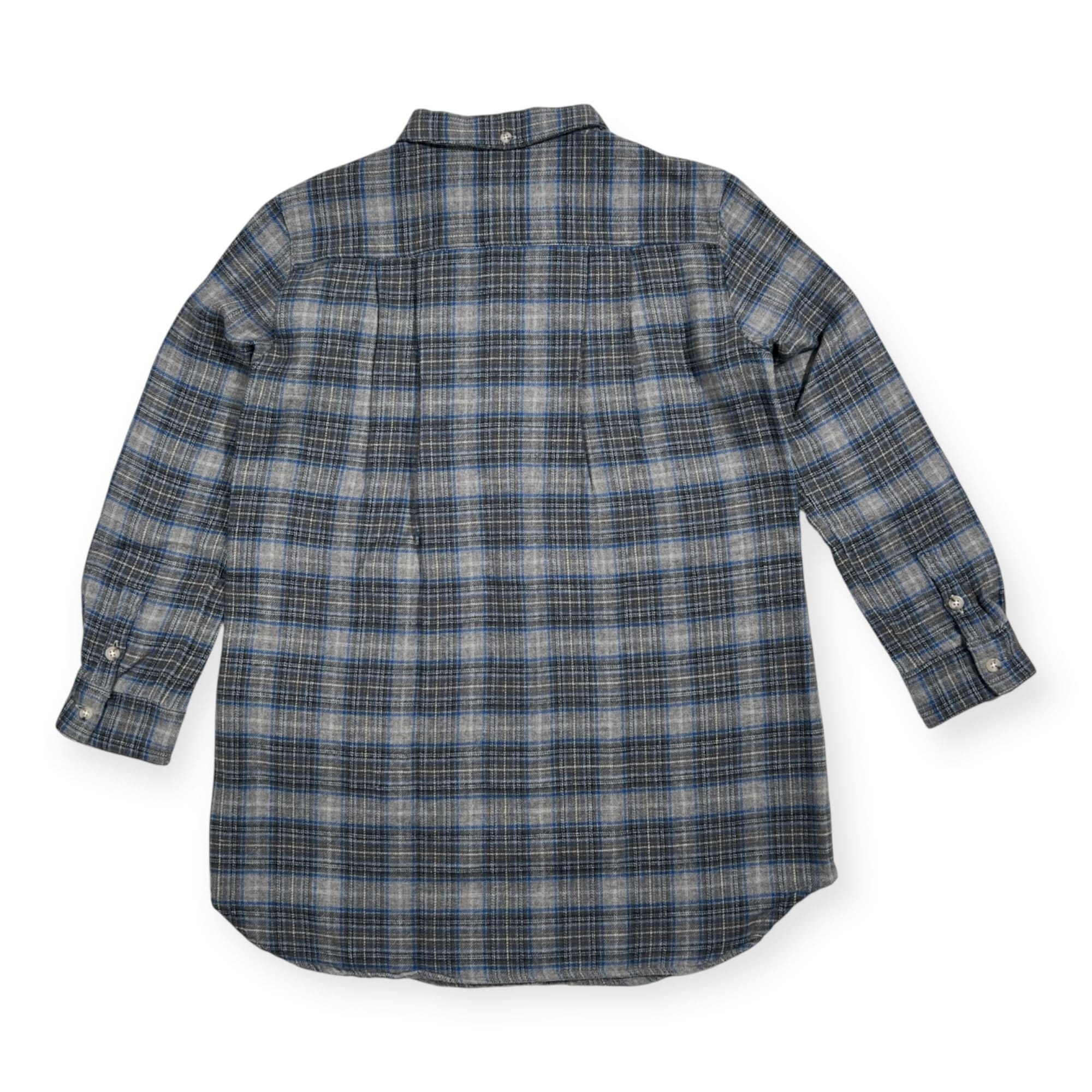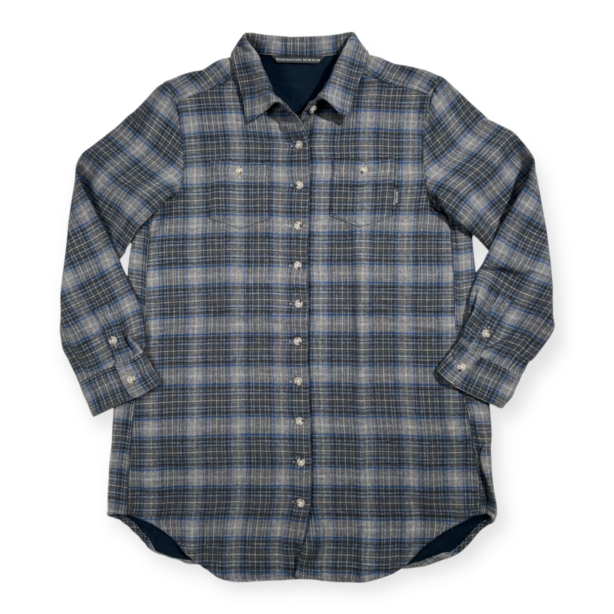美品 Mademoiselle NON NON マドモアゼルノンノン チェック柄 長袖 ロング ネルシャツ チュニック サイズ 38 M /グレー×ブルー/パパス/日本製