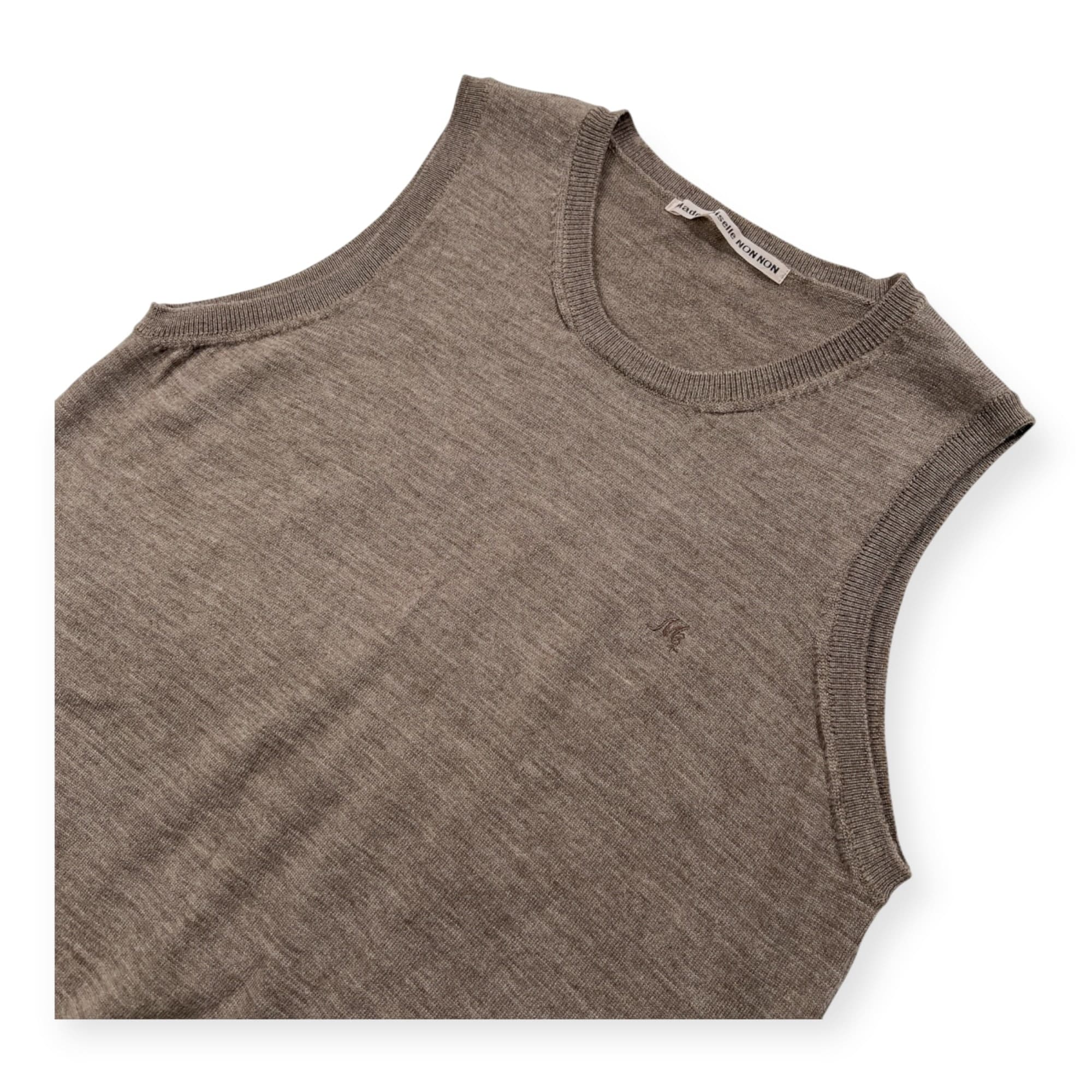 美品 Mademoiselle NON NON マドモアゼルノンノン ハイゲージ ウールニット ベスト サイズ L /ベージュ系/パパス/日本製