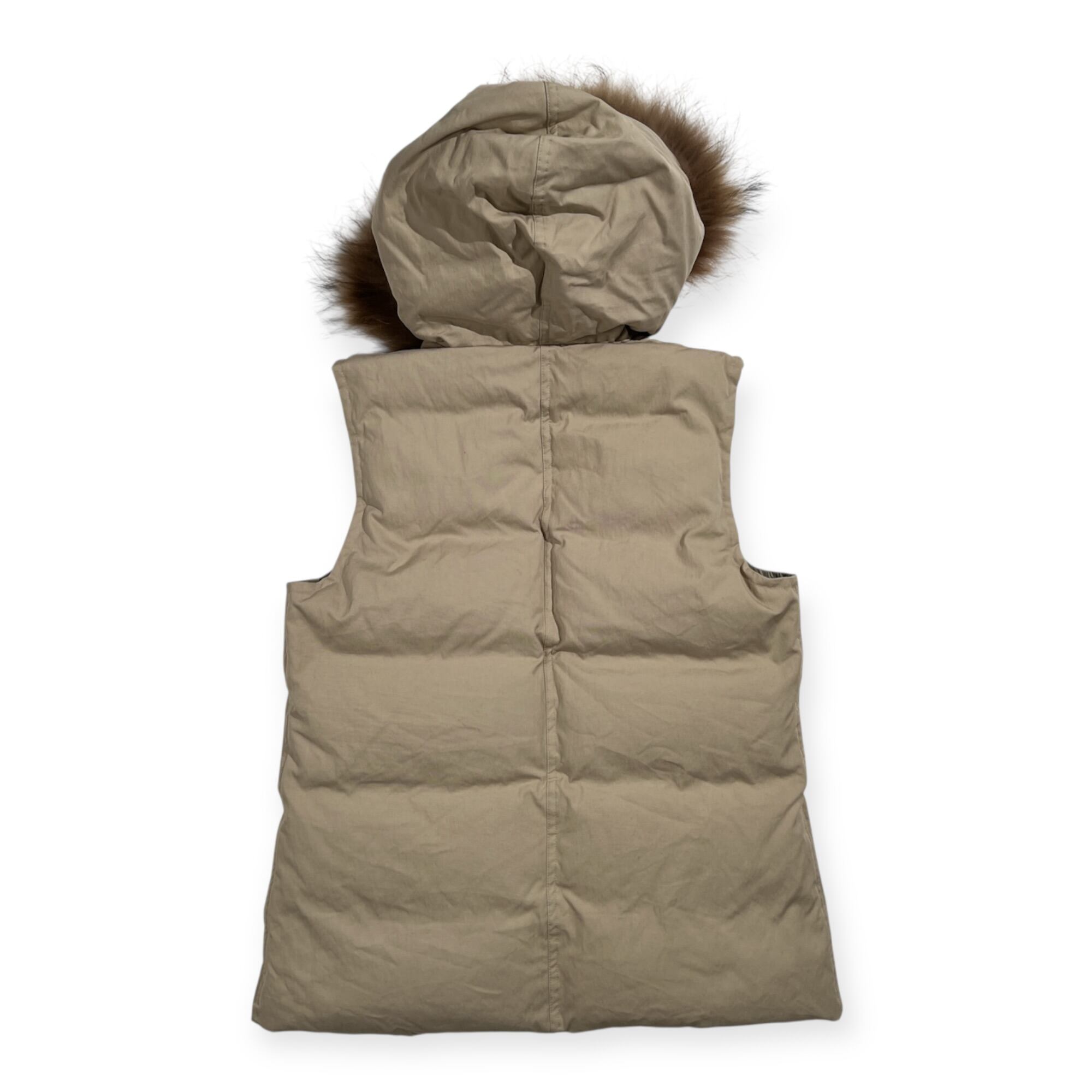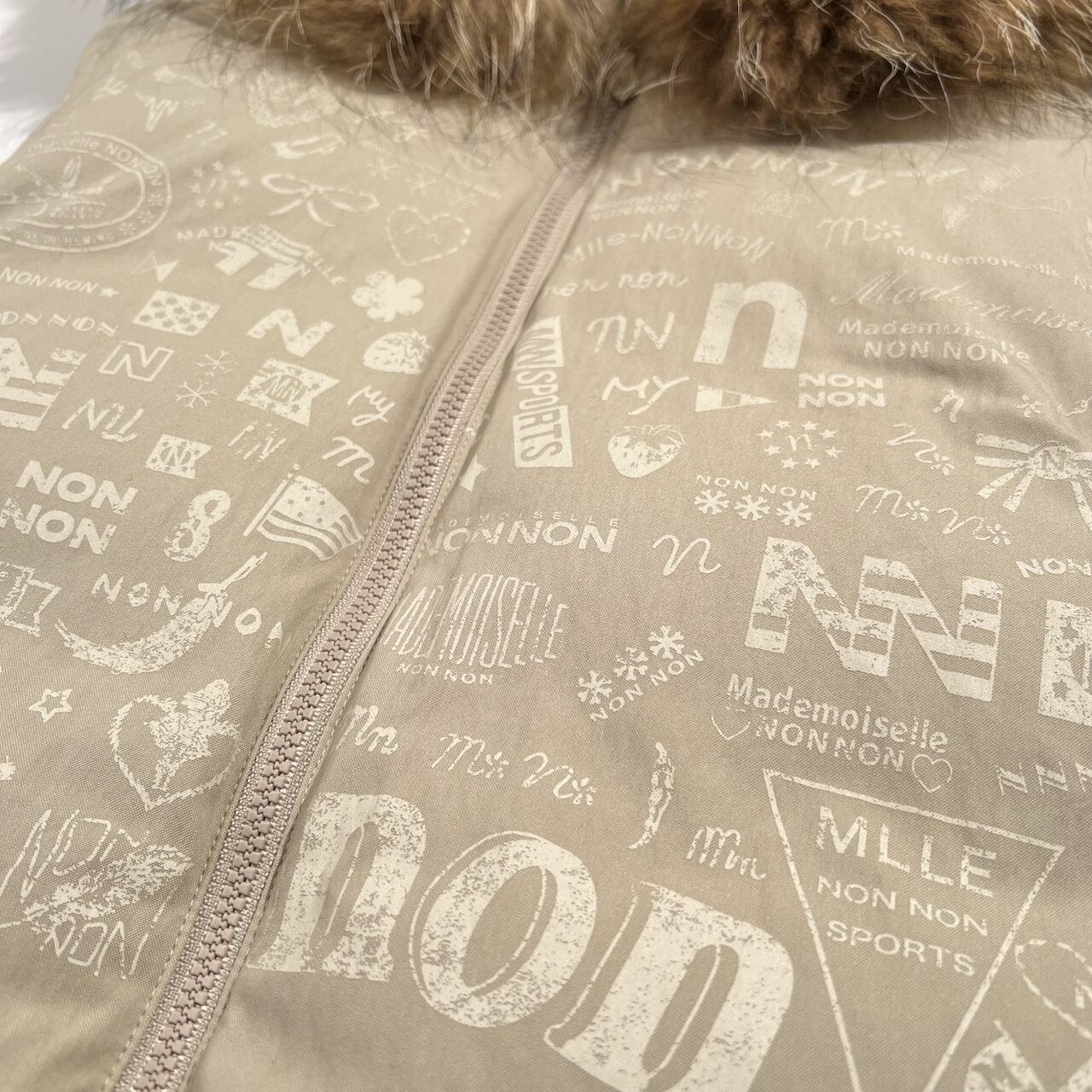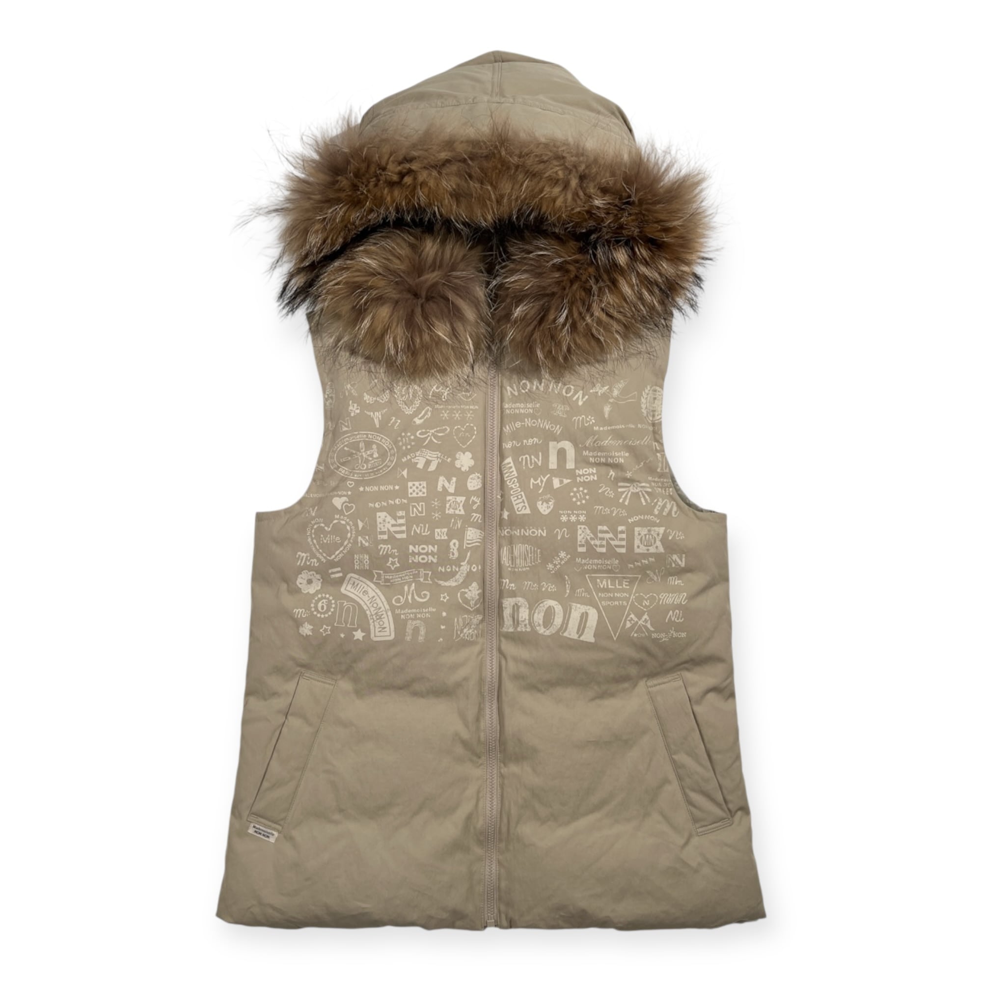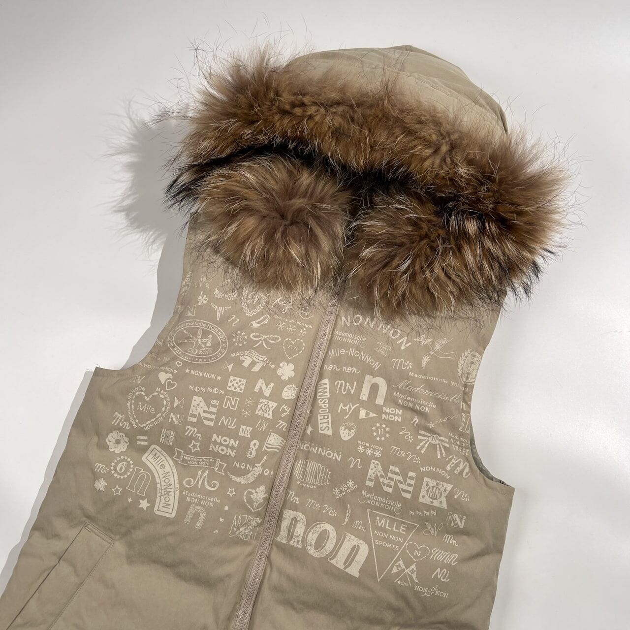 美品 Mademoiselle NON NON マドモアゼルノンノン 毛皮ファー ダウンベスト プリント入り サイズ 38 M /ベージュ系/パパス/日本製