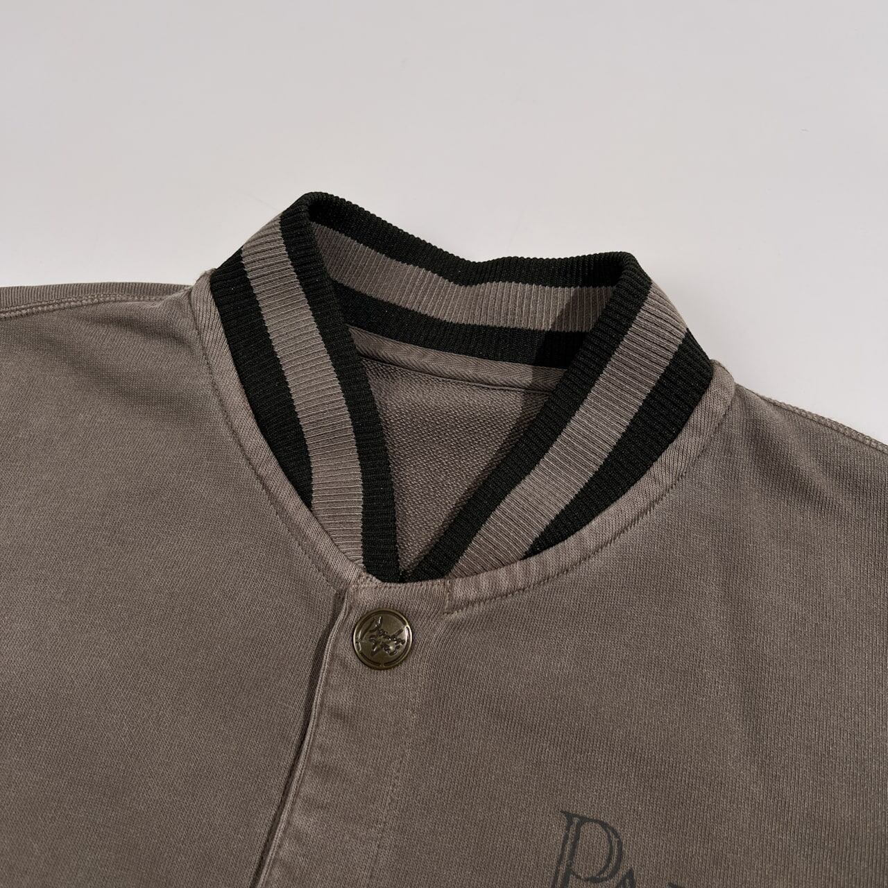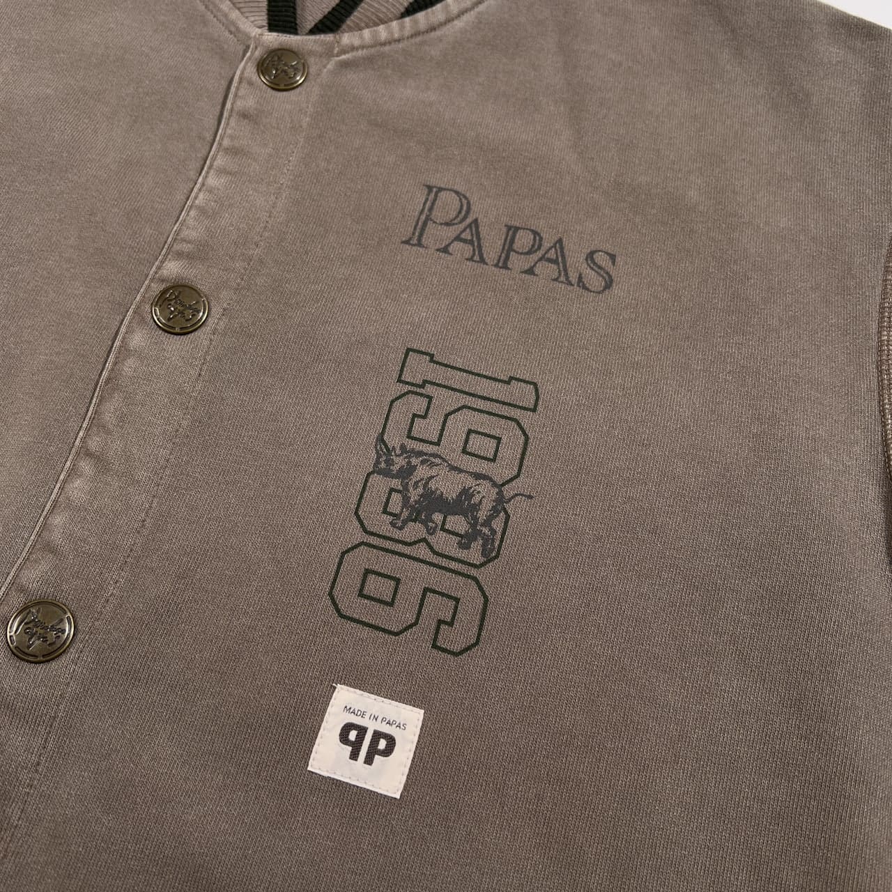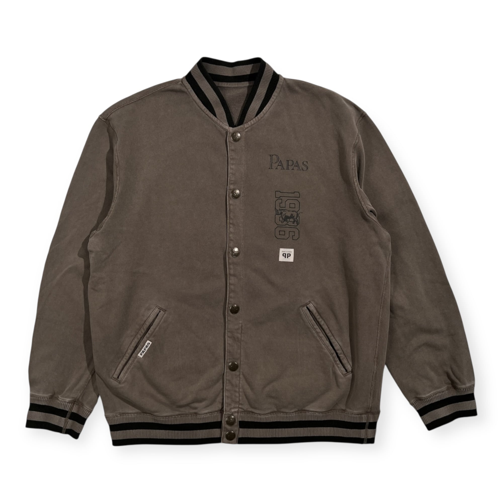 PAPAS パパス ロゴプリント 洗い加工 ライトコットン ジャケット スタジャン風 サイズ 48 M /グリーングレー系/メンズ/日本製
