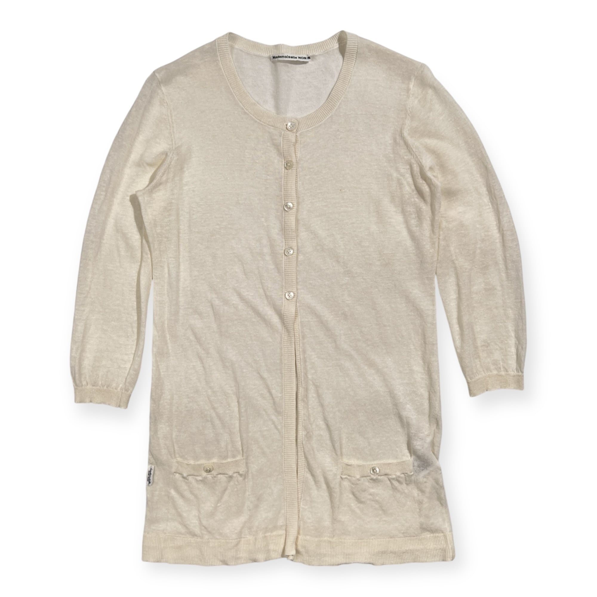 Mademoiselle NON NON マドモアゼルノンノン ロング リネン ニット カーディガン サイズ 38 M /ホワイト/サマーニット/麻素材