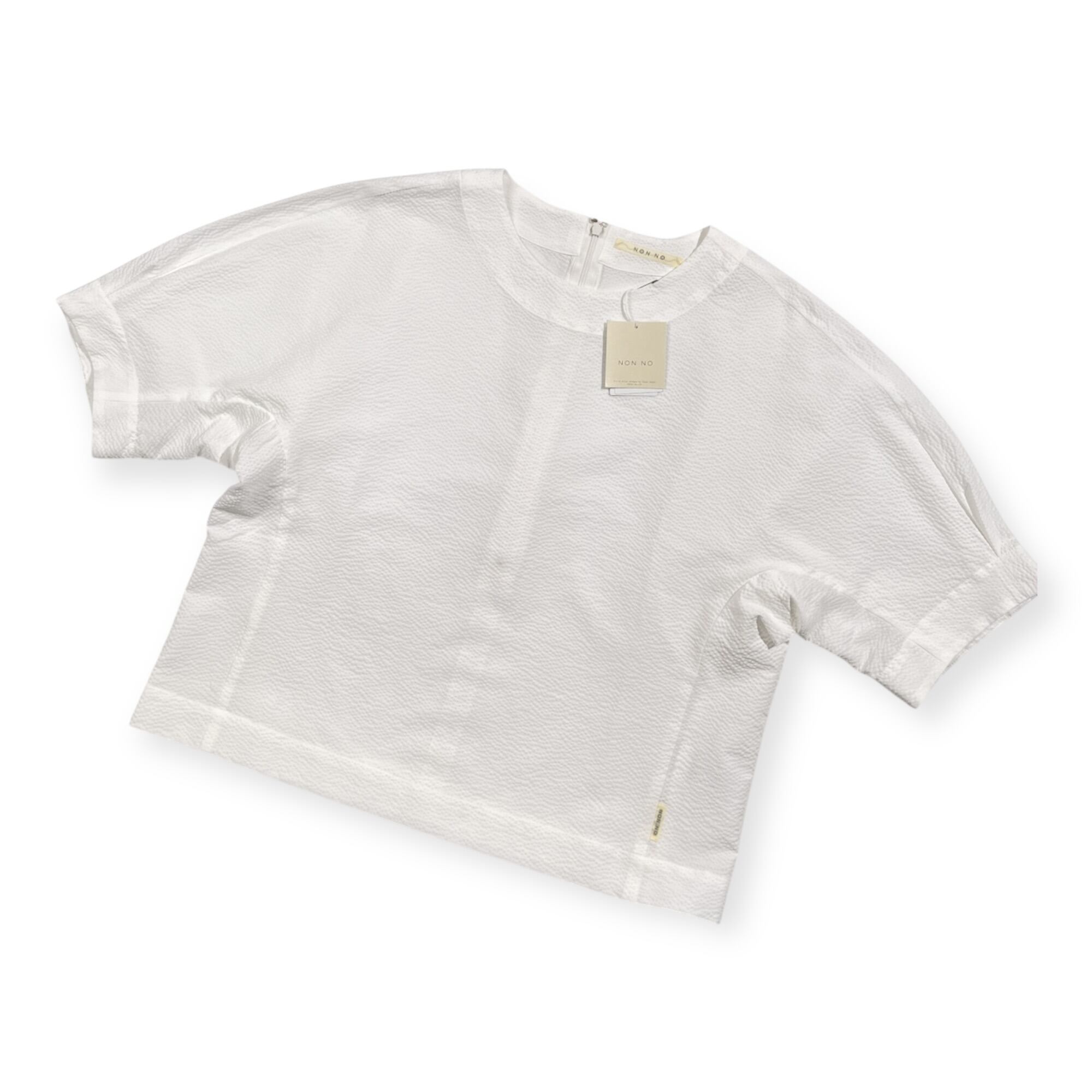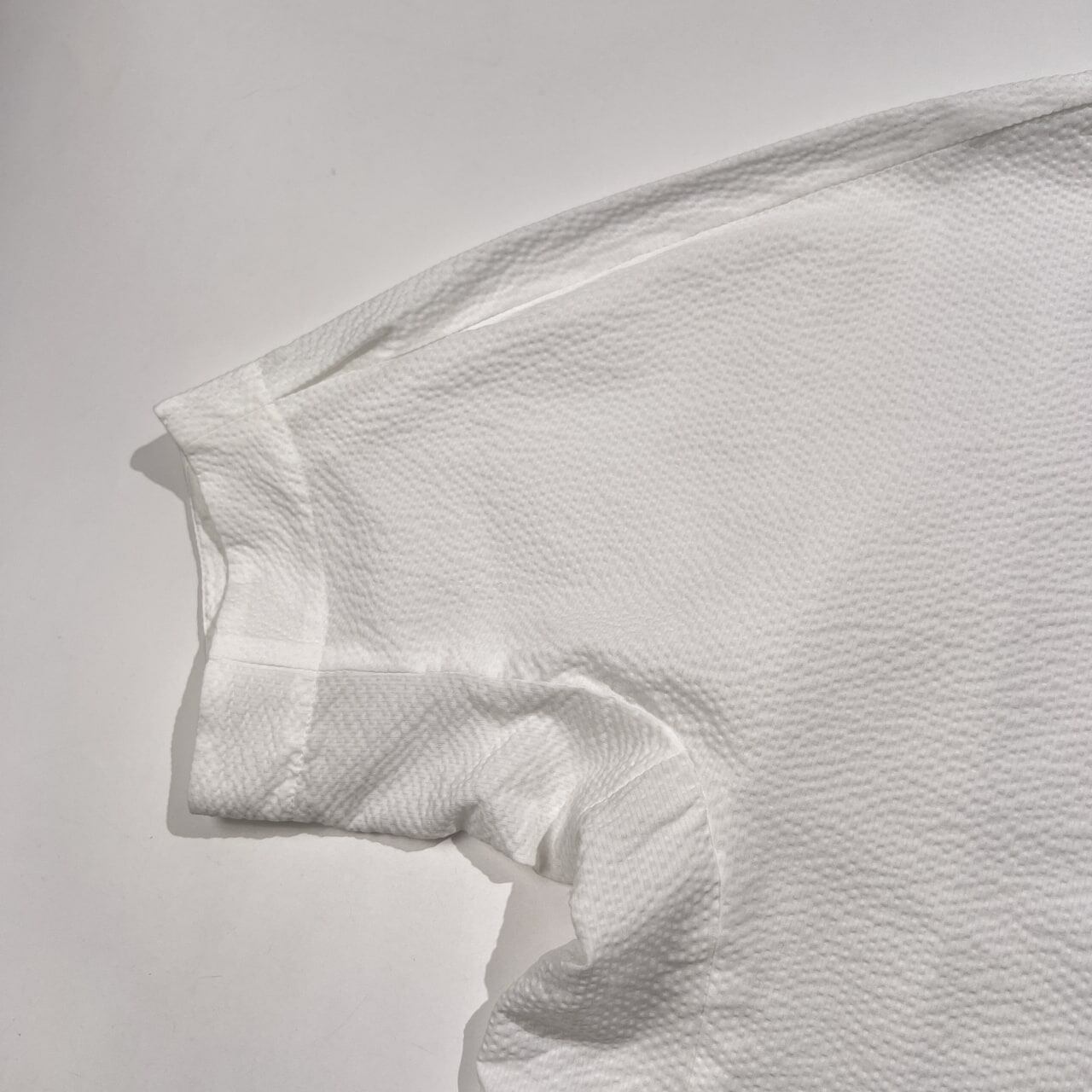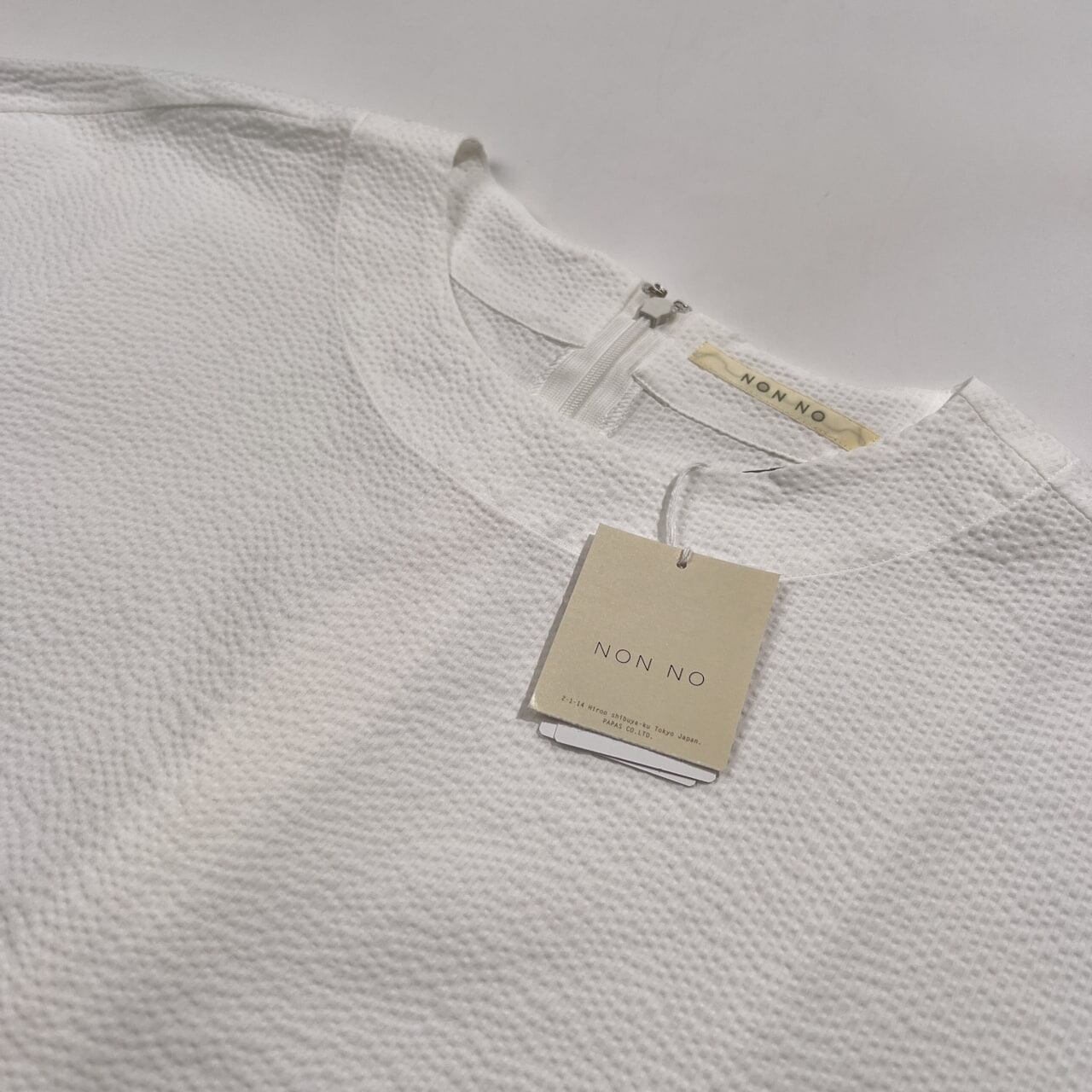 タグ付き 未使用品 Mademoiselle NON NON マドモアゼルノンノン シアサッカー 半袖 プルオーバー シャツ /ホワイト/日本製