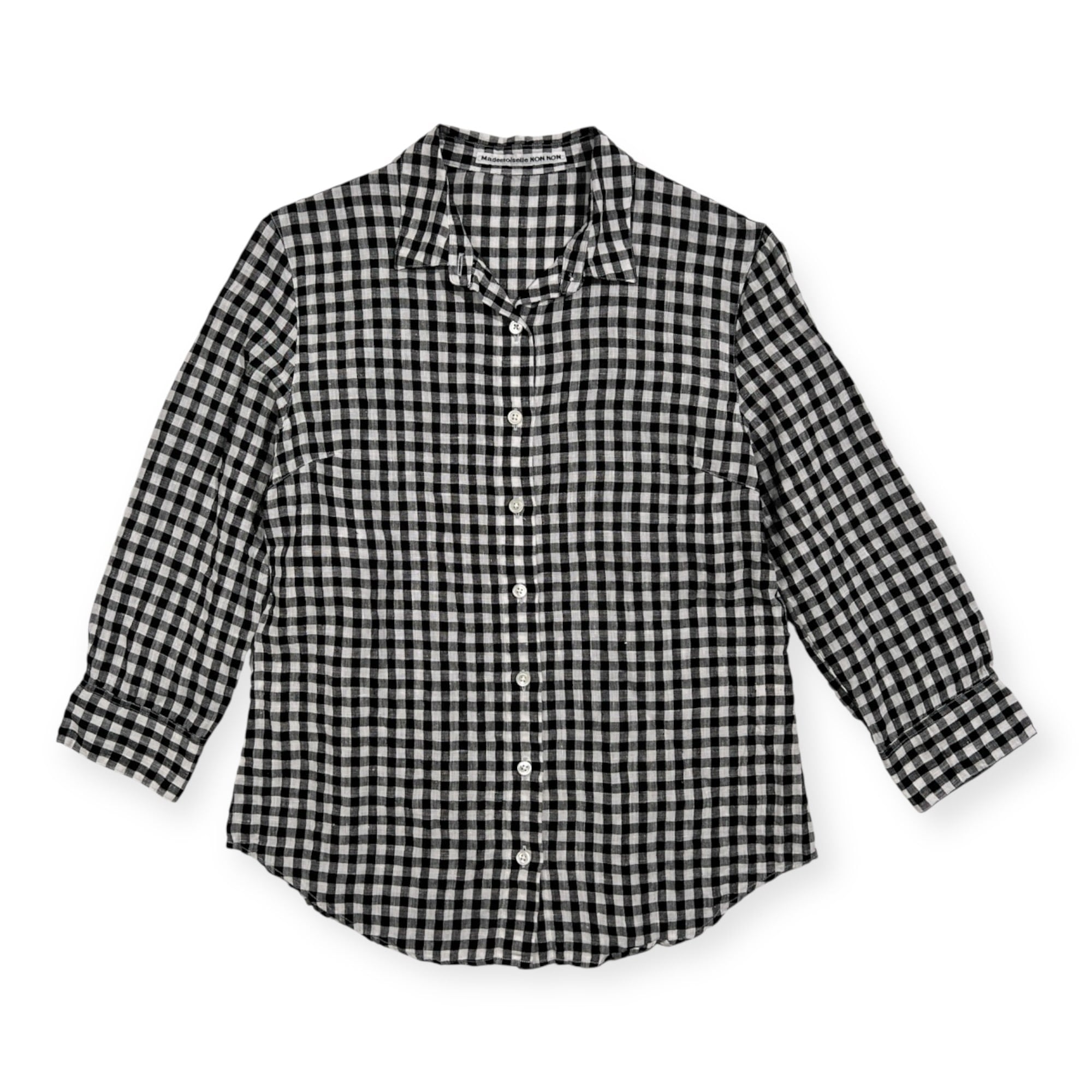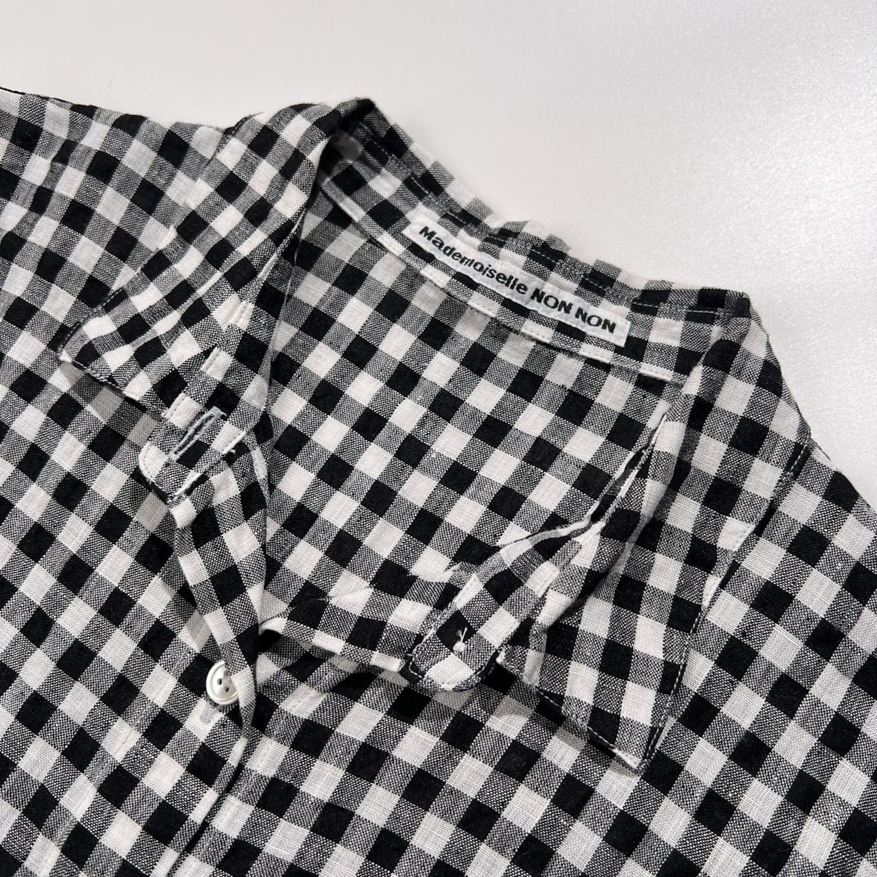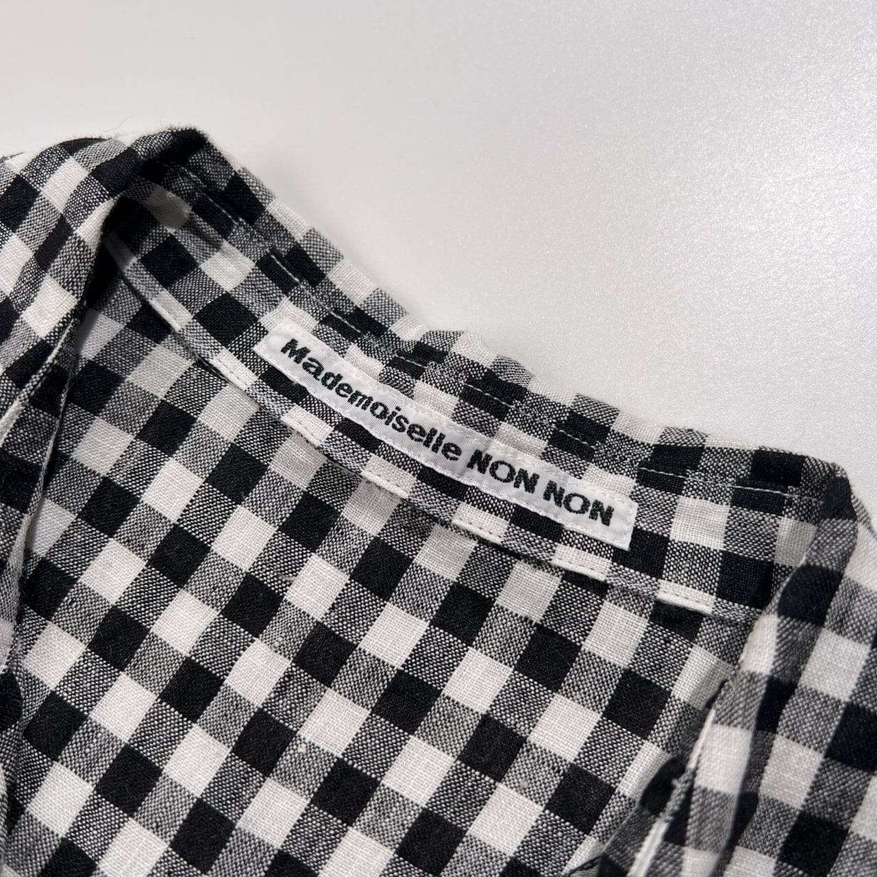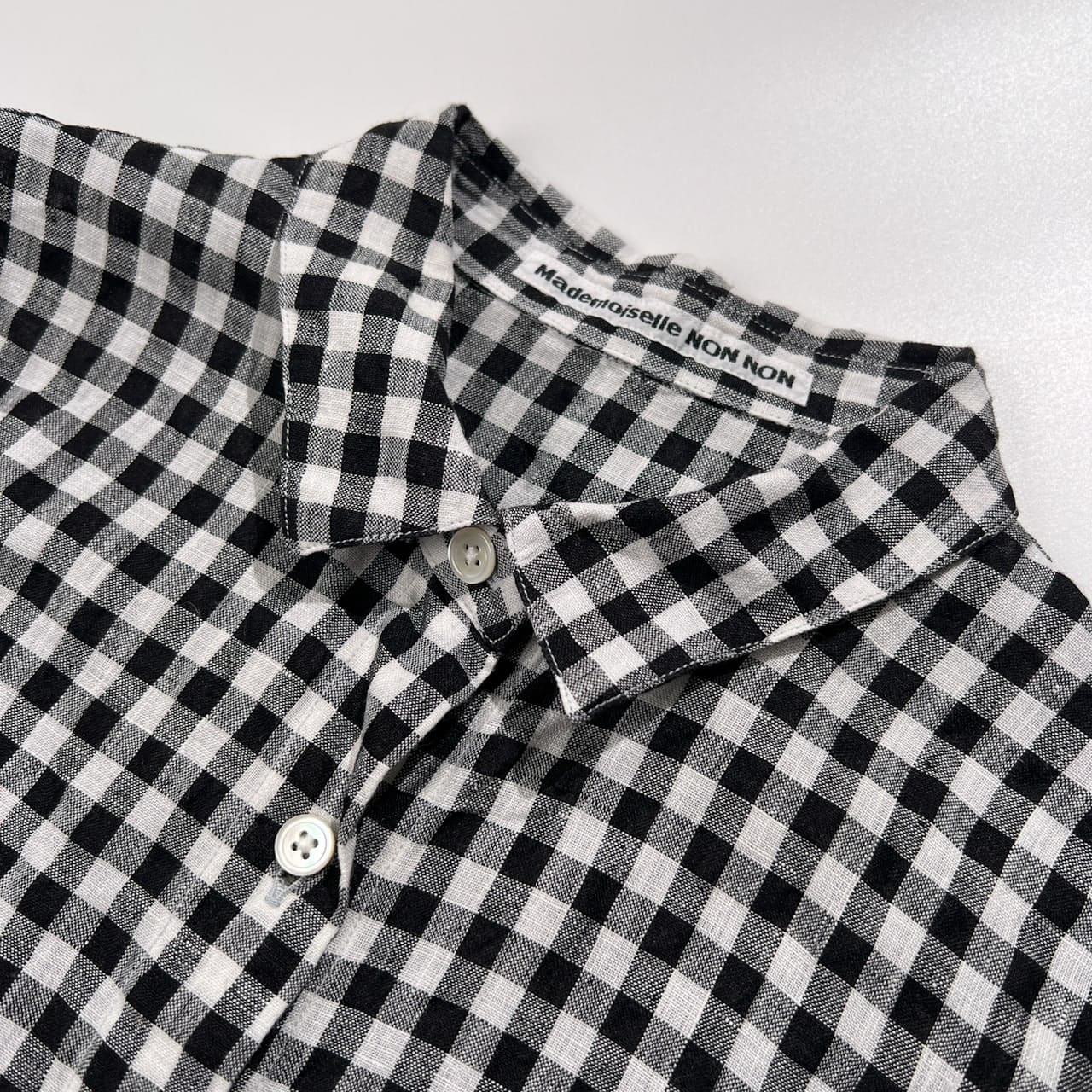 麻100% Mademoiselle NON NON マドモアゼルノンノン ギンガムチェック 七分袖 リネン シャツ サイズ 38 M /ホワイト×ブラック