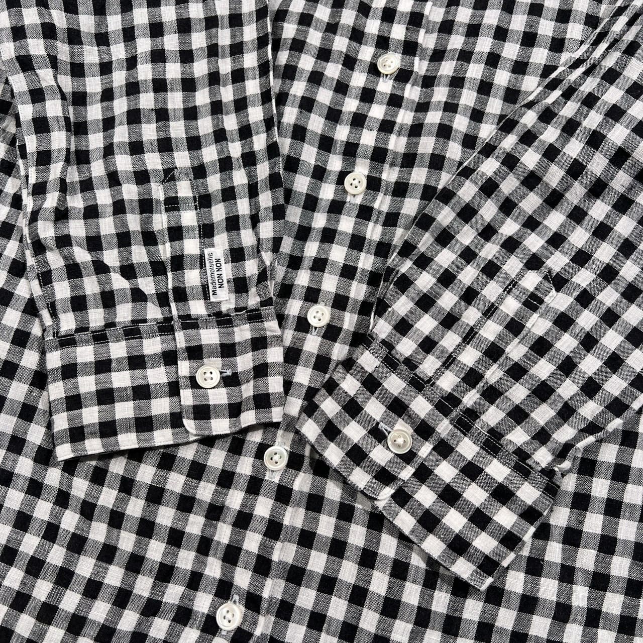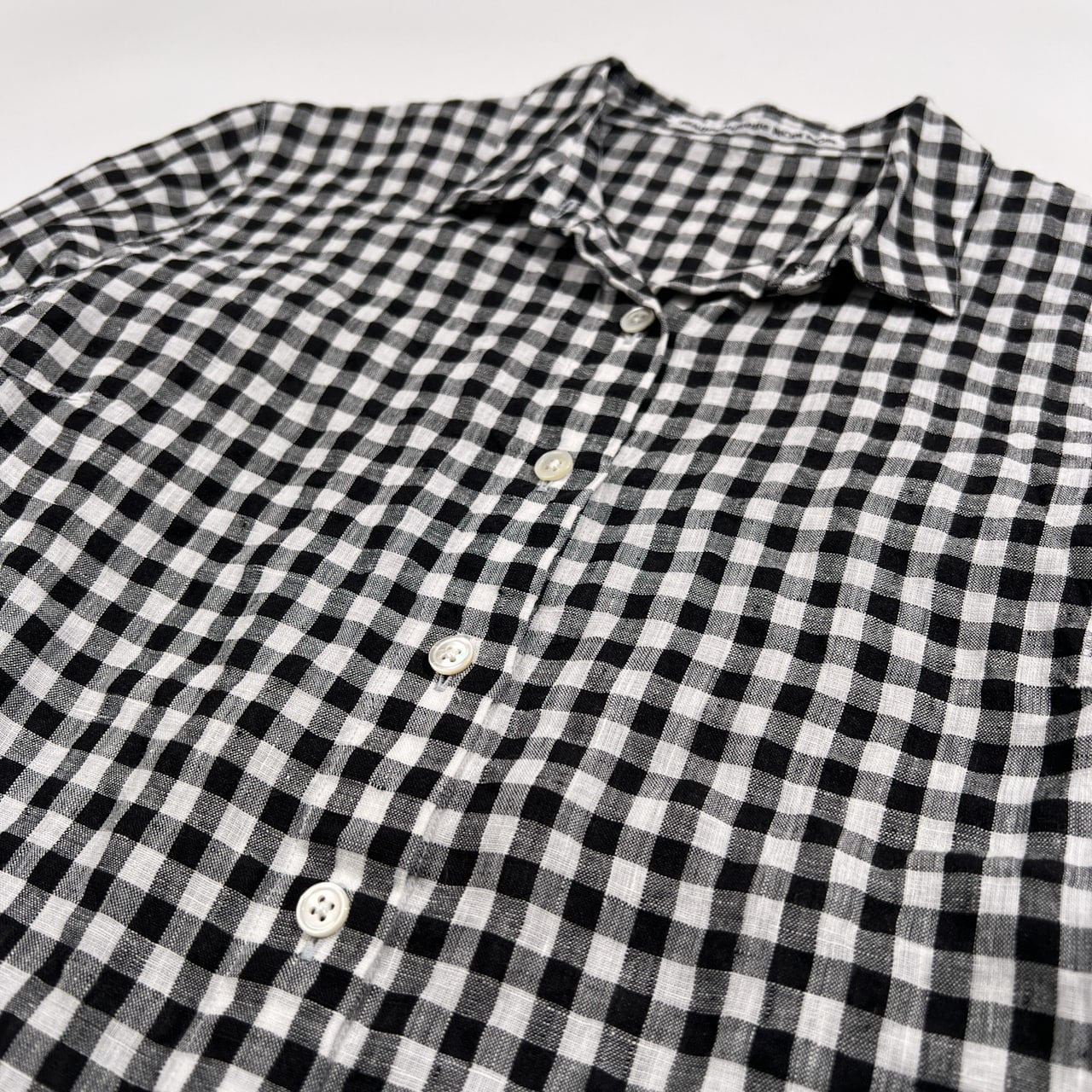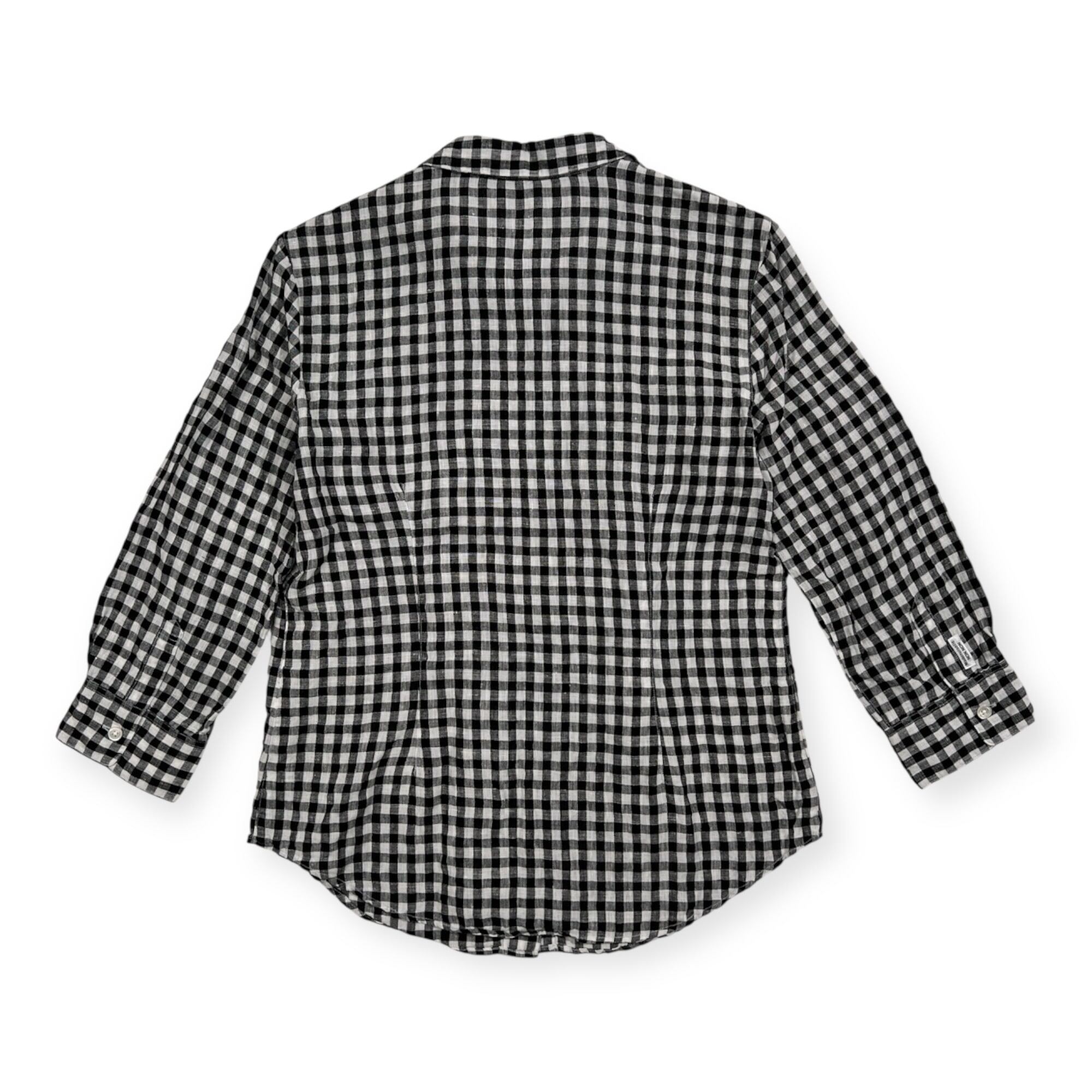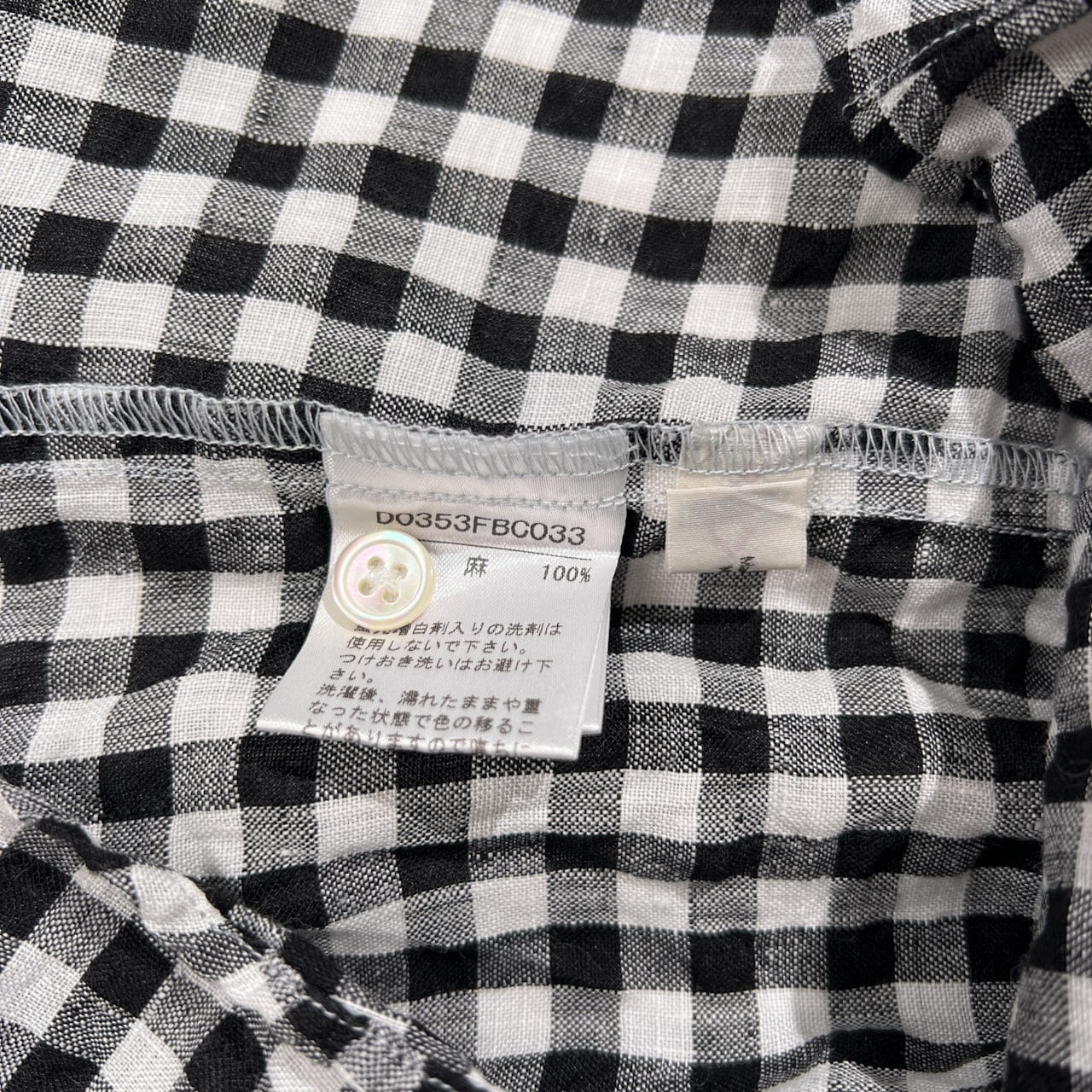 麻100% Mademoiselle NON NON マドモアゼルノンノン ギンガムチェック 七分袖 リネン シャツ サイズ 38 M /ホワイト×ブラック