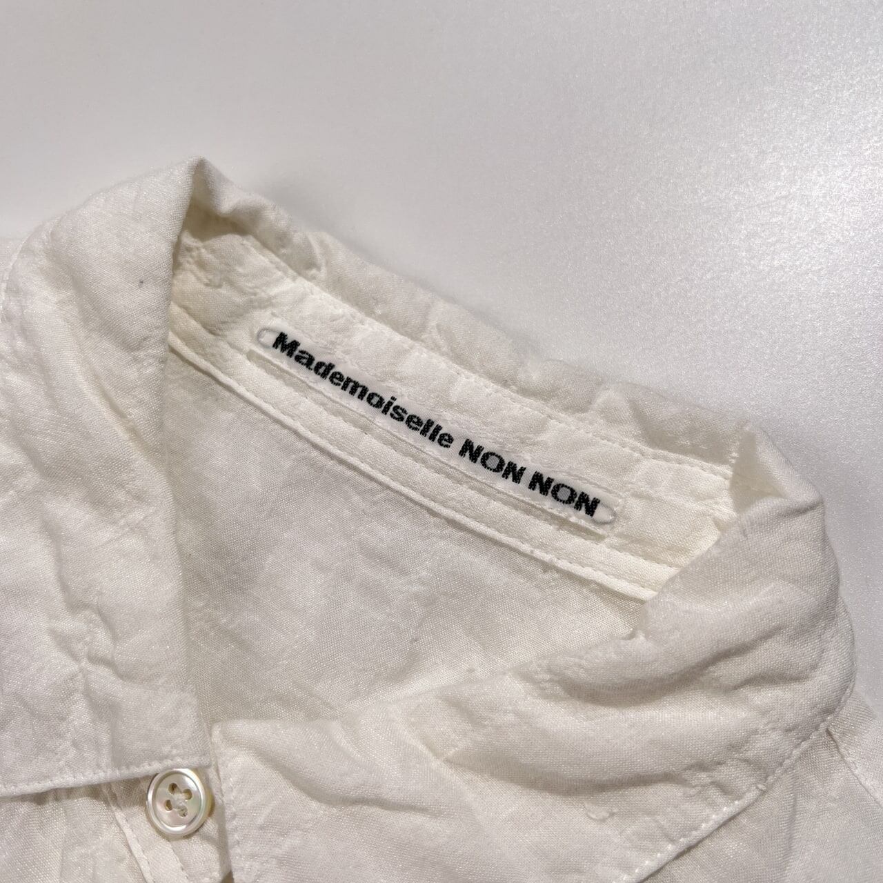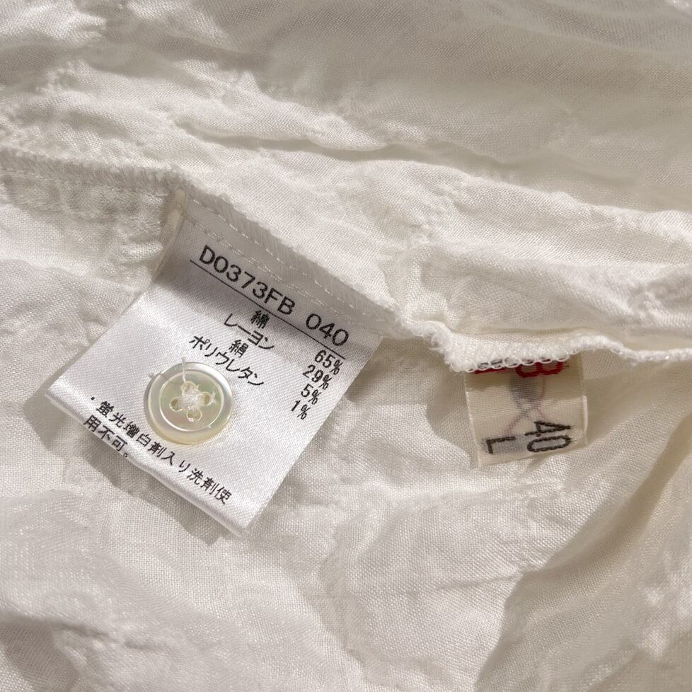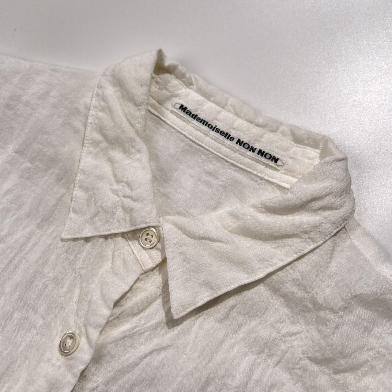 Mademoiselle NON NON マドモアゼルノンノン シアサッカー風 七分袖 コットン シャツ ブラウス 38 M /シルク&レーヨン混/ホワイト