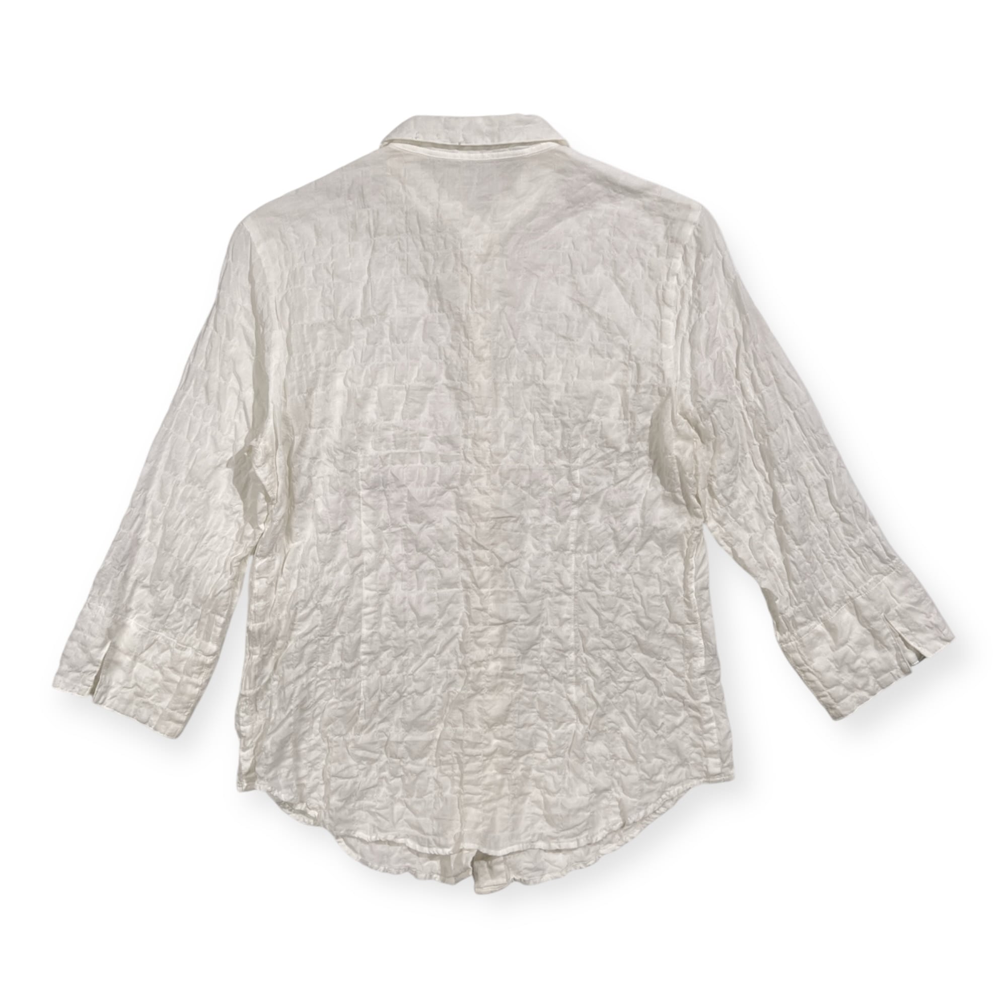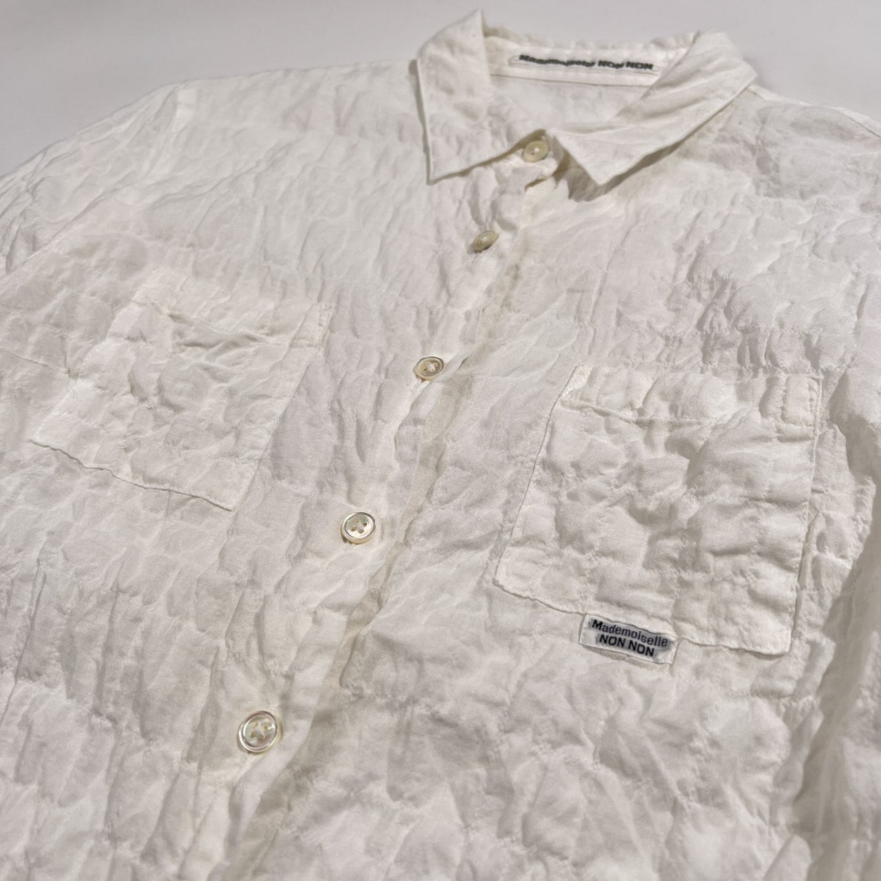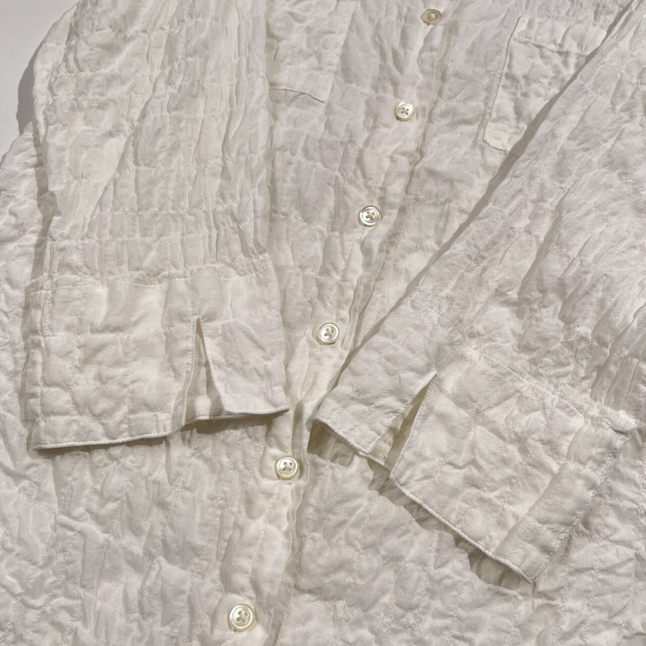 Mademoiselle NON NON マドモアゼルノンノン シアサッカー風 七分袖 コットン シャツ ブラウス 38 M /シルク&レーヨン混/ホワイト