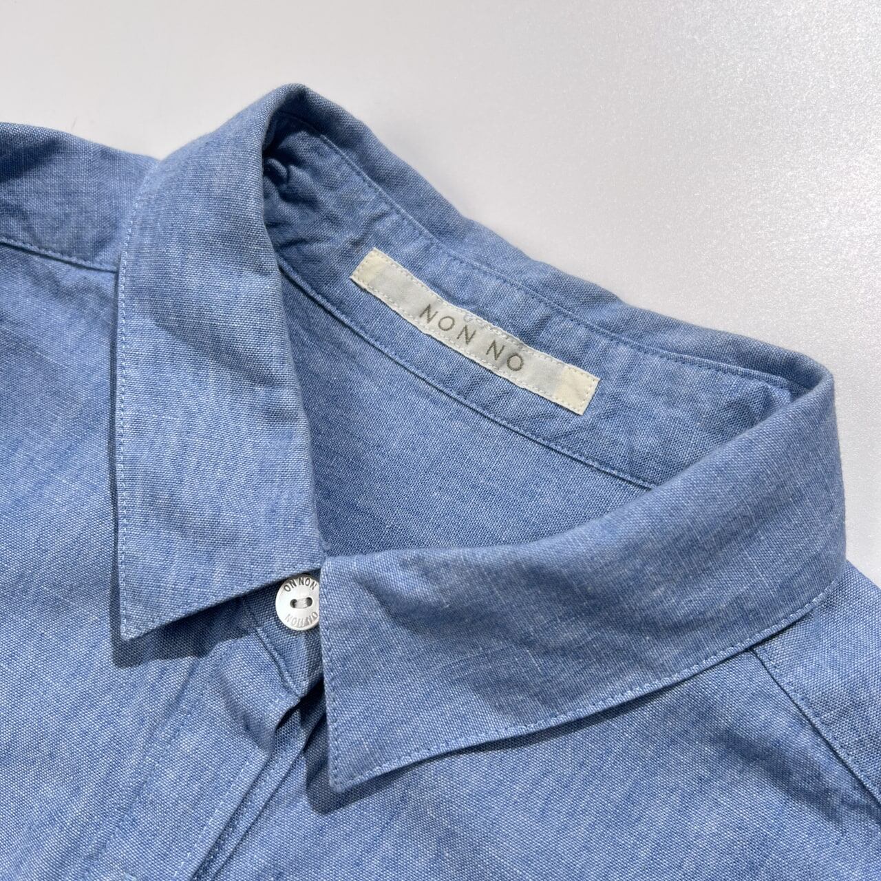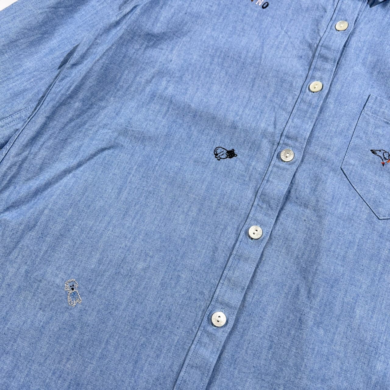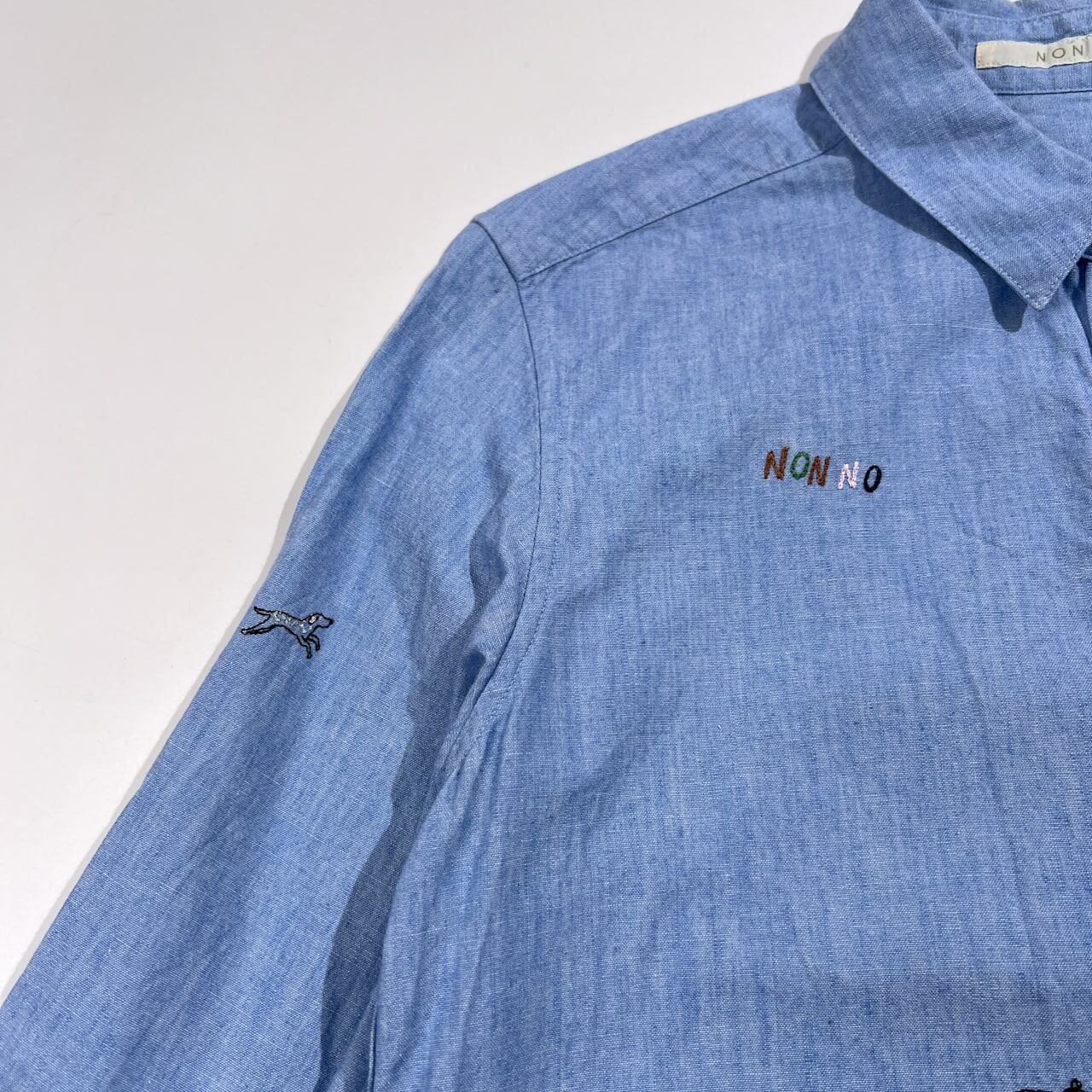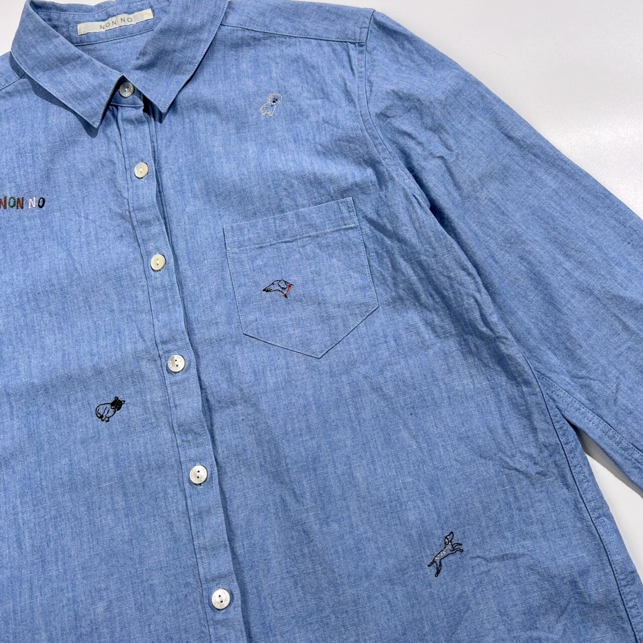 Mademoiselle NON NON マドモアゼルノンノン ドッグ刺繍 七分袖 シャンブレー シャツ ブラウス サイズ M /水色ブルー系/犬刺繍