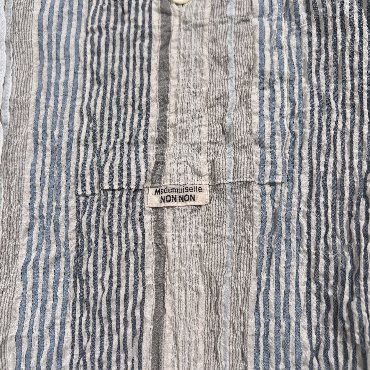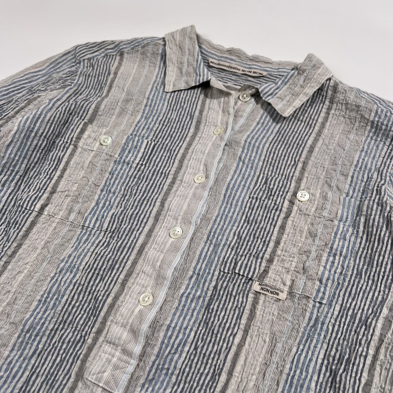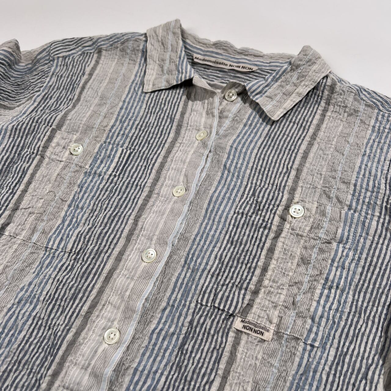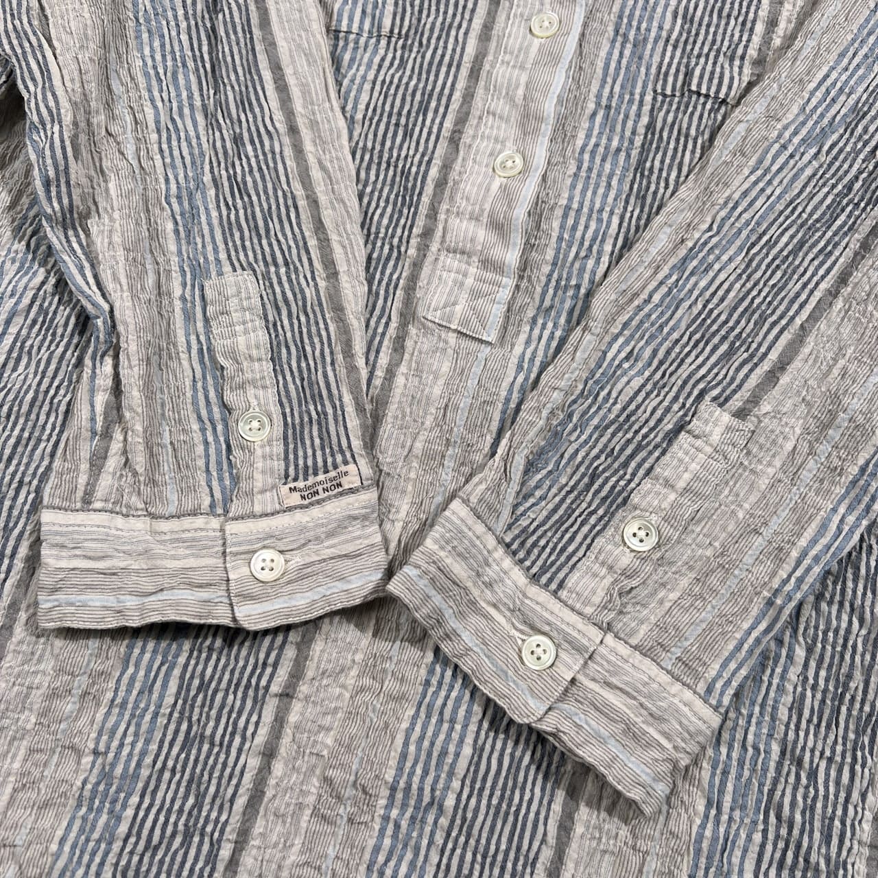 Mademoiselle NON NON マドモアゼルノンノン ストライプ柄 七分袖 チュニック プルオーバー シャツ サイズ 38 M /グレー系×ブルーネイビー系
