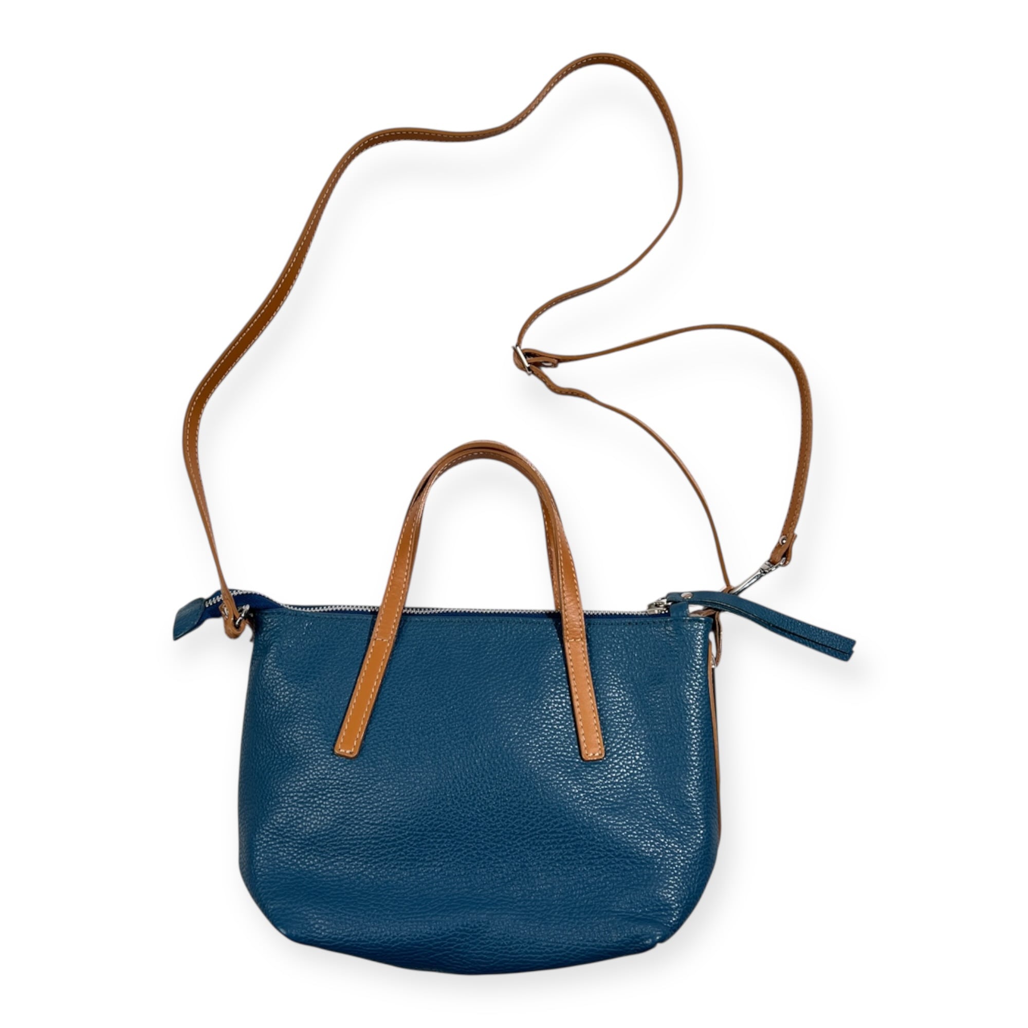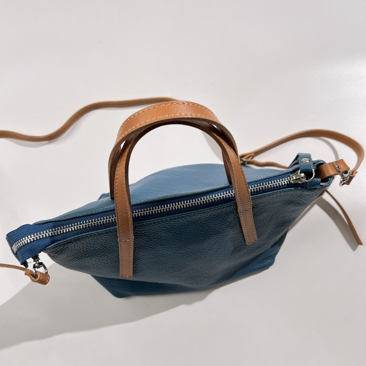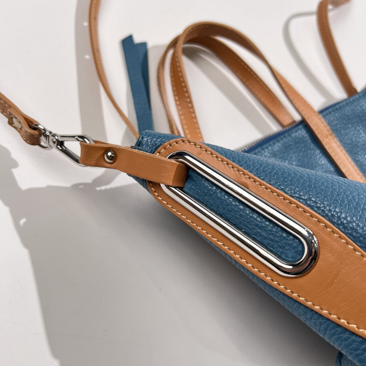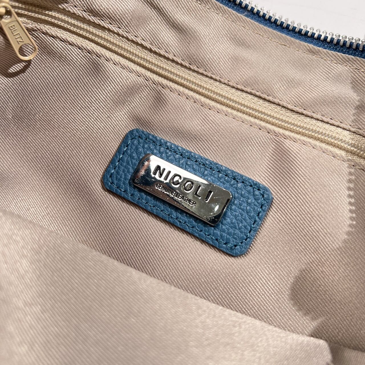 NICOLI ニコリ 2way 本革 レザー ショルダーバッグ & ハンドバッグ /鞄/カバン/ブルー系×キャメル系