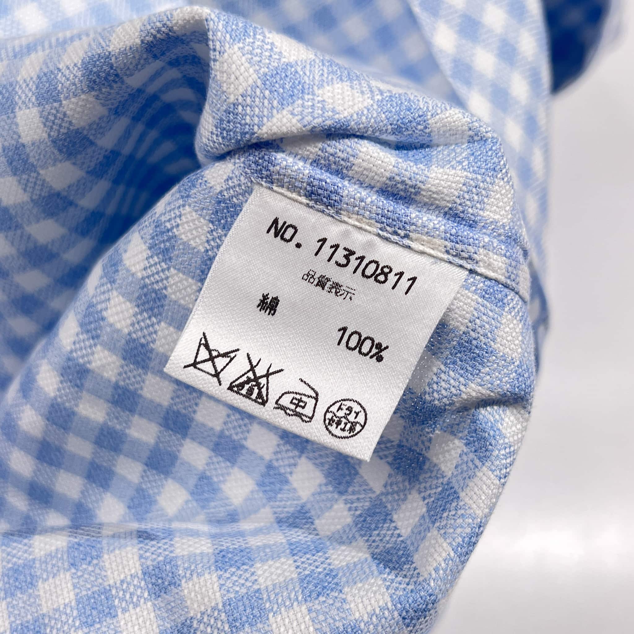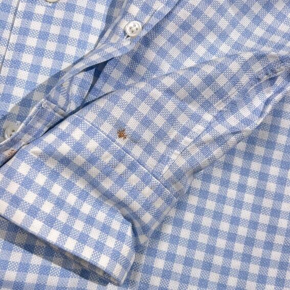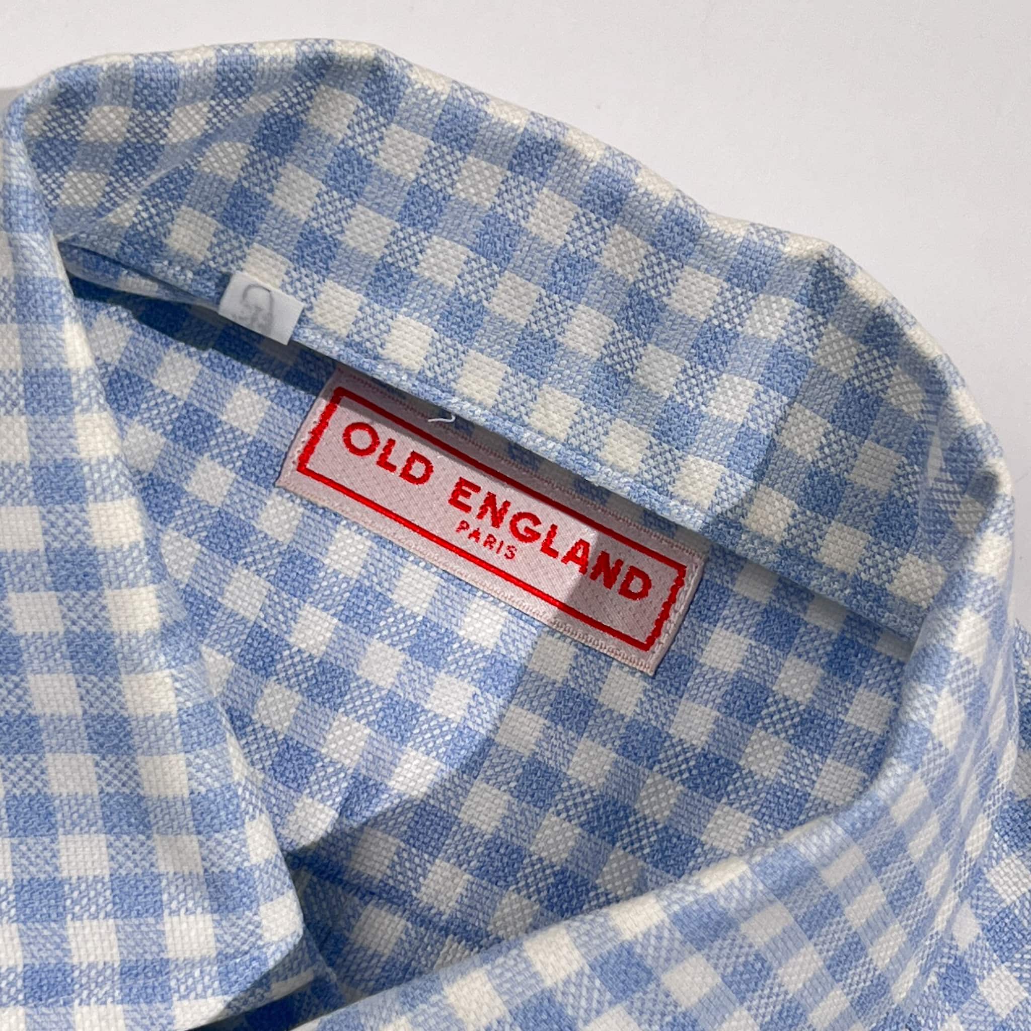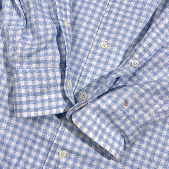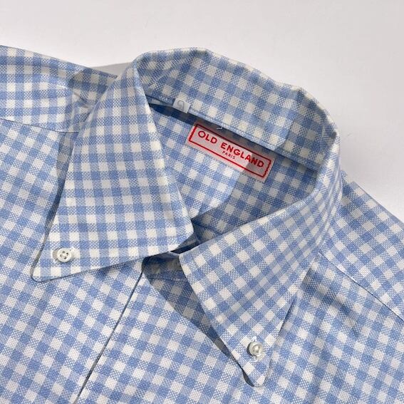 OLD ENGLAND オールドイングランド ギンガムチェック柄 BD ボタンダウン 長袖シャツ 38/水色系 メンズ