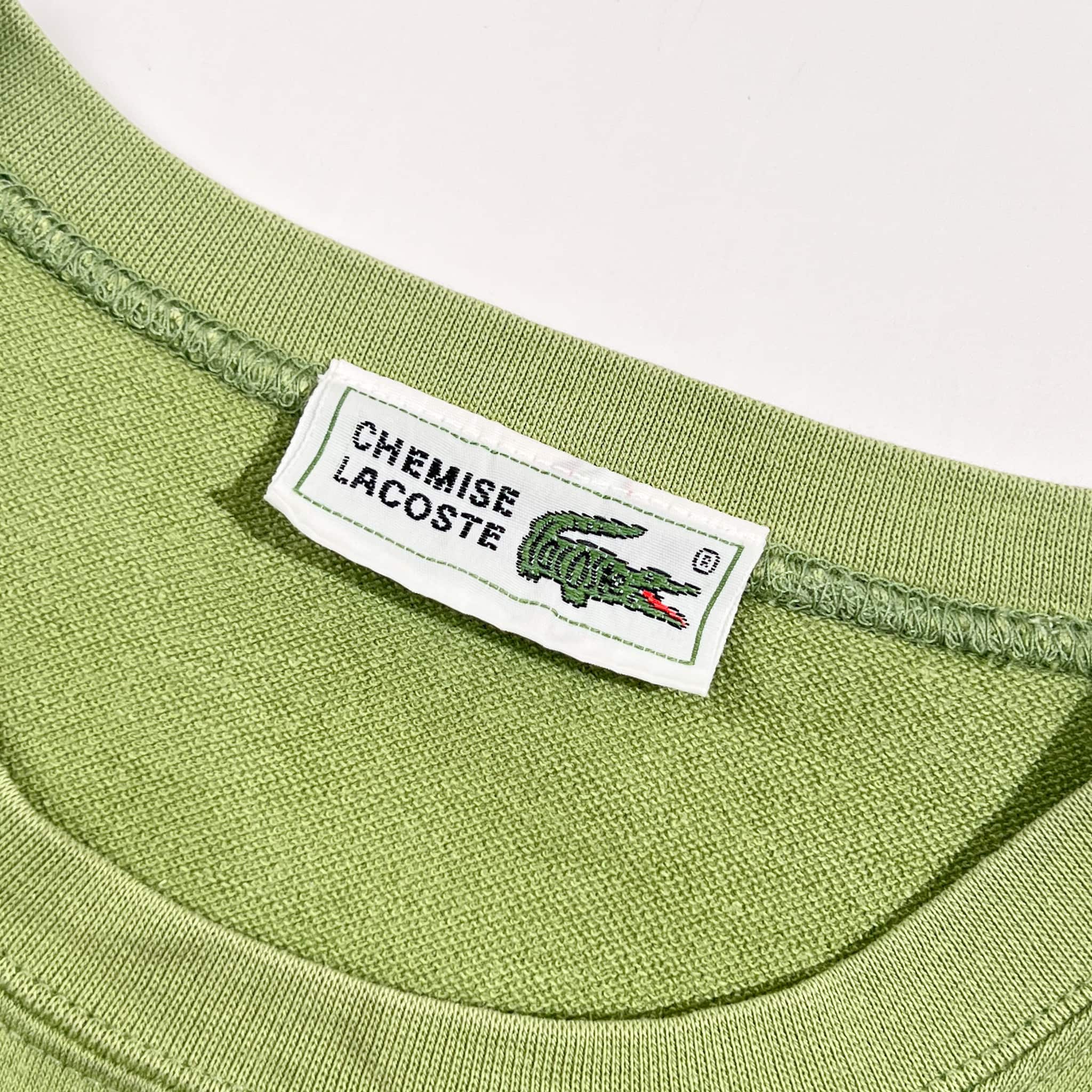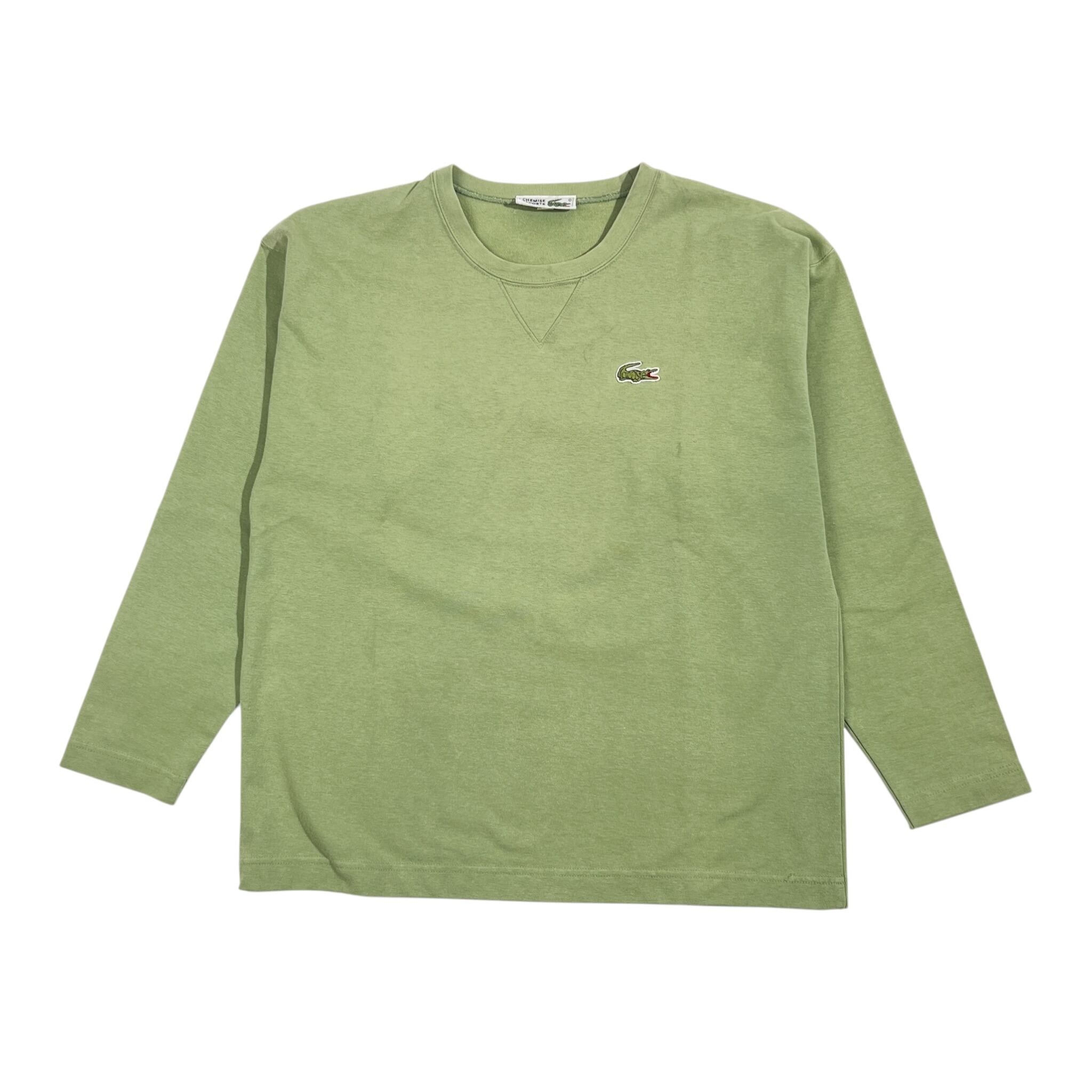 70s 80s CHEMISE LACOSTE シュミーズラコステ ワンポイント 文字ワニ 長袖 Tシャツ カットソー 40/グリーン系 レディース ビンテージ