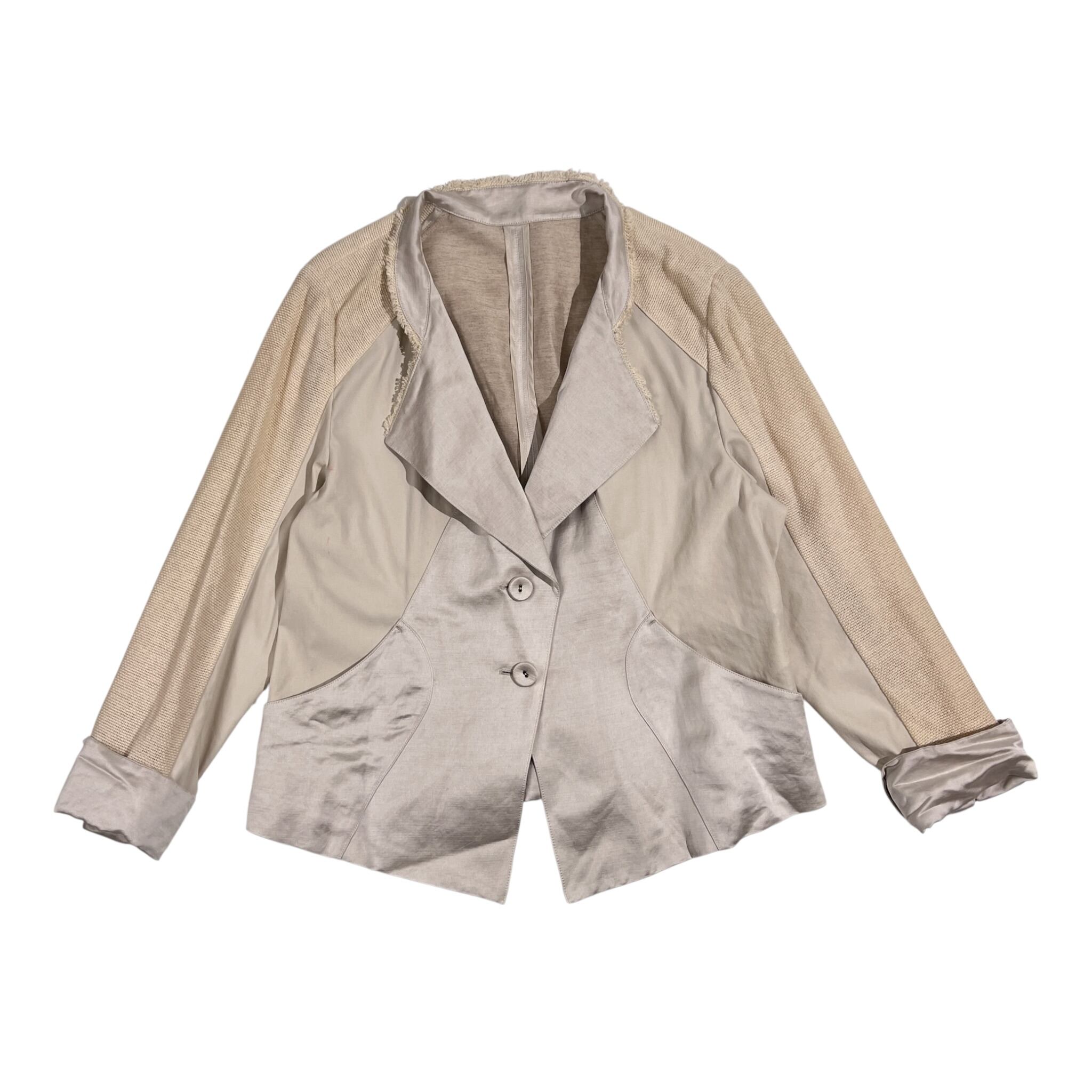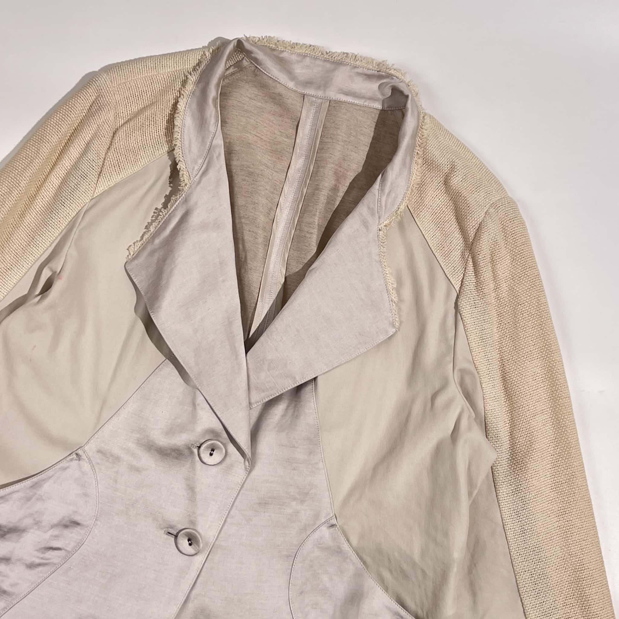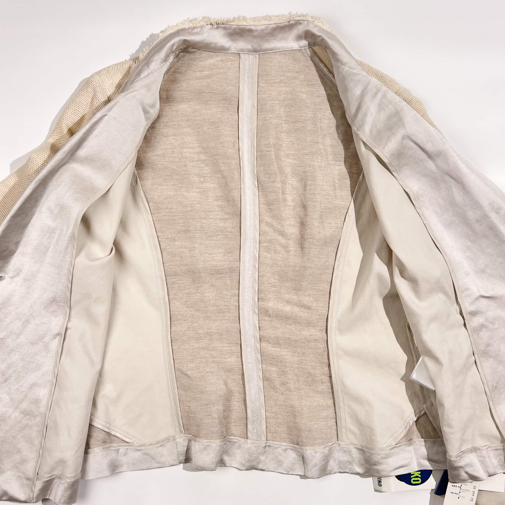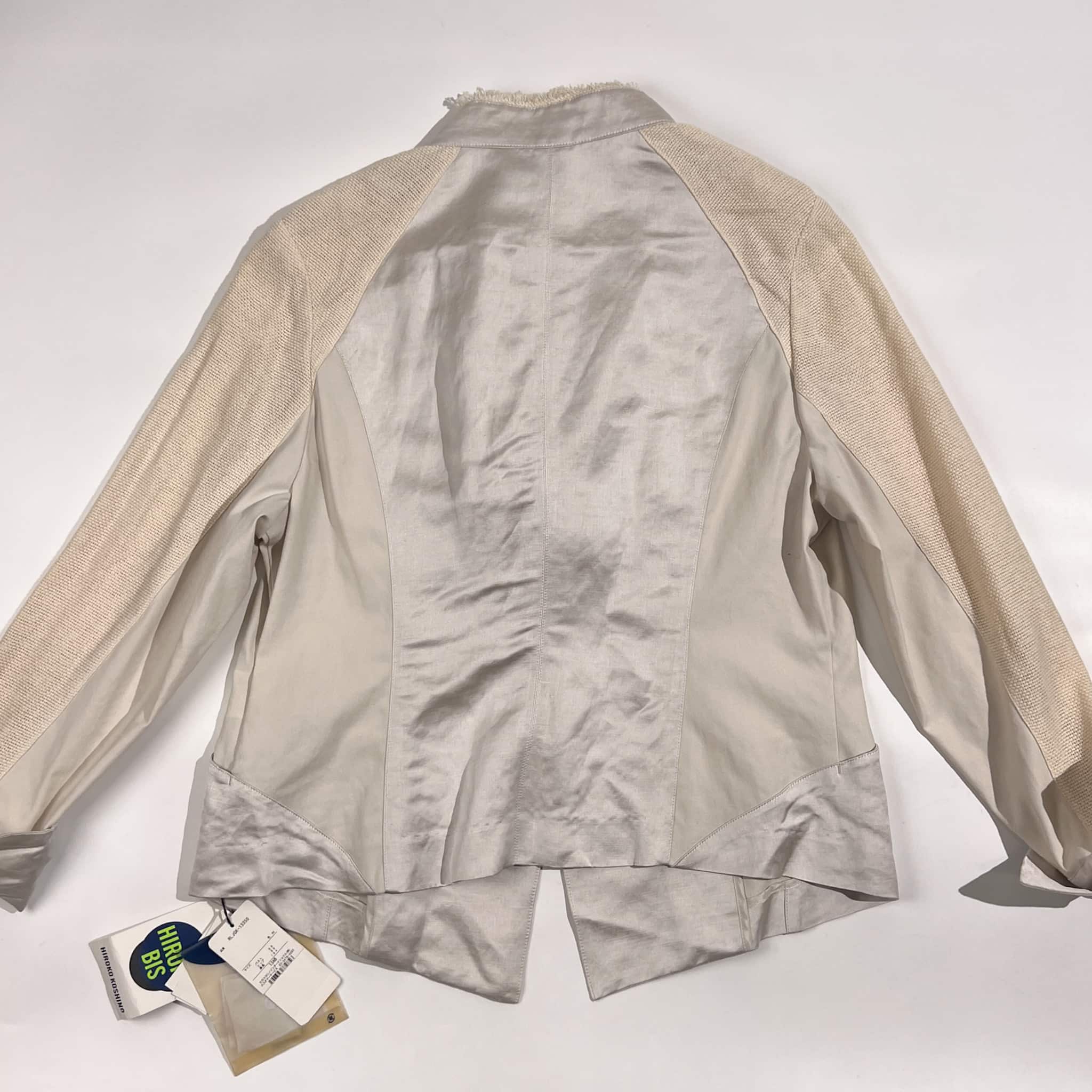 新品 タグ付き リネン混 HIROKO BIS ヒロコビス 切替デザイン 春夏ジャケット 13AB/アイボリー系 レディース