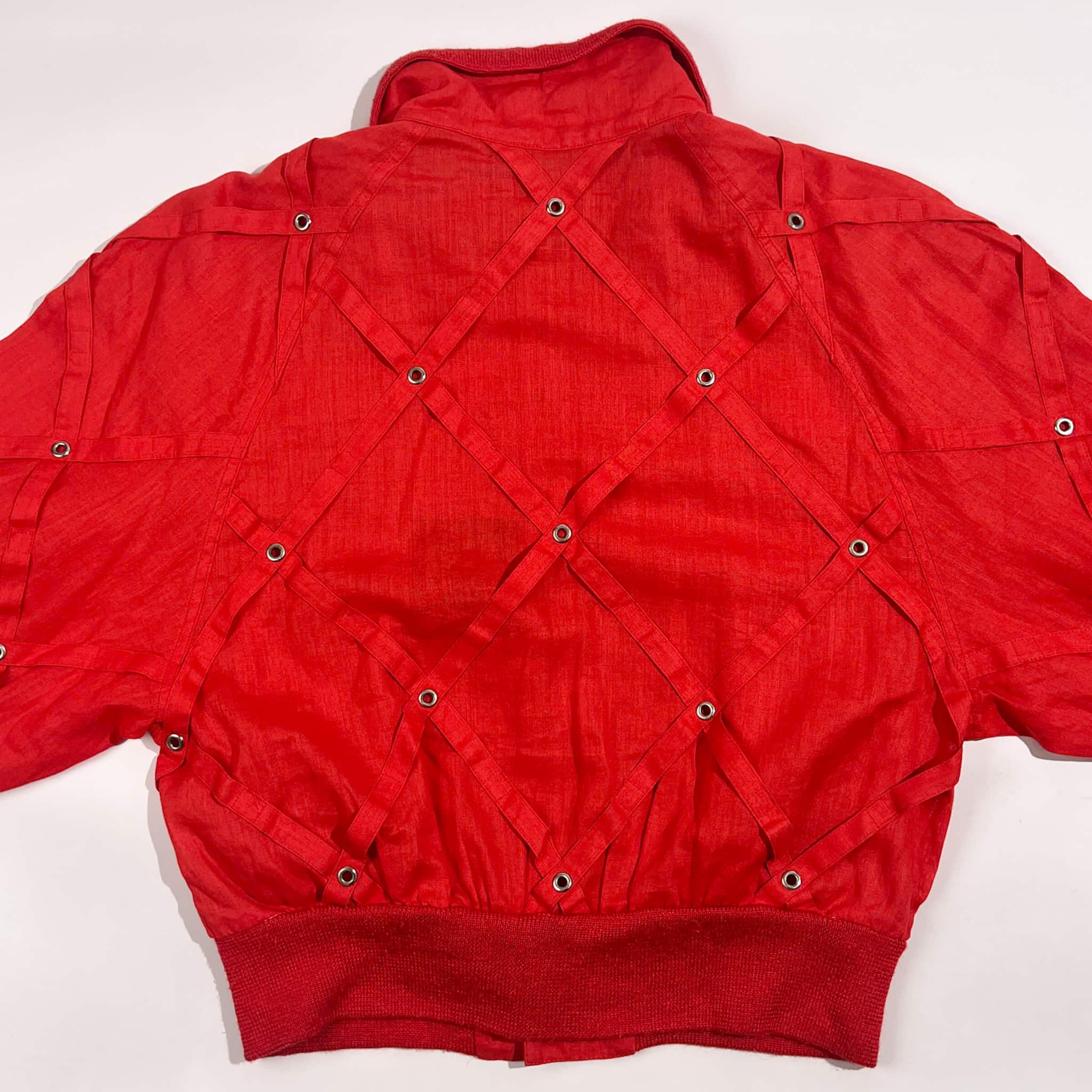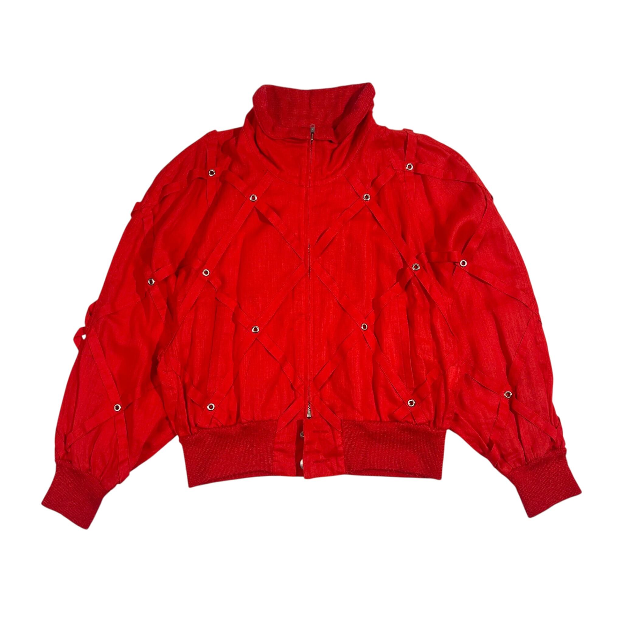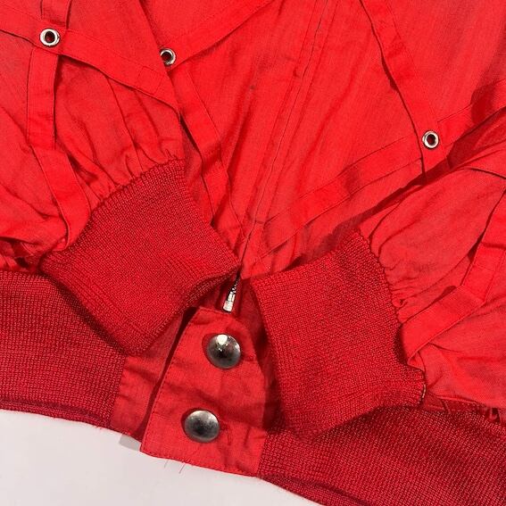 リネン混 伊太利屋 イタリヤ デザイン ジャケット ブルゾン 9A2/レッド系 レディース レトロ ビンテージ