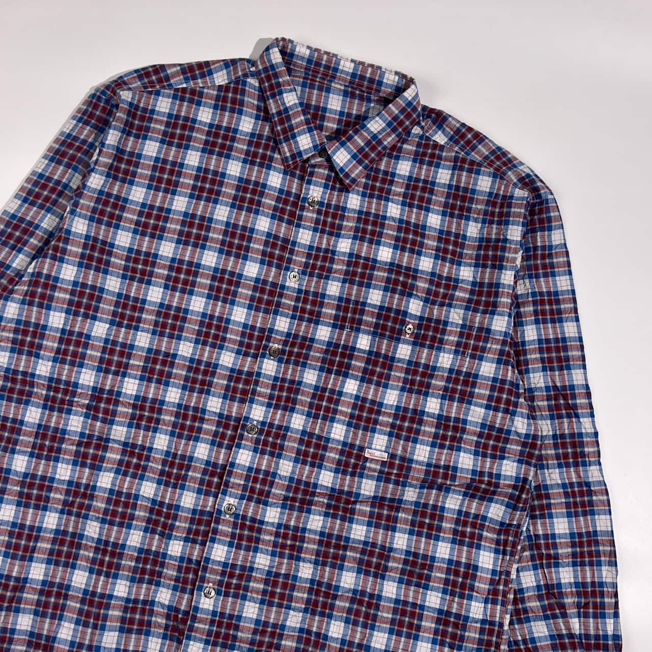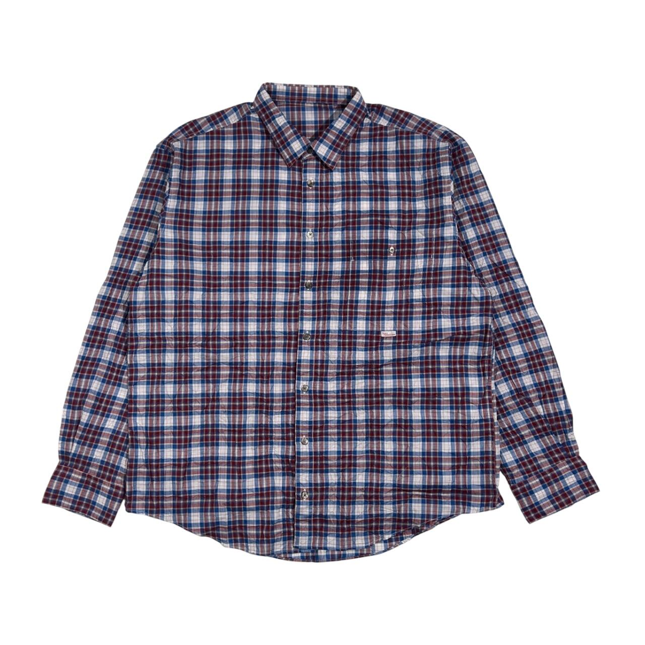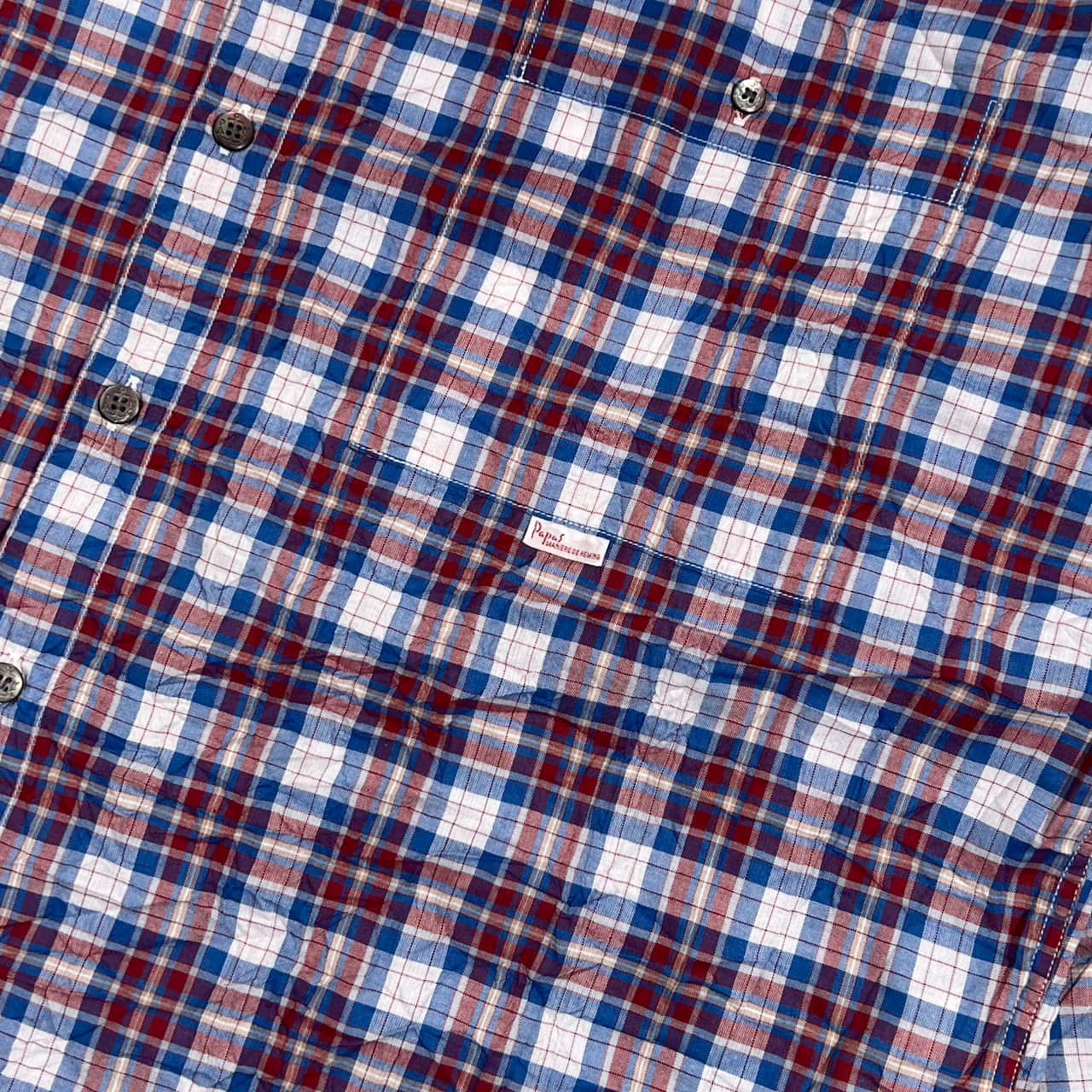 Papas パパス シワ加工 チェック柄 長袖 シャツ LL/レッド×ブルー系 メンズ
